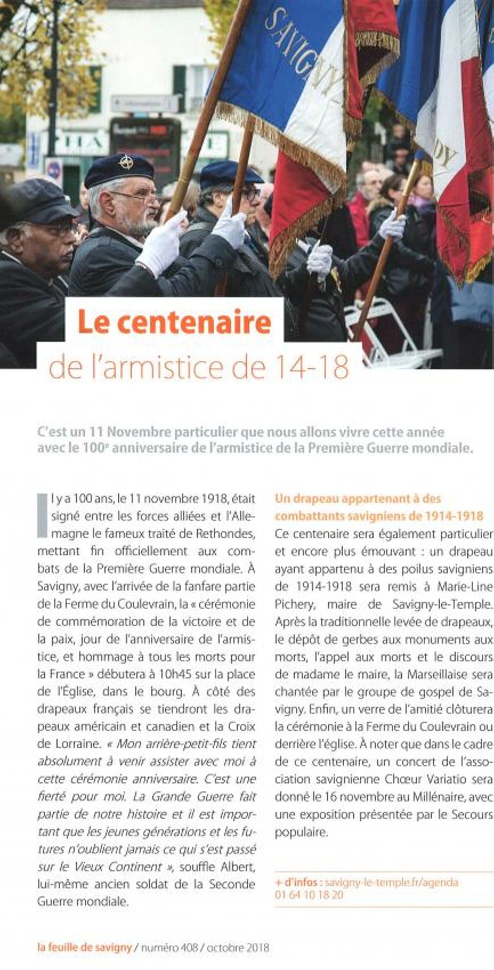 * à l'occasion de l'anniversaire du 11 novembre, célébré en souvenir de la signature de l'armistice de 1918, un défilé aura lieu, vers 11 heures devant le Monument aux Morts