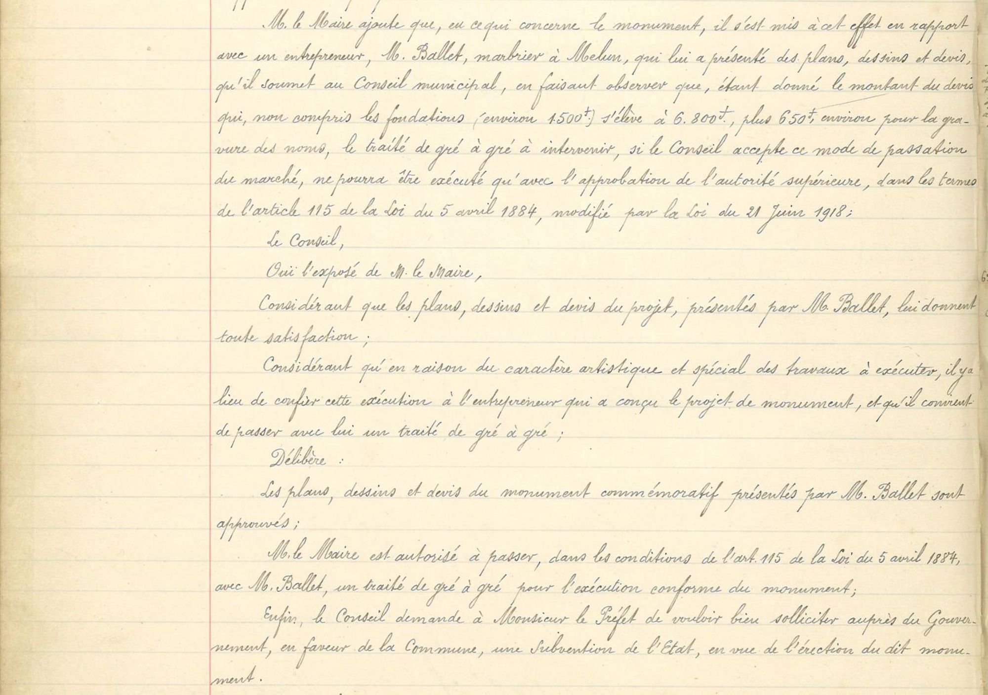 Séance extraordinaire - devis M. Ballet, marbrier à Melun