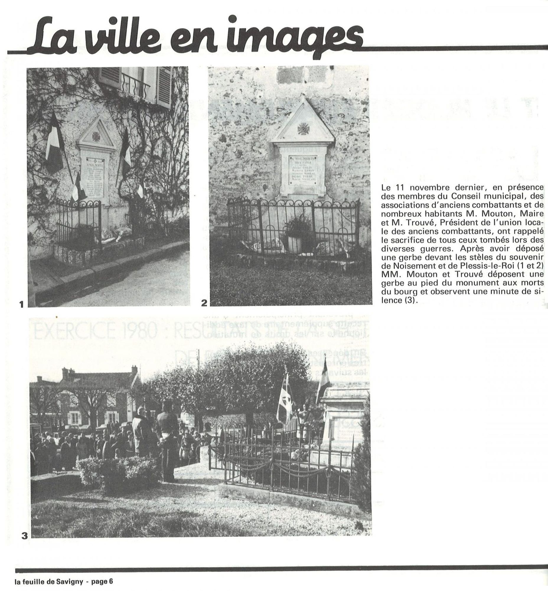 "Pour perpétuer le souvenir des Braves de la Commune, si nombreux malheureusement, morts au Champs d'honneur pour la France, un monument sera élevé à Savigny, sur un emplacement à désigner" ; "Une plaque commémorative sera également apposée tant à Noisement qu'au Plessis, et portera les noms des Braves de ces hameaux. Les emplacements seront également à désigner"