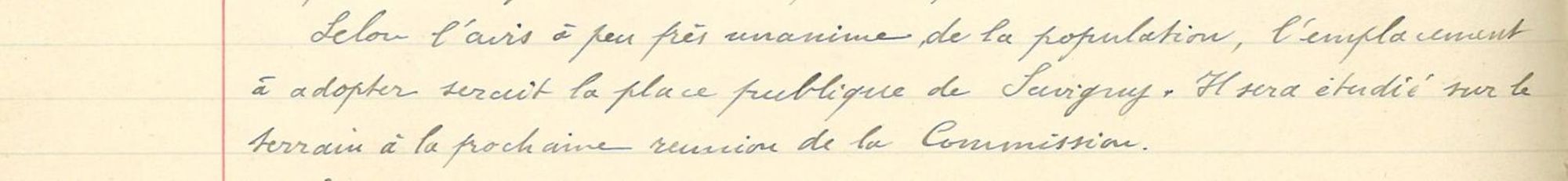 Commission du Monument aux Morts de la Guerre : "selon l'avis à peu près unanime de la population, l'emplacement a adopté serait la place publique de Savigny"