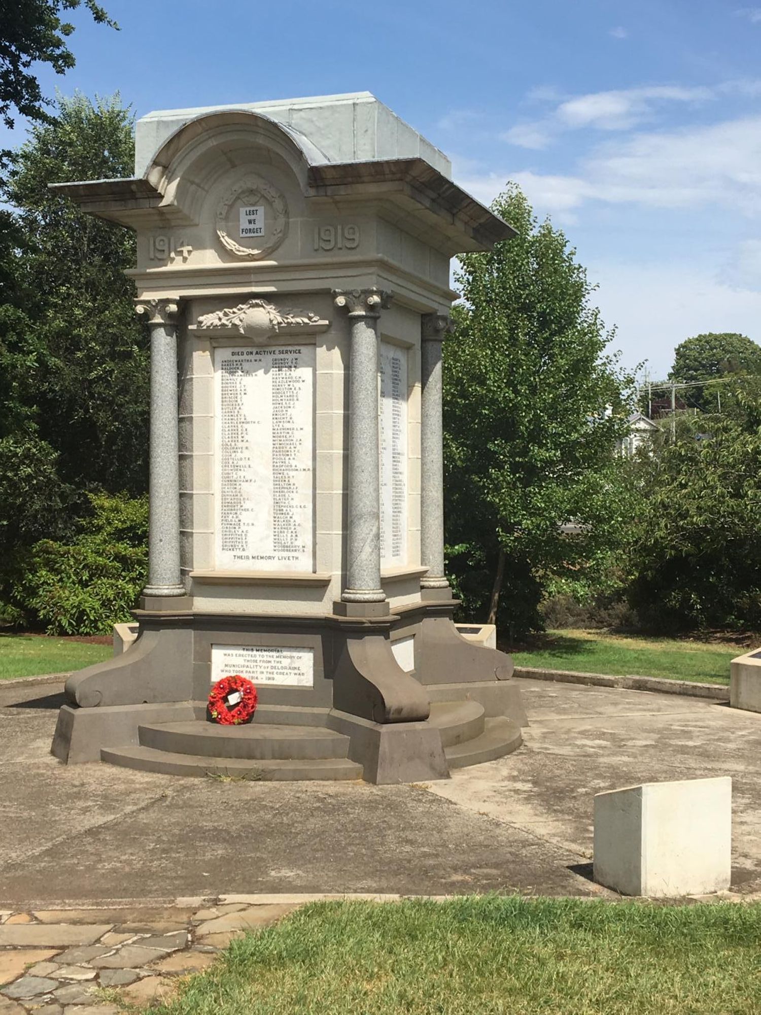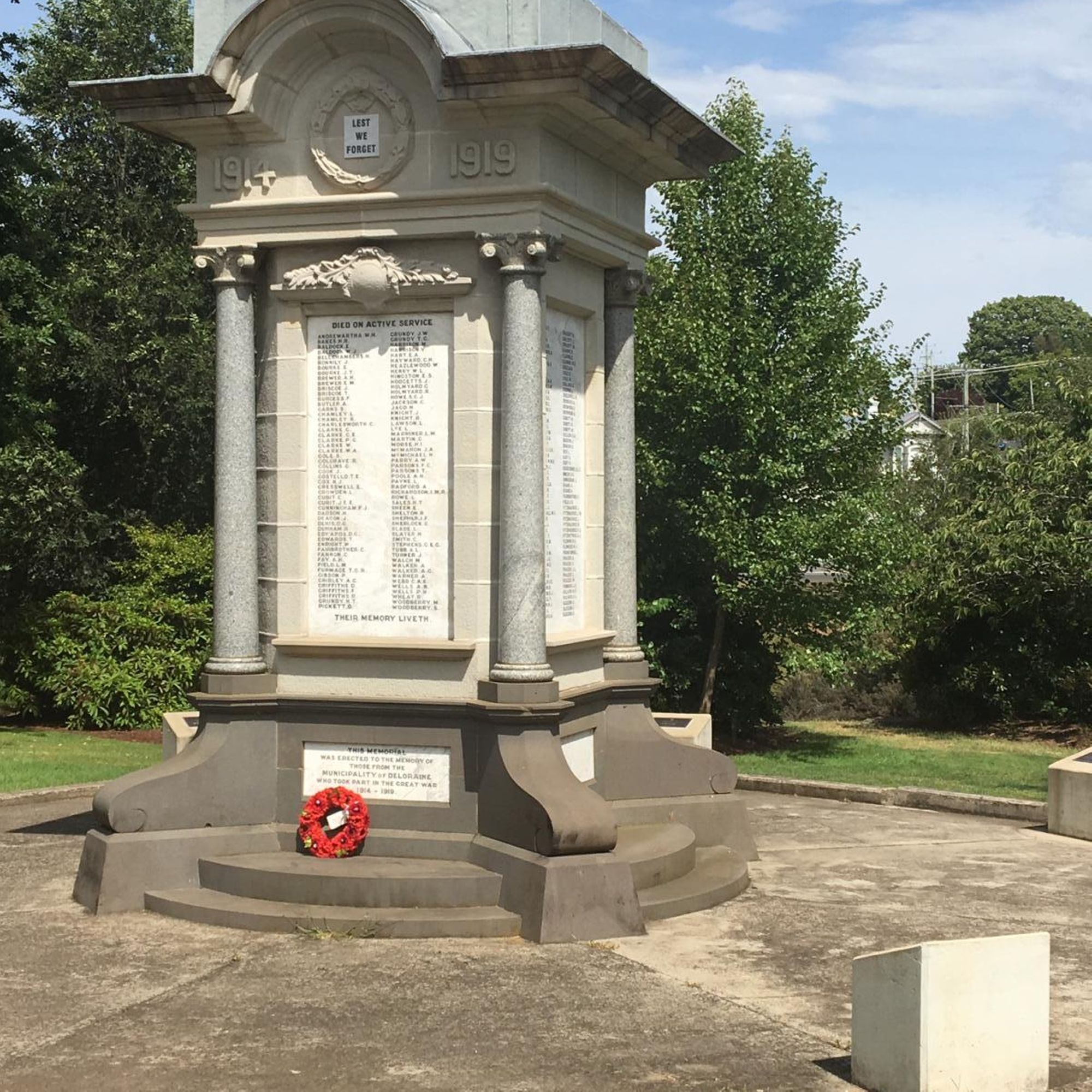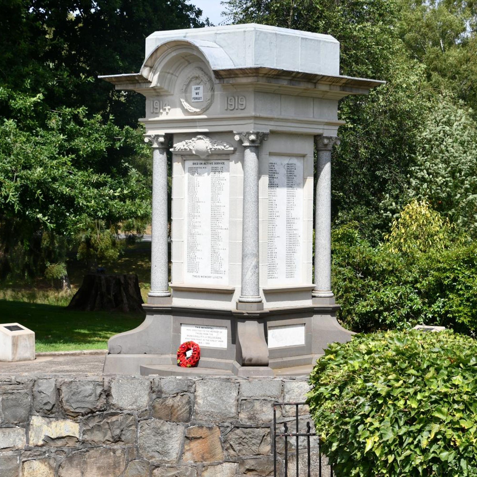 The Deloraine War Memorial is a roofed rectangular structure with in the centre is a marble panel which carries the inscriptions and lists 430 names of those who have served in various conflicts.