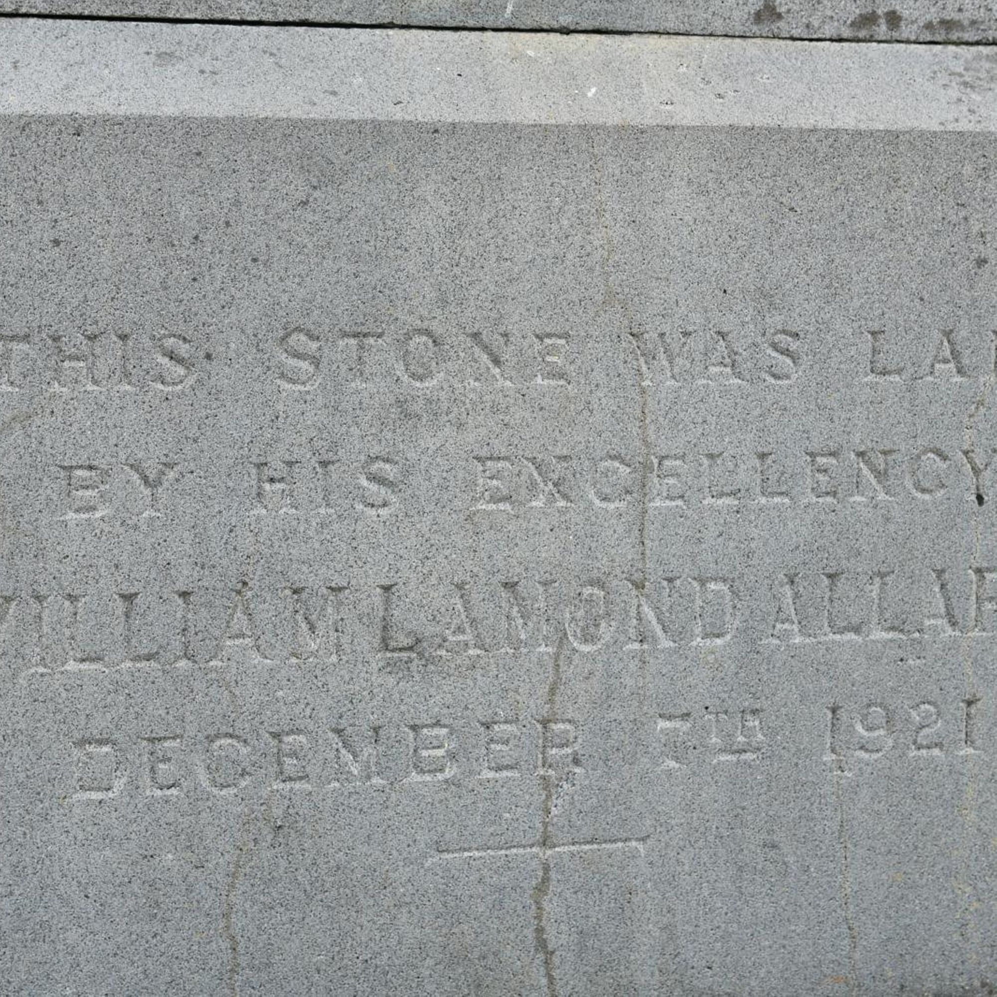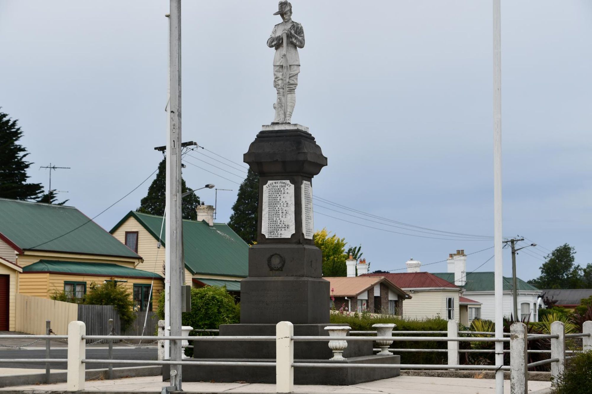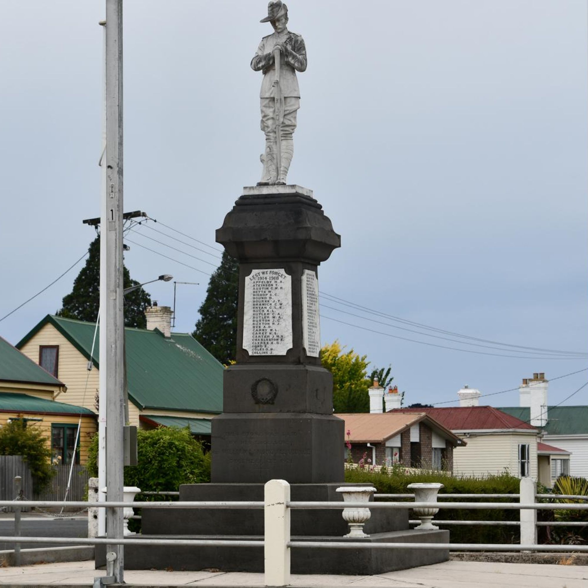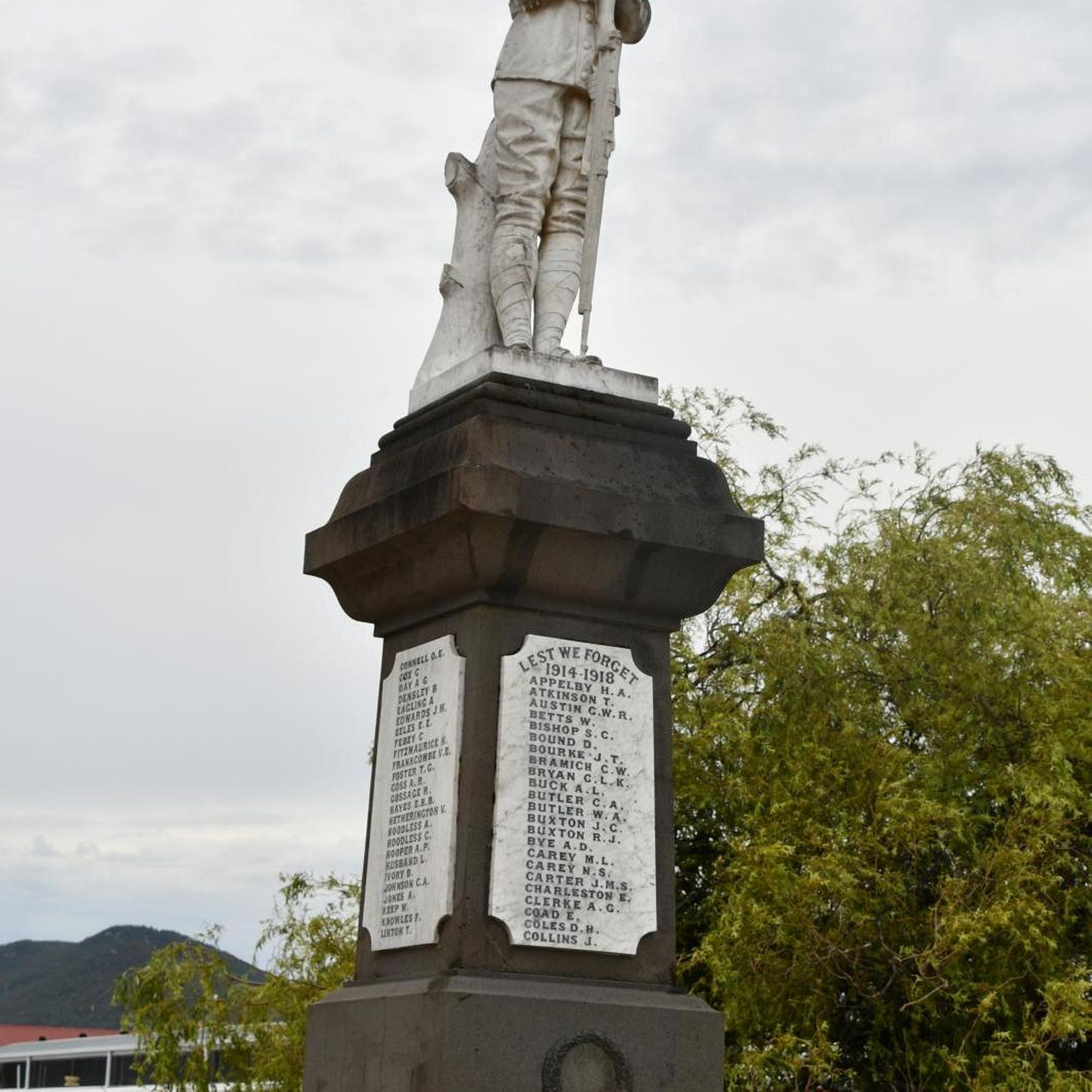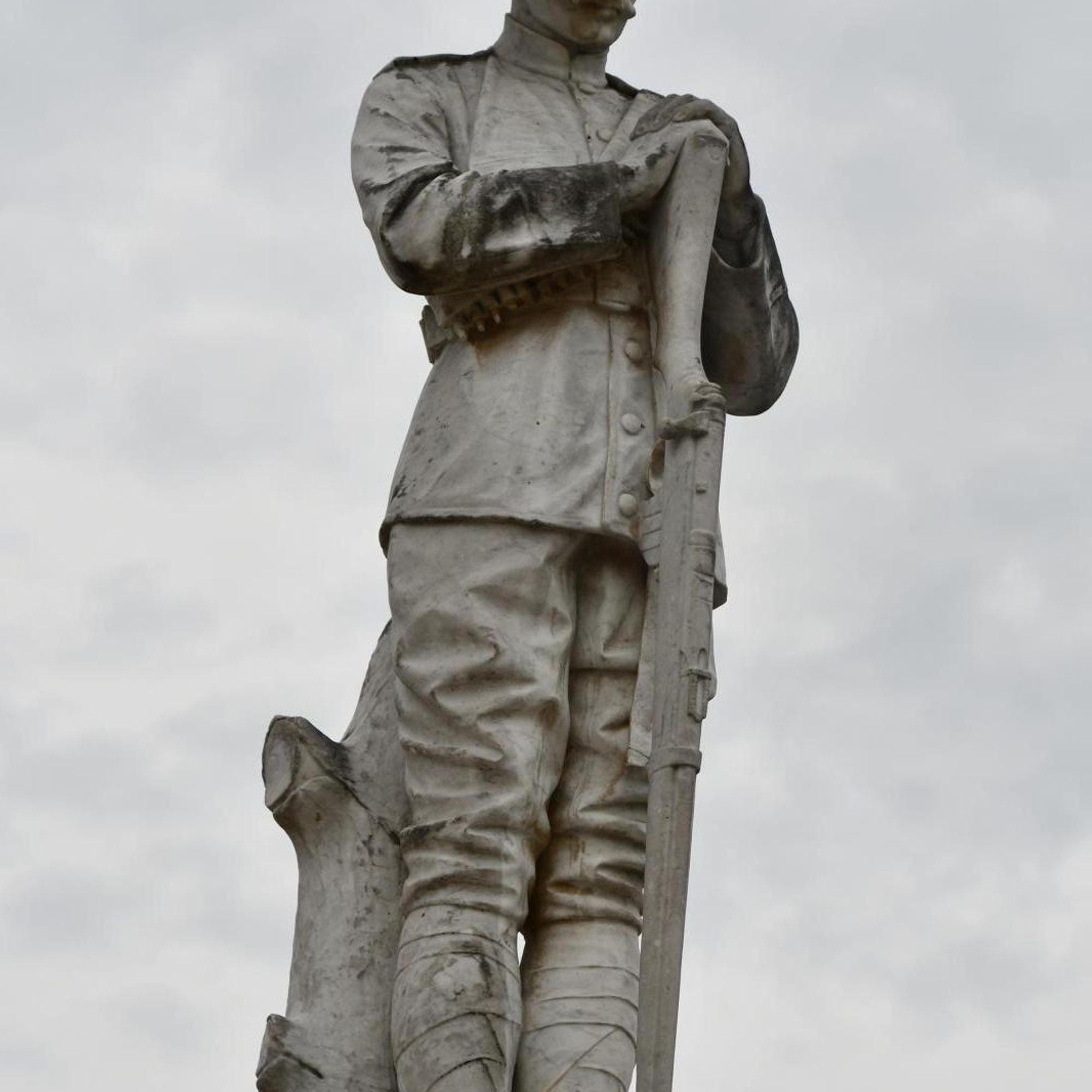 - Soldat avec moustache tenant son fusil par la crosse sur piedestal