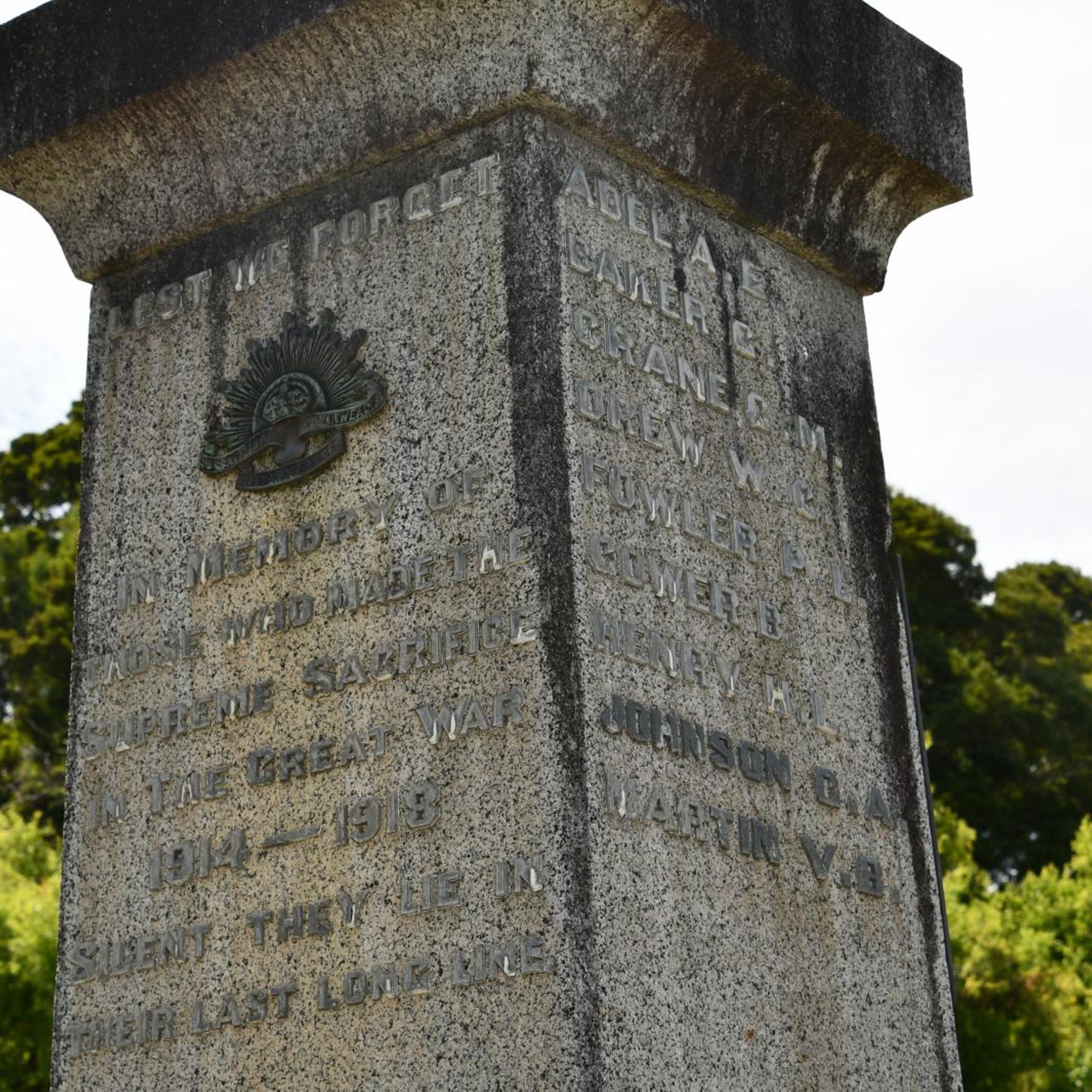 Strahan War Memorial commemorates those who were killed in World Wars One and Two.