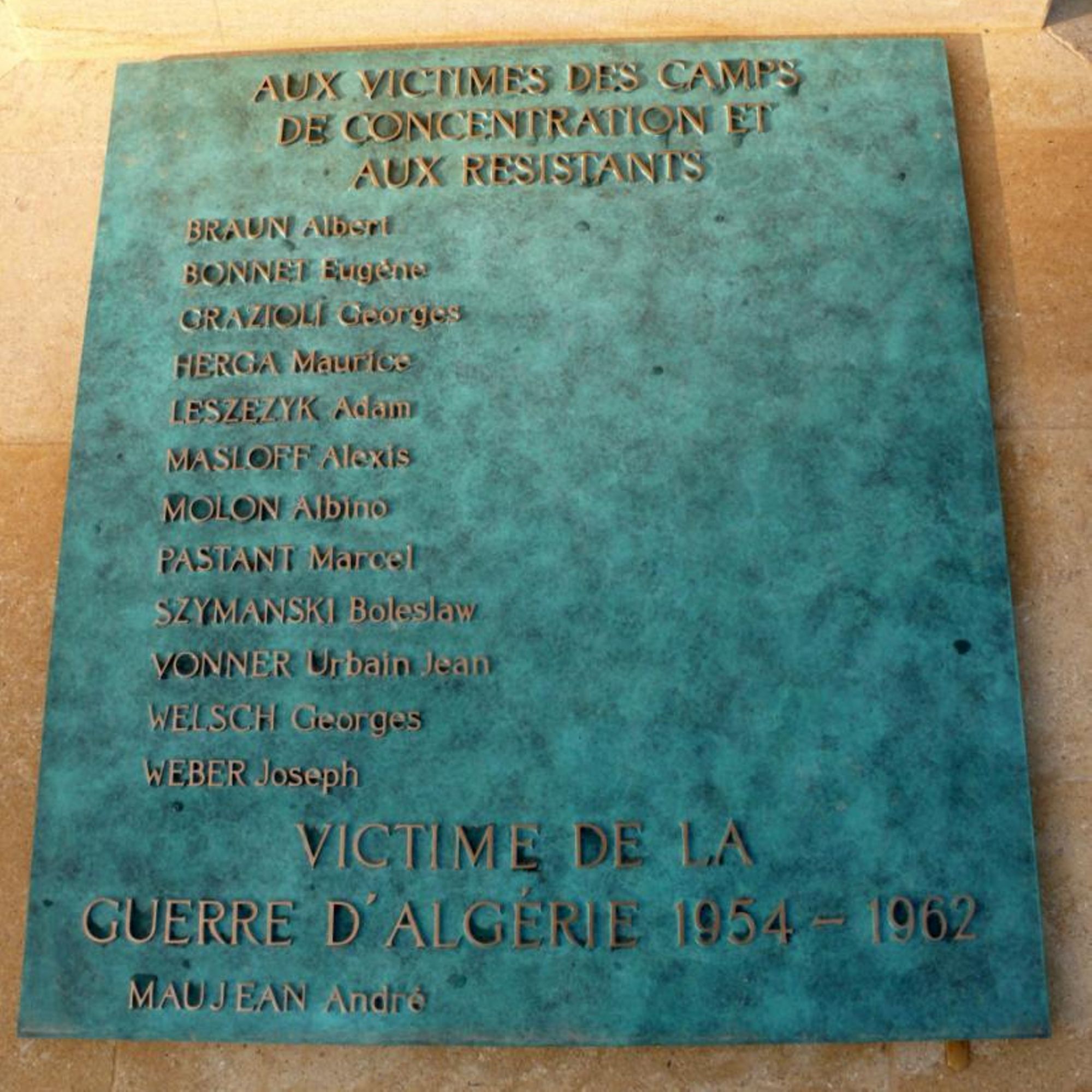 Aux victimes des camps de concentration et aux résistants