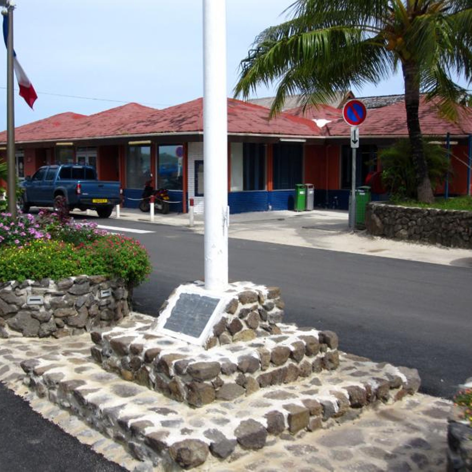 - Sur le terre-plein séparant la double voie menant au port.