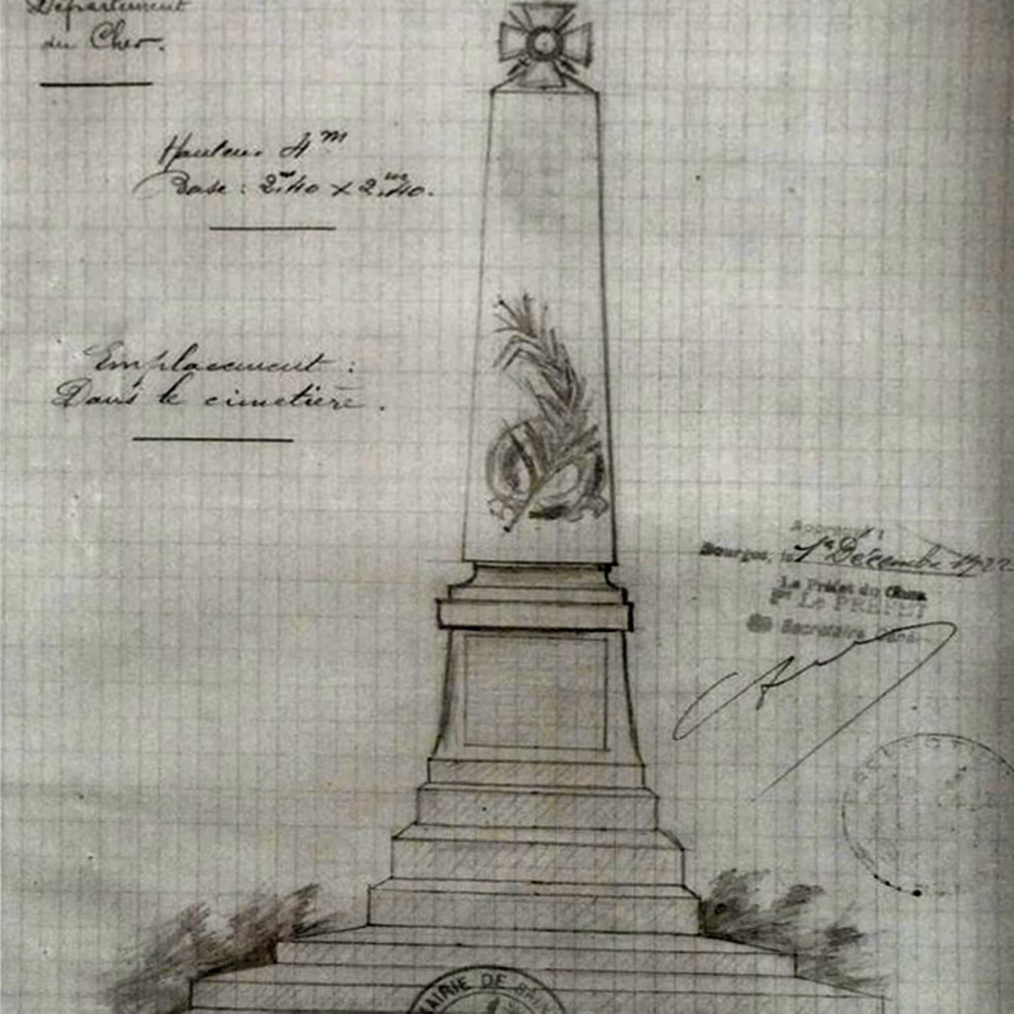 En mars 1923, Mr Dagois (entrepreneur à St Maur) s’engage à ériger le monument aux morts selon devis et croquis pour la somme de 9060 F, la grille et la bordure d’une valeur de 1920 F (en sus des 9060 F) seront posées après enlèvement du cimetière. Le transport du monument se fera en chemin de fer jusqu’à Culan.