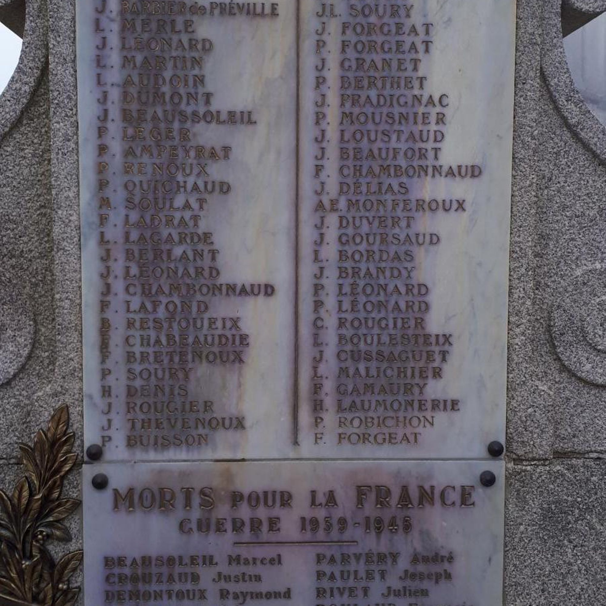 Sur la plaque de 1939-1945 est inscrit avant la liste des noms des morts :