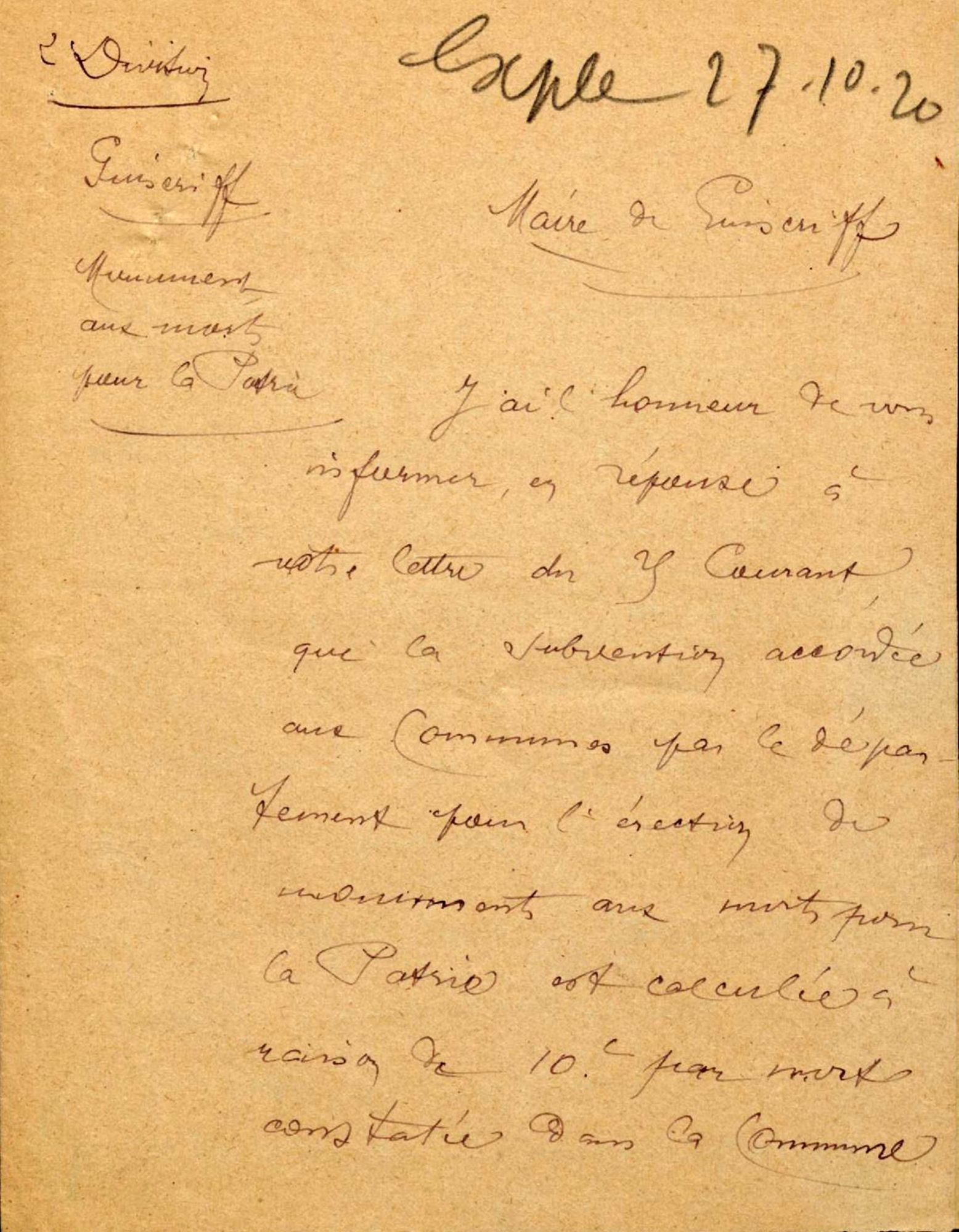 La date de l'inauguration est prévue courant octobre 1920