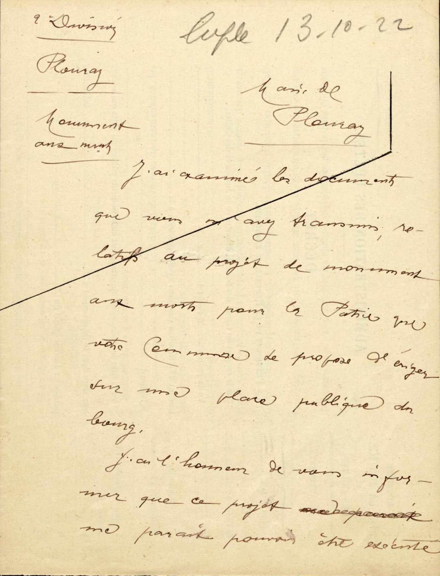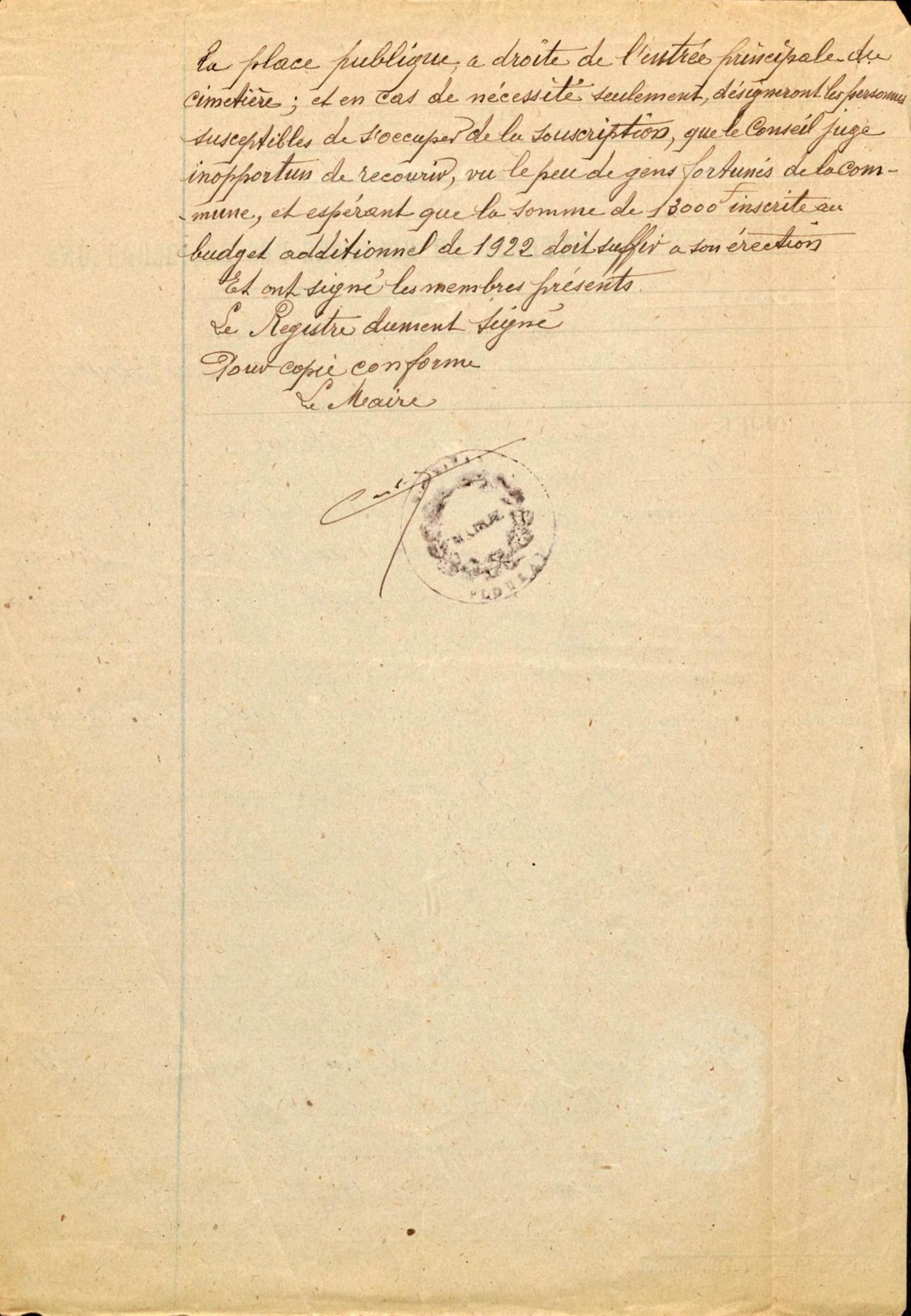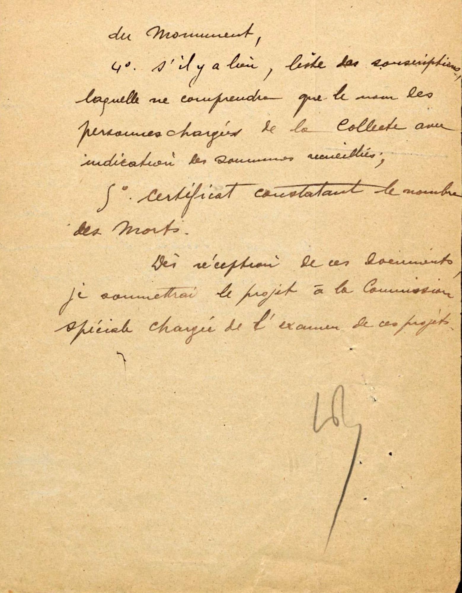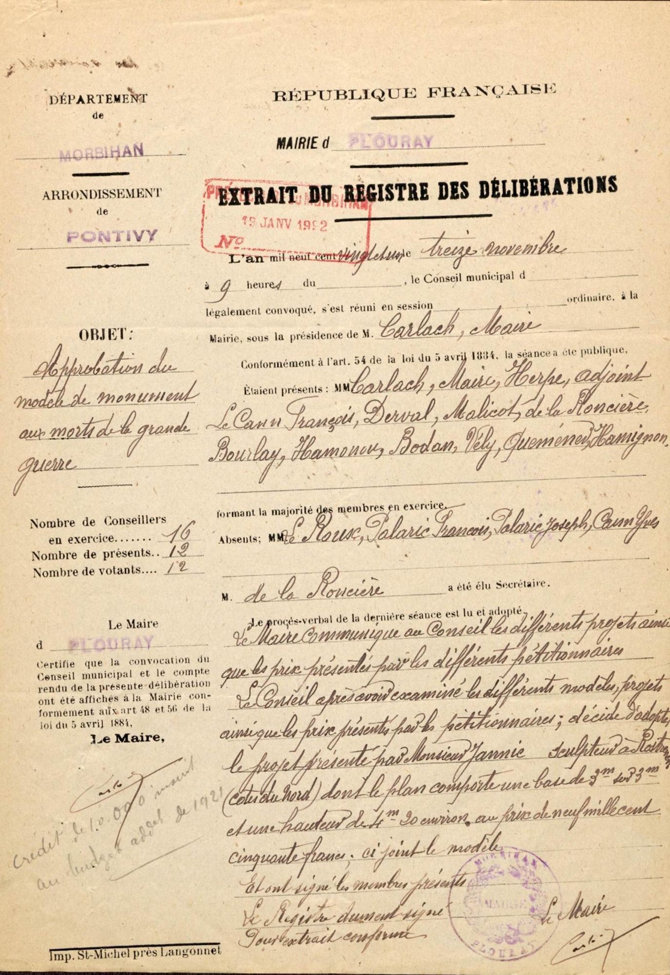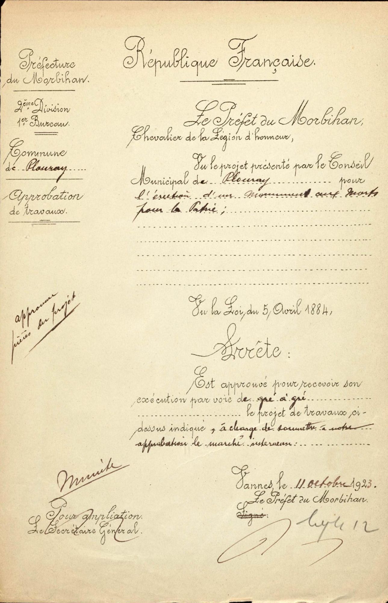 Approbation d'un modèle de monument présenté par M. Jannie sculpteur à Rostreven