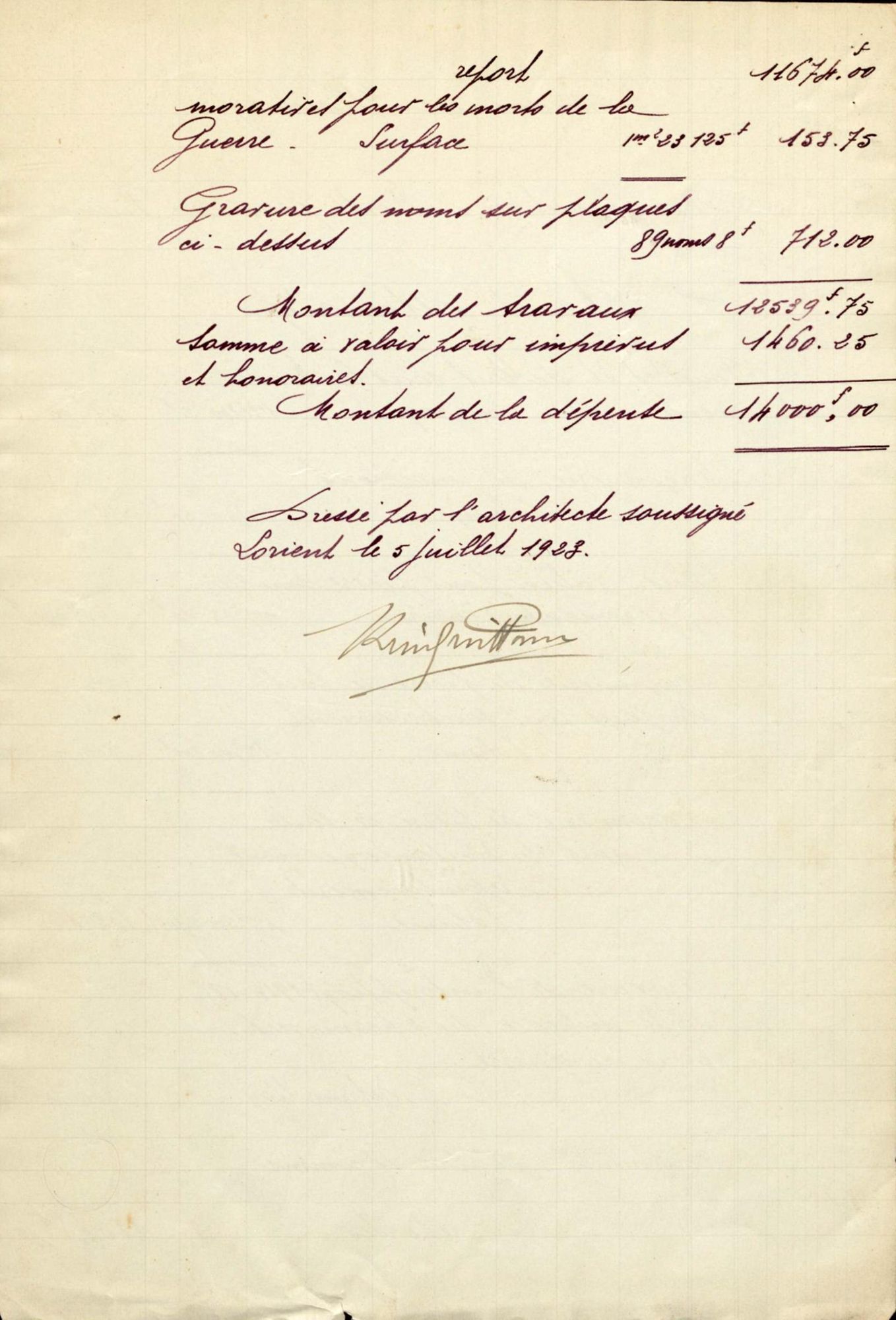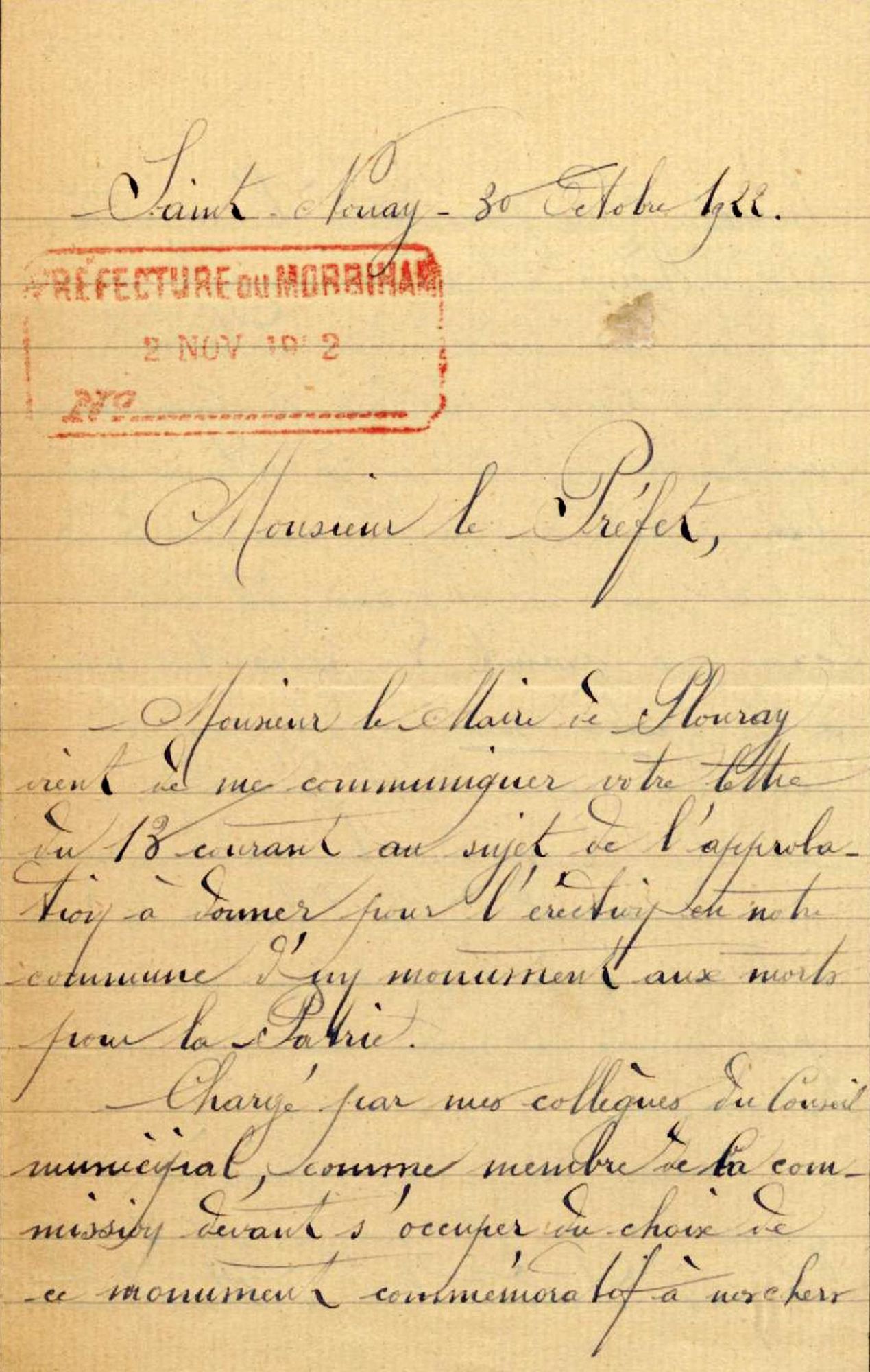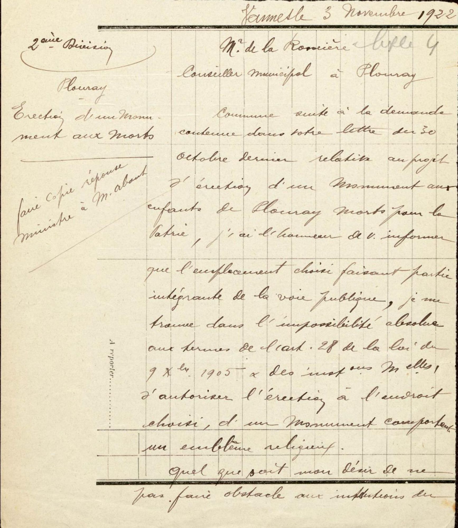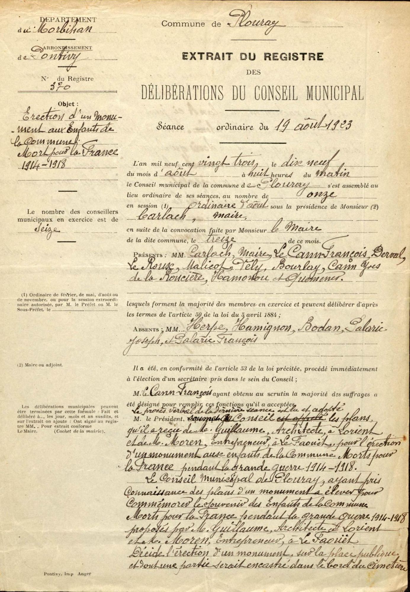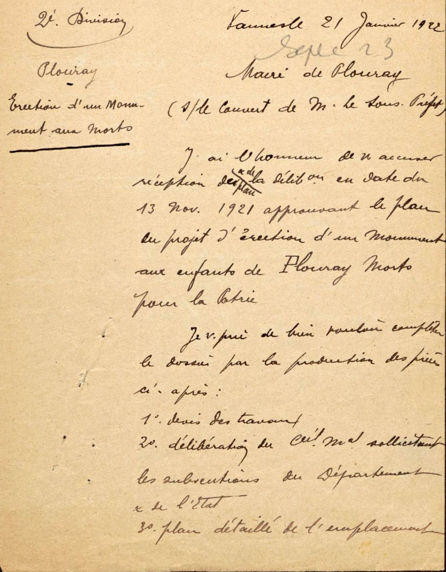 Approbation d'un modèle de monument présenté par M. Jannie sculpteur à Rostreven