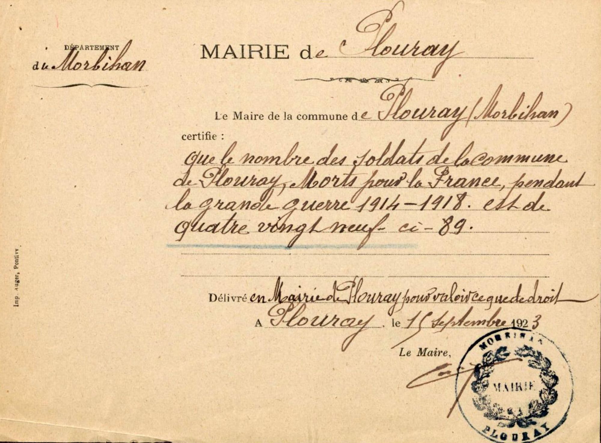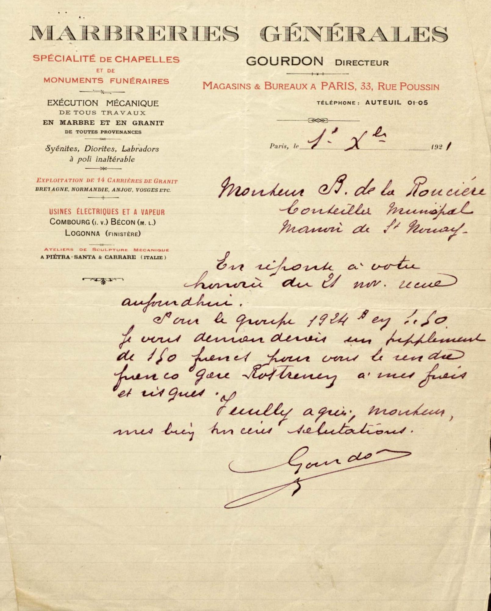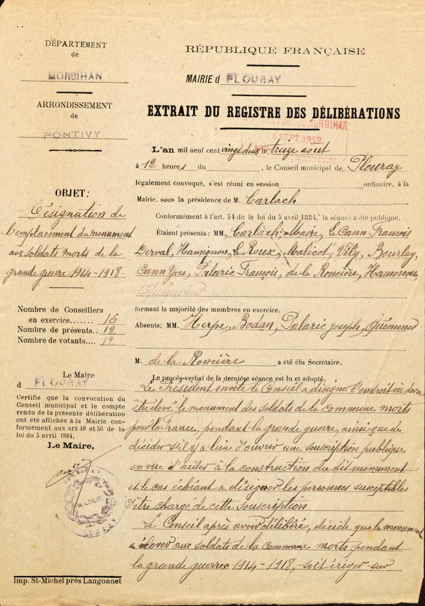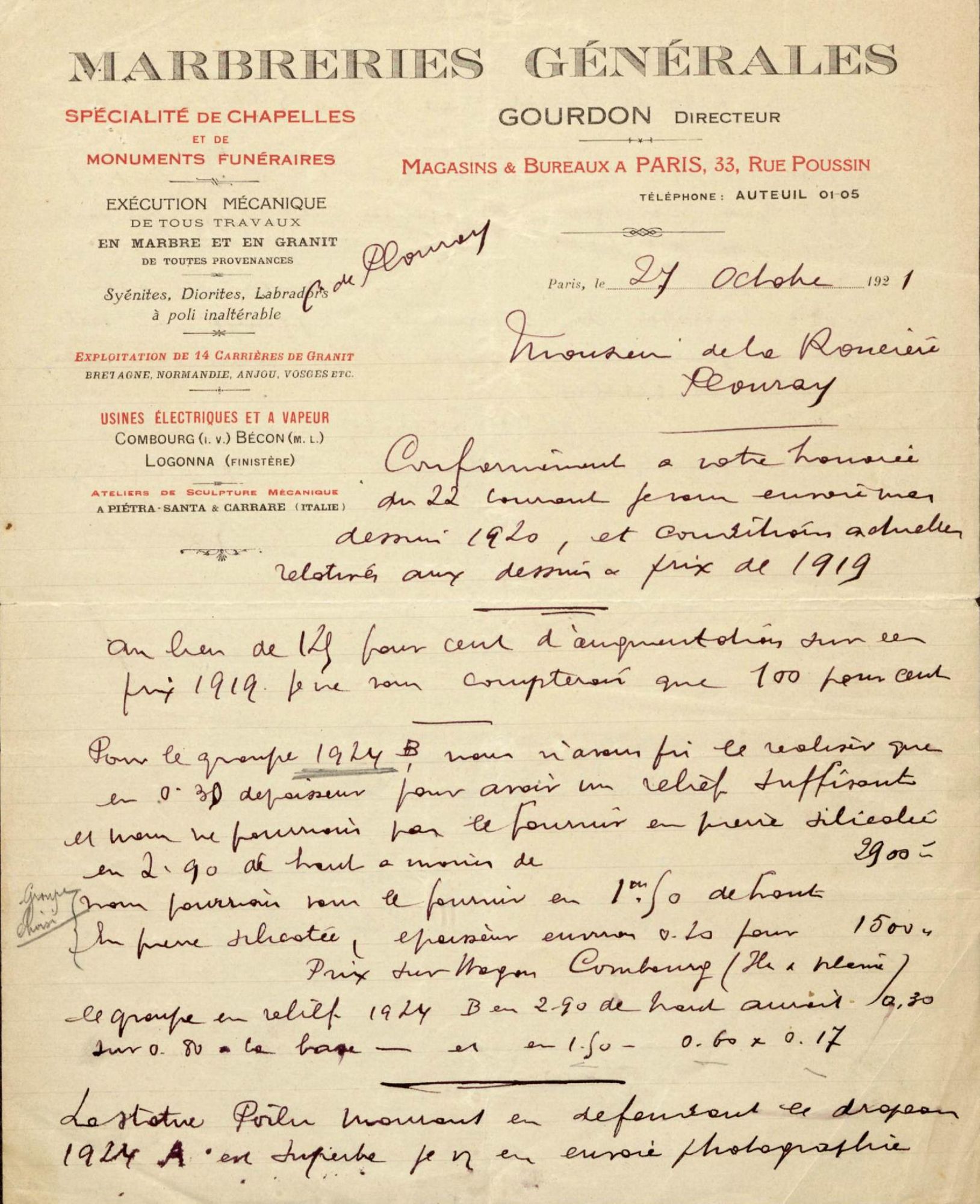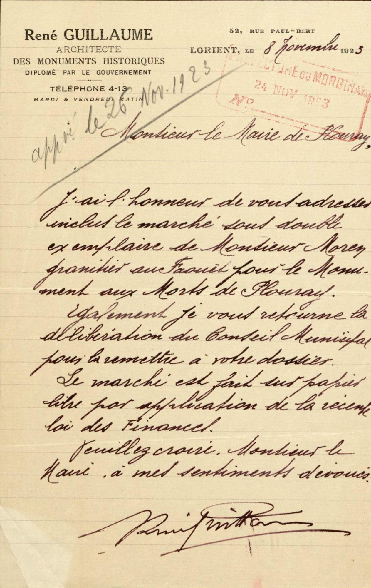 Approbation d'un modèle de monument présenté par M. Jannie sculpteur à Rostreven