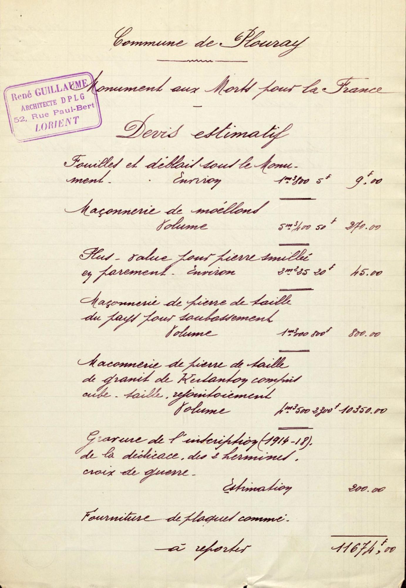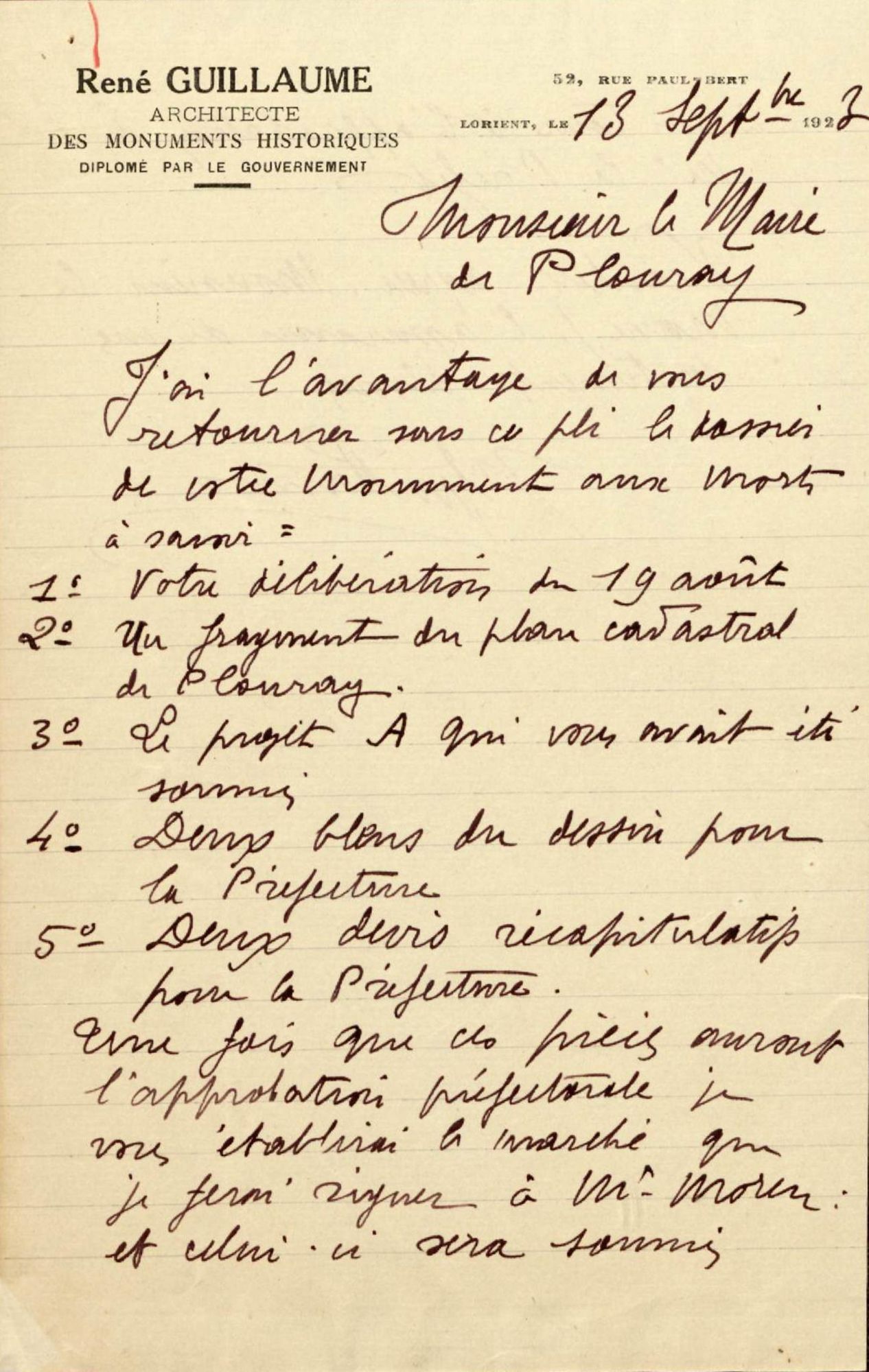 Plans de M. Guillaurme Architecte et de M. Moren Entrepreneur
