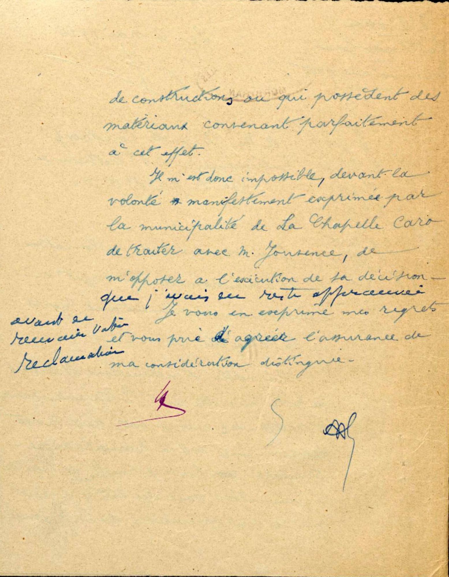 Demande de ne pas donner suite au marché passé avec M. Jouranet