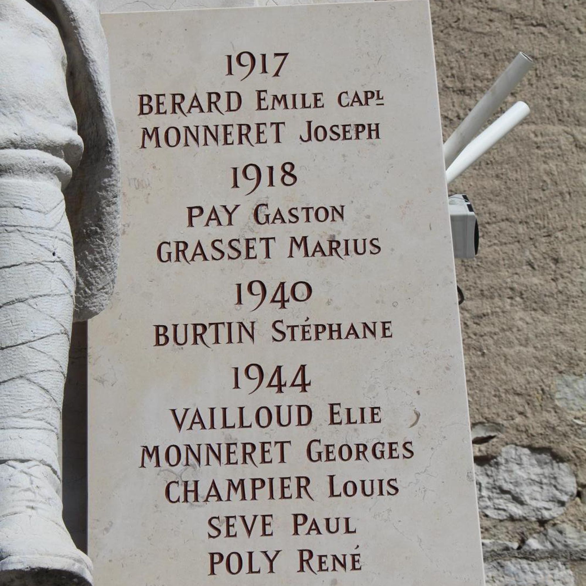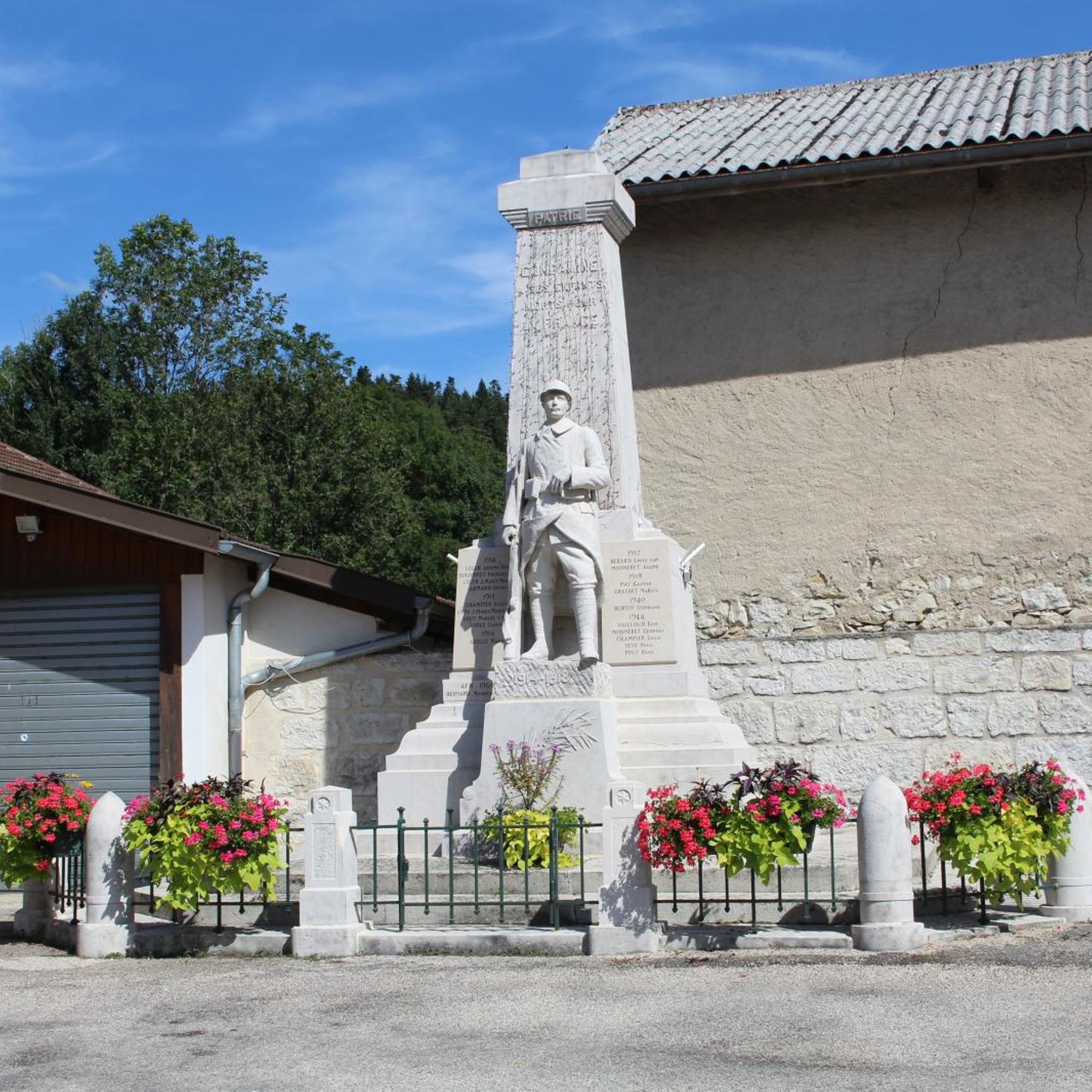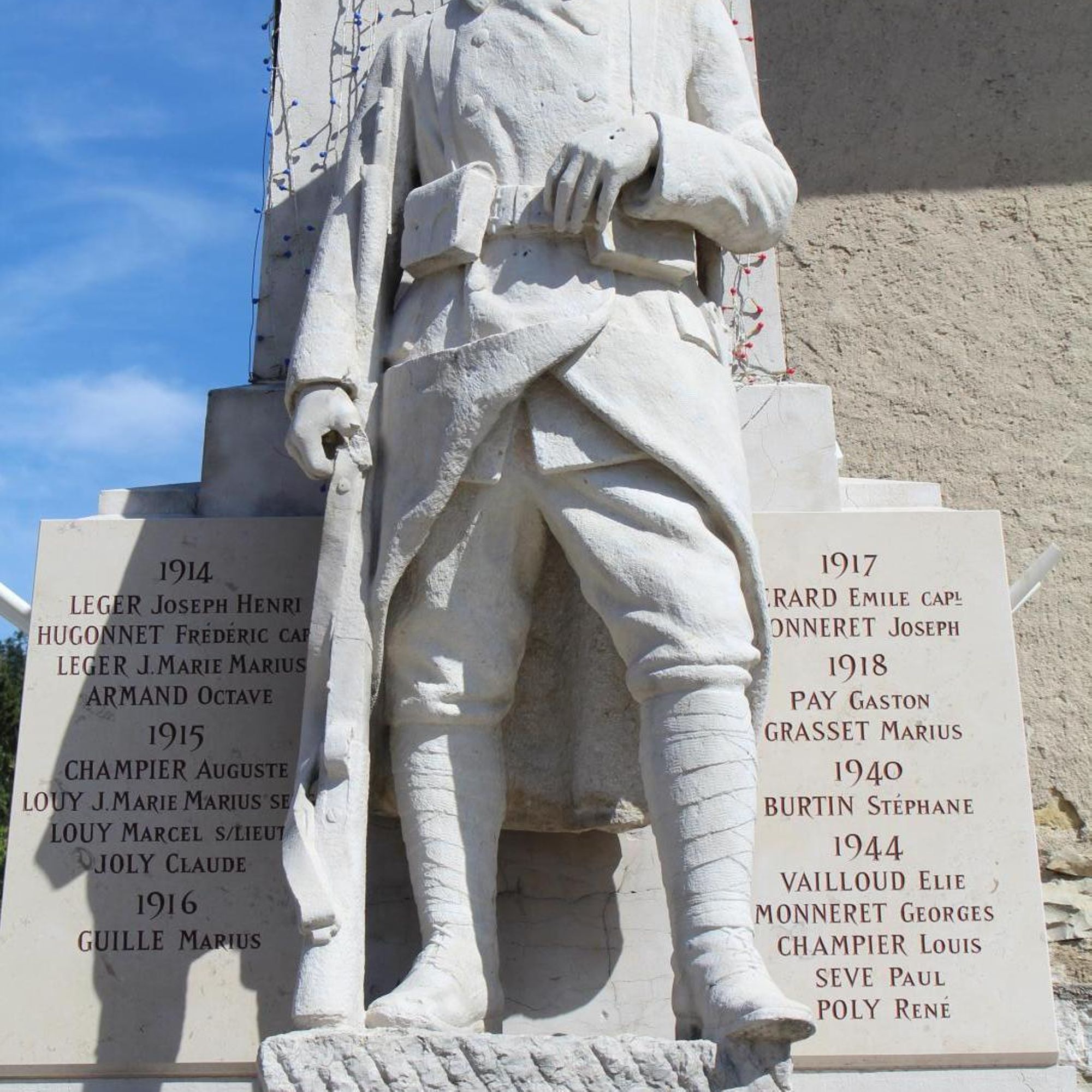 - Colonne quadrangulaire avec statue de poilu en fronton