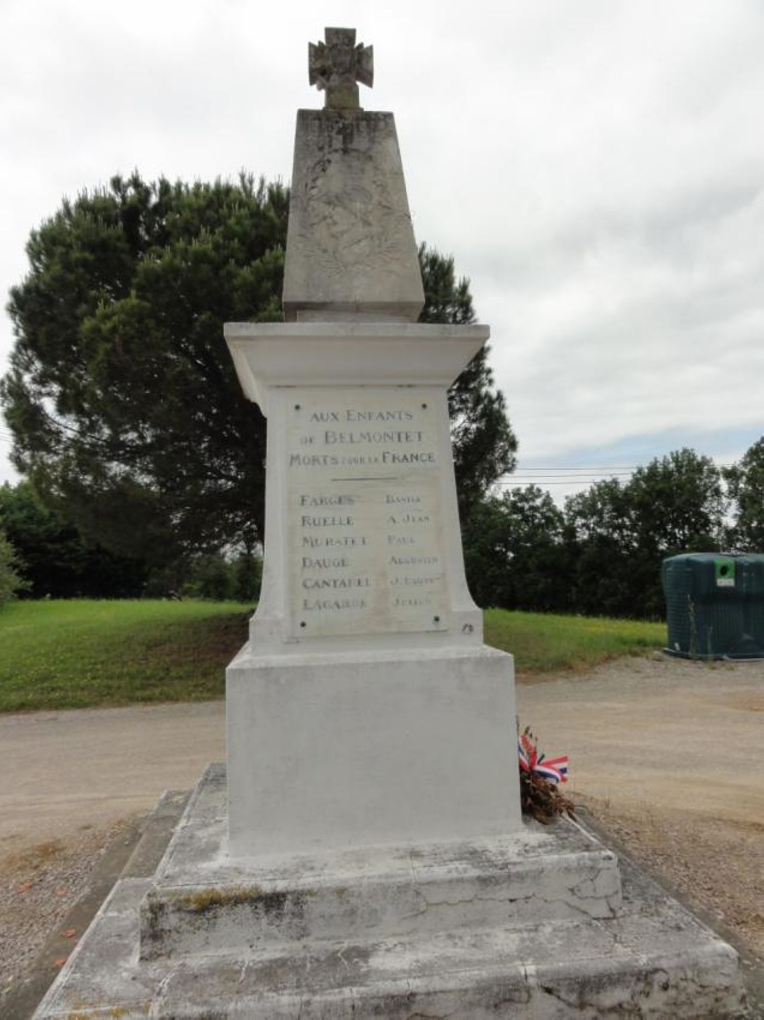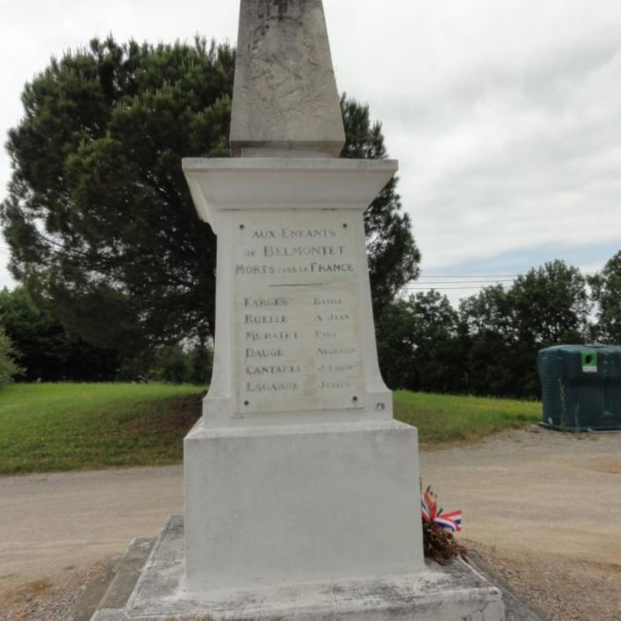 A environ 3km à l'ouest de La Salvetat, monument devant l'église de Belmontet