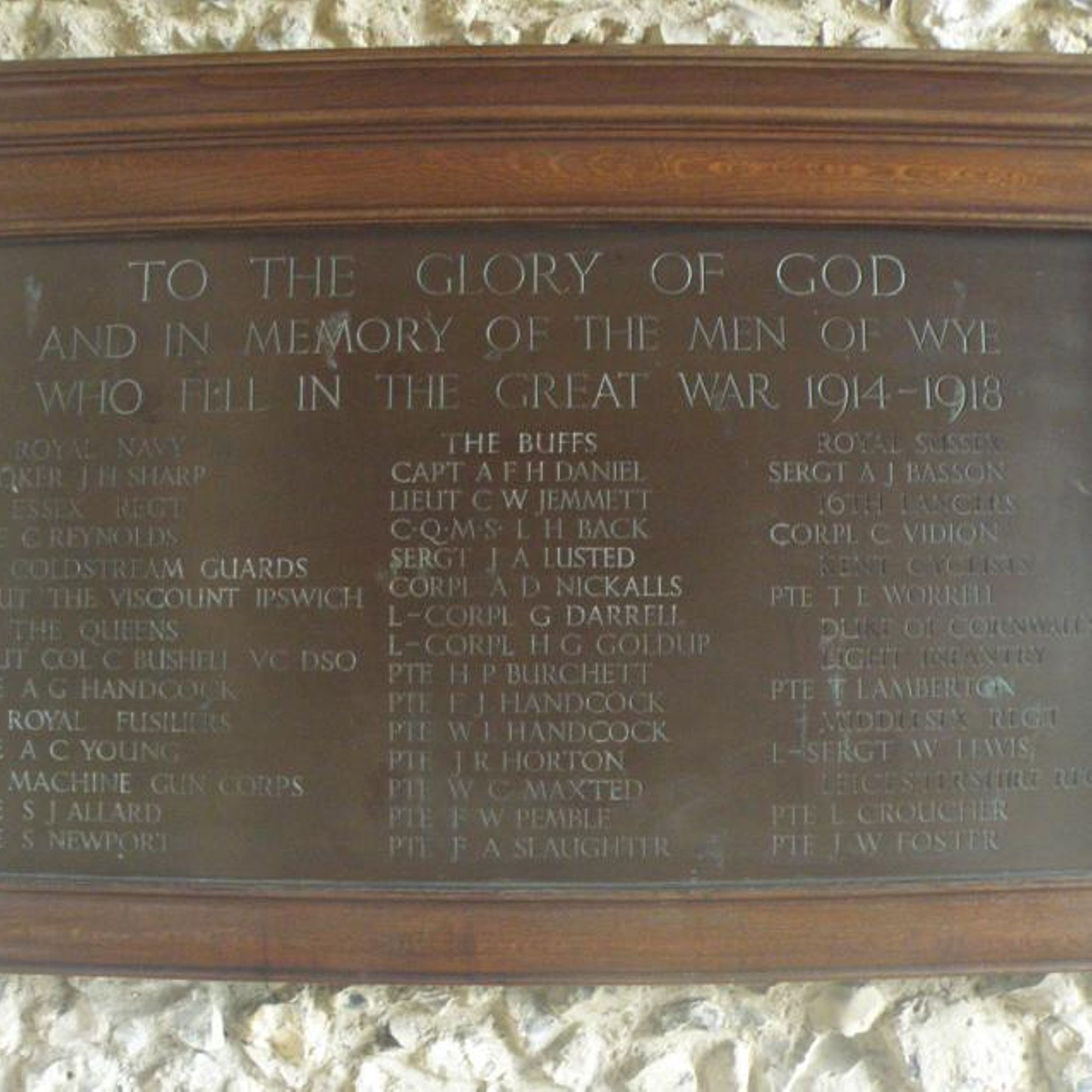 TO THE GLORY OF GOD AND IN MEMORY OF MEN OF WYEWHO FELL IN THE GREAT WAR 1914-1918