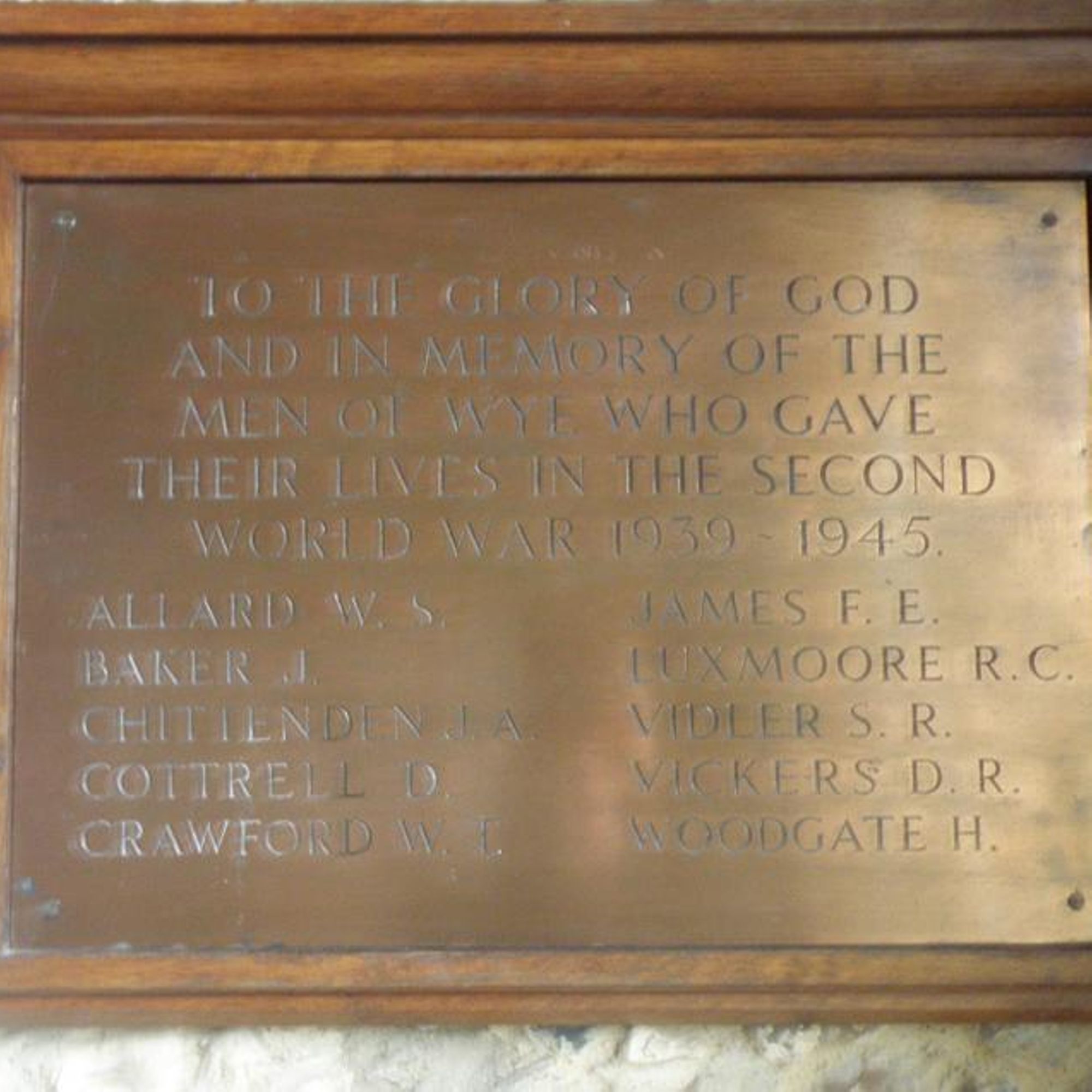 TO THE GLORY OF GOD AND IN MEMORY OF MEN OF WYE WHO GAVED THEIR LIVES IN THE SECOND WORLD WAR 1939-1945