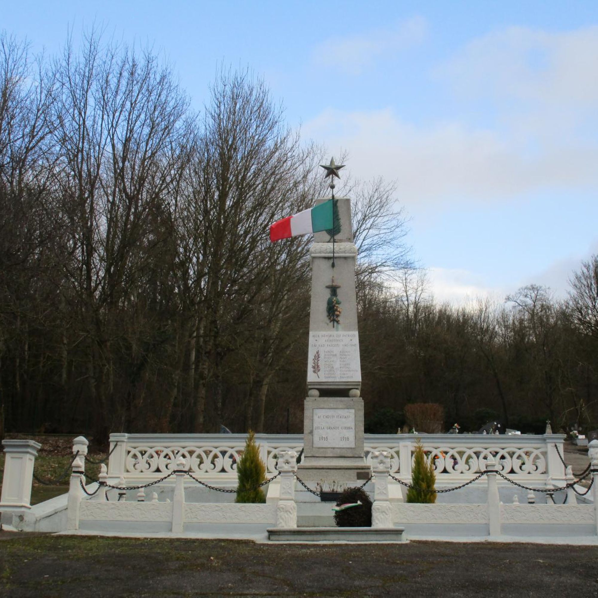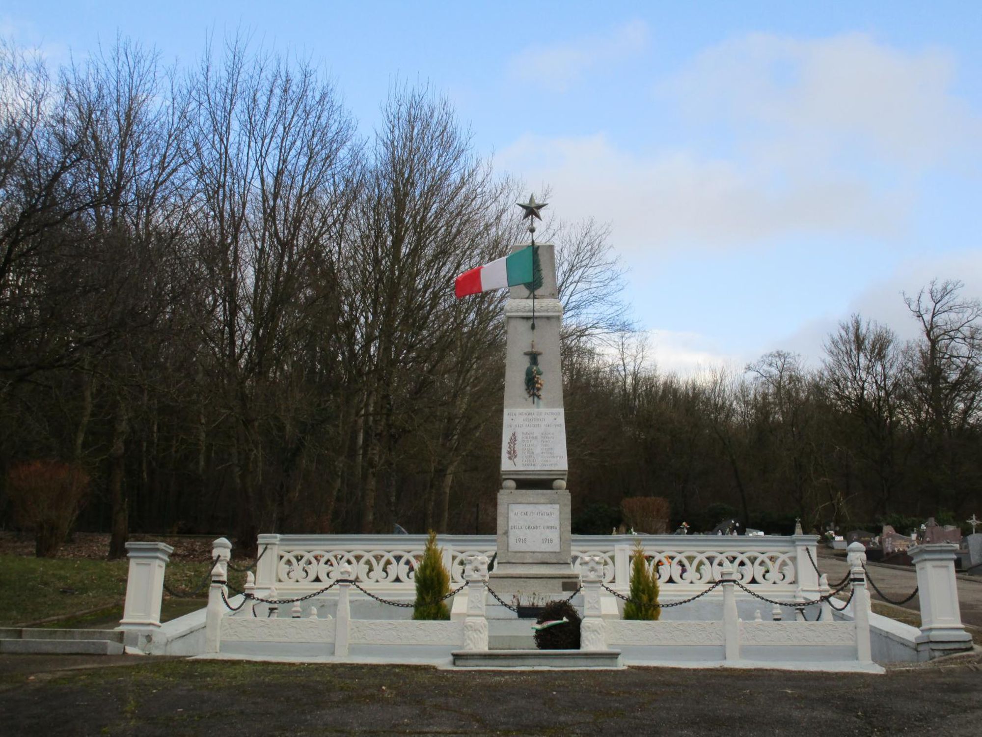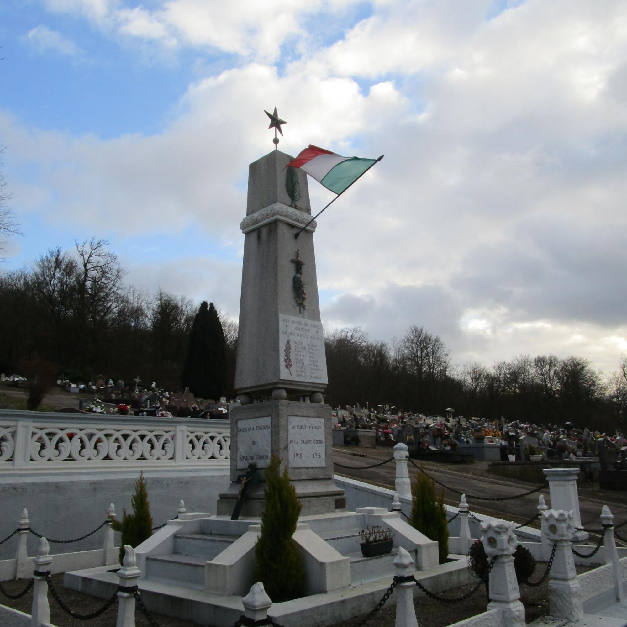 - En 1923, des Italiens de Moyeuvre-Grande souhaitent ériger monument à la mémoire des Italiens morts loin de leur patrie en captivité et de ceux morts au front en Italie. Inauguré en 1925, le monument est obélisque, haut de 5,5 mètres. Il est surmonté d'une étoile en bronze et est orné sur sa face d'une palme en bronze, ainsi que d'un casque et d'une épée ornée de lauriers.