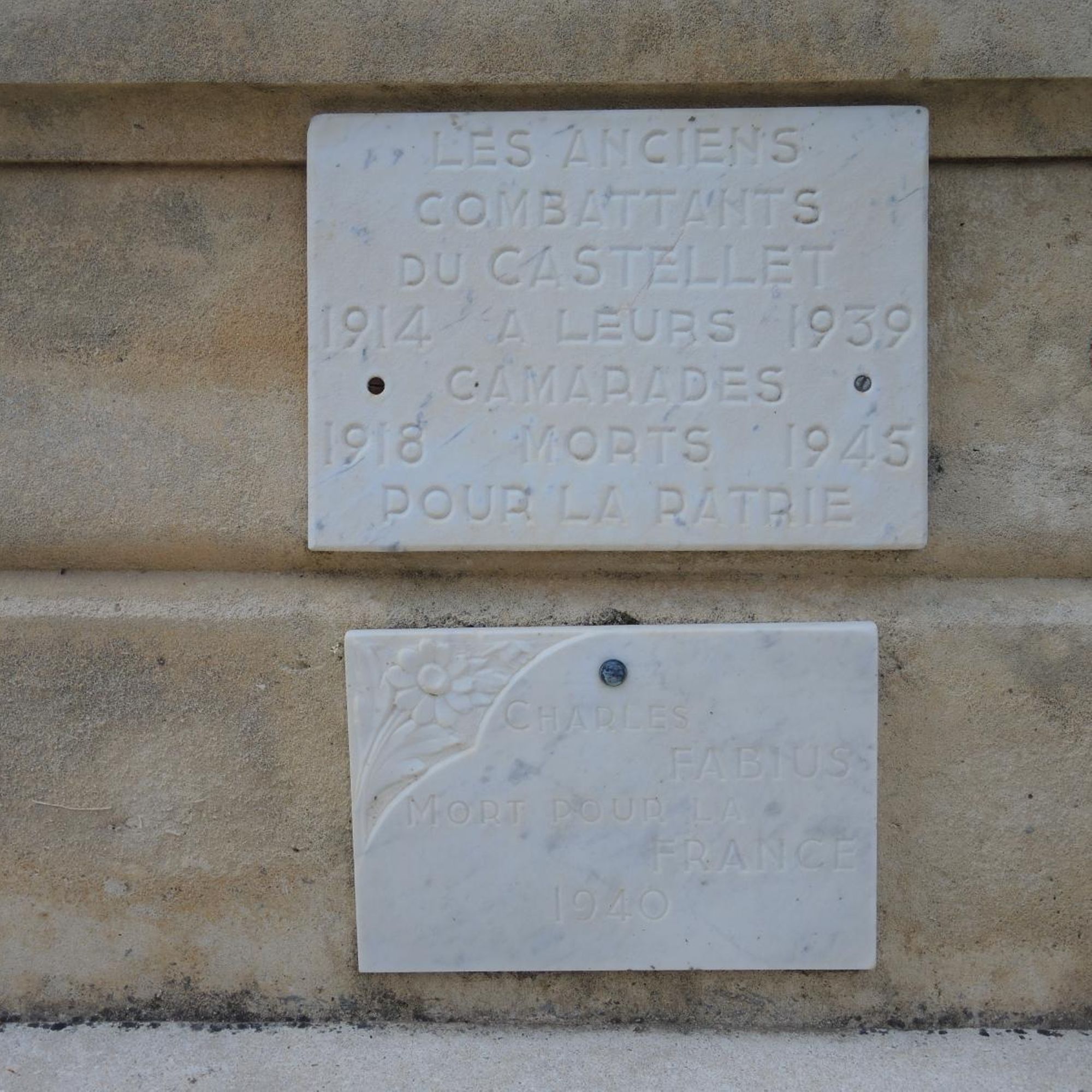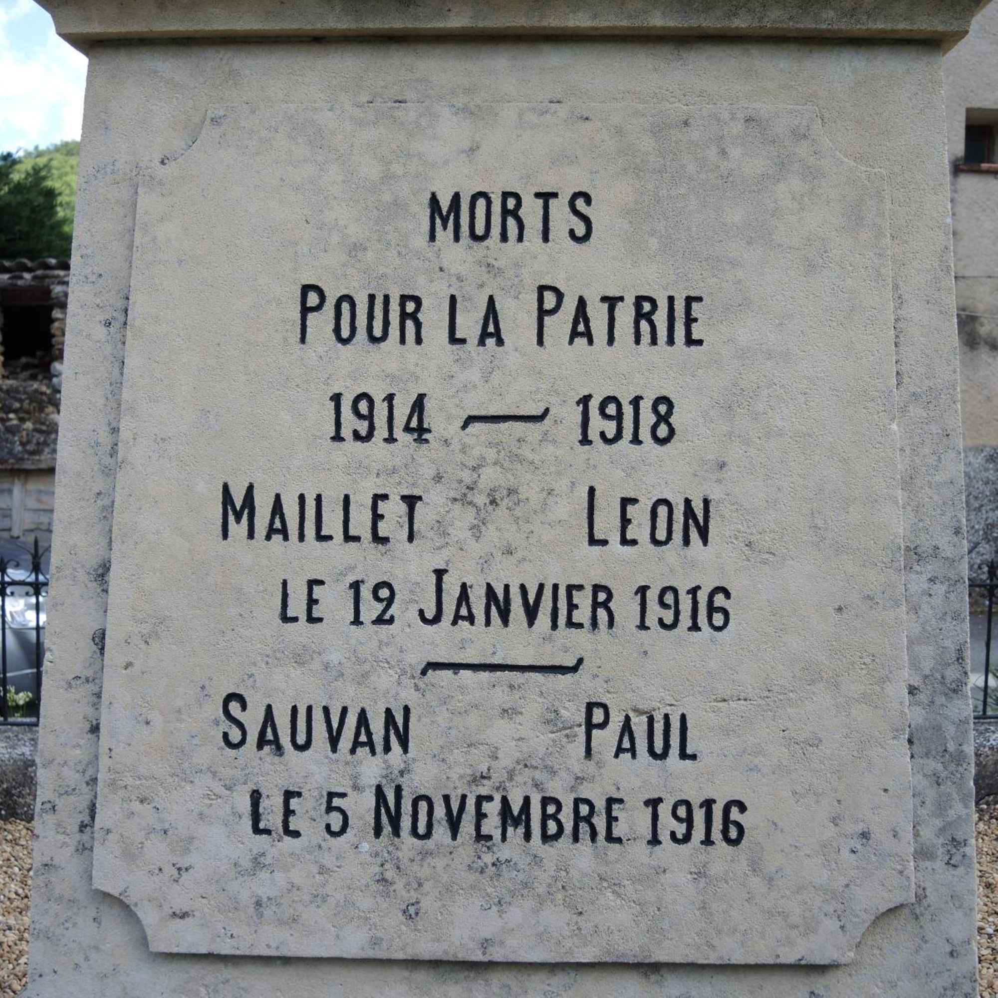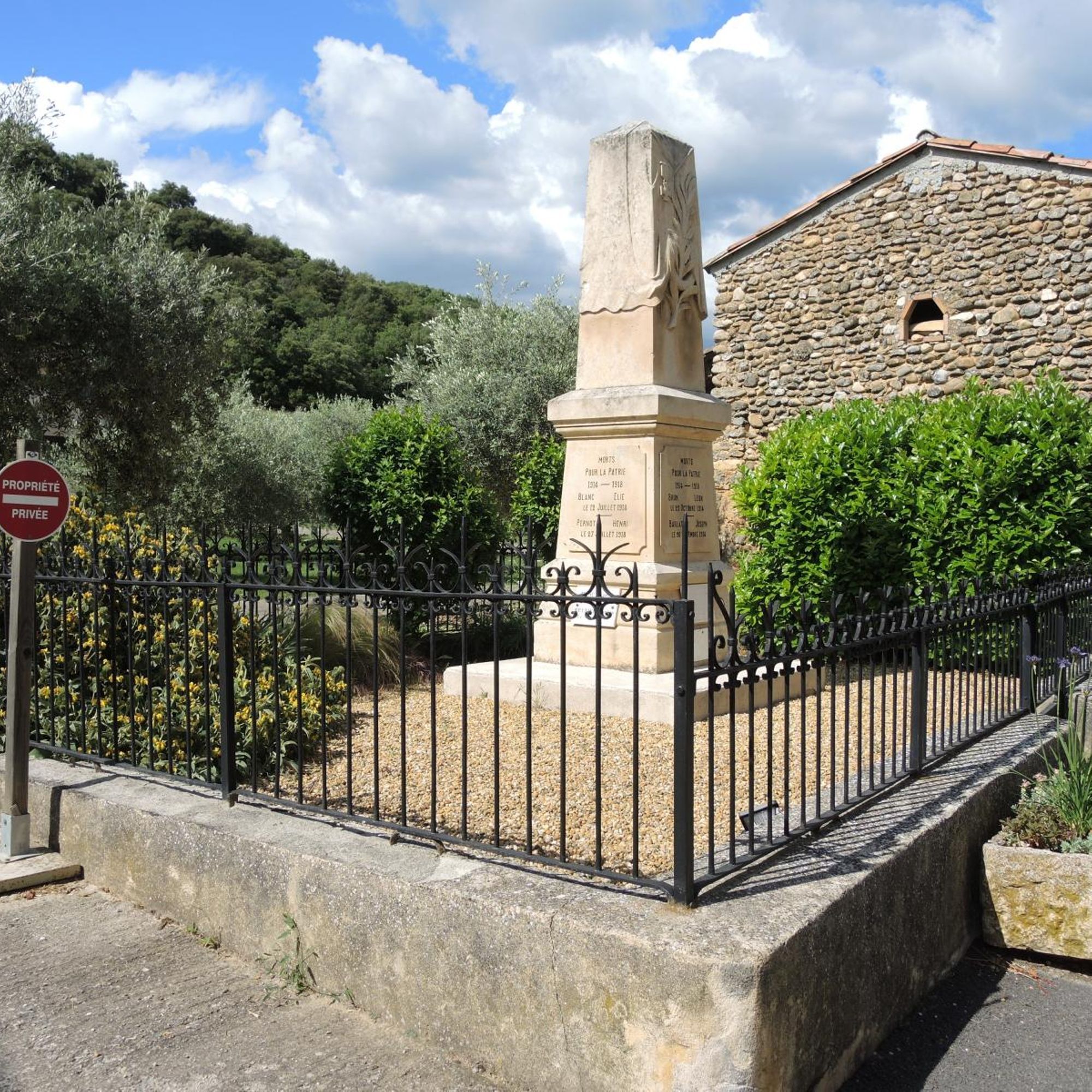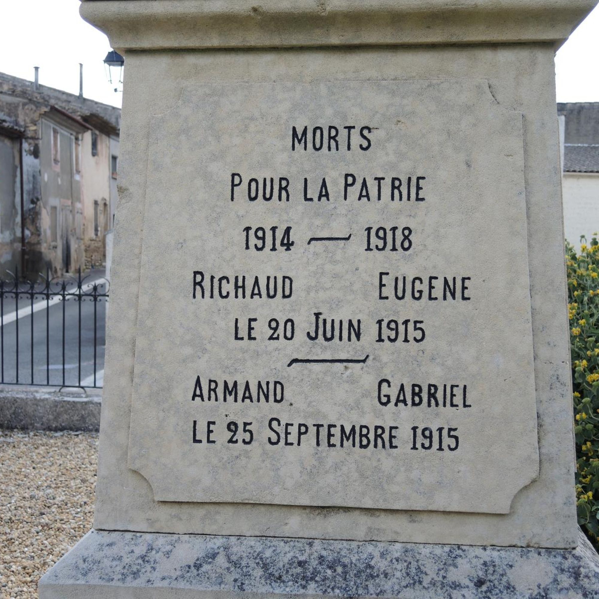 - Obélisque sur un socle élevé, entouré d'une grille ; décor en bas-relief sur la partie sommitale ; inscriptions (noms des morts) sur les quatre faces du socle ; trois plaques de marbres ajoutés sur le monument