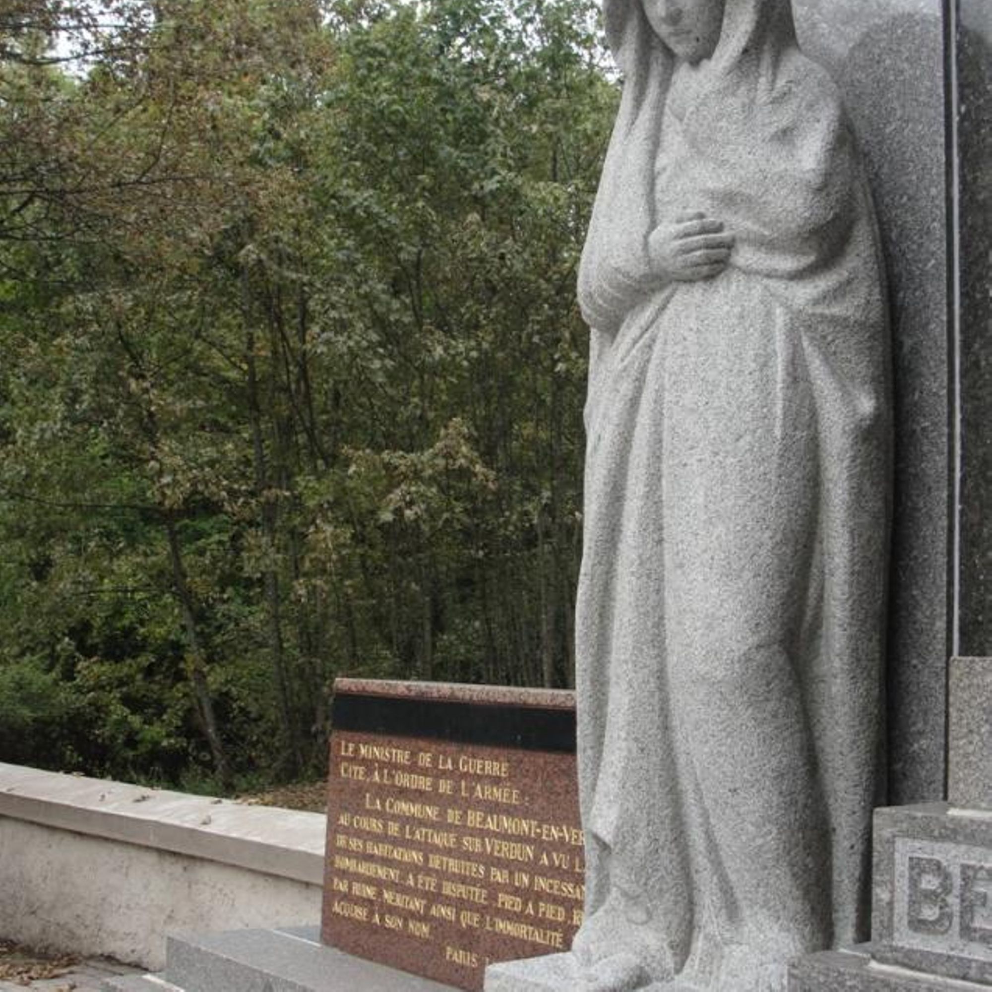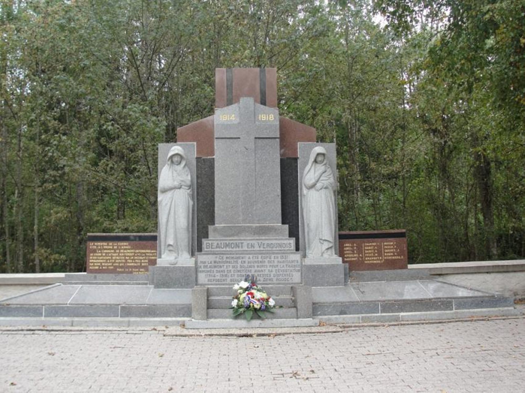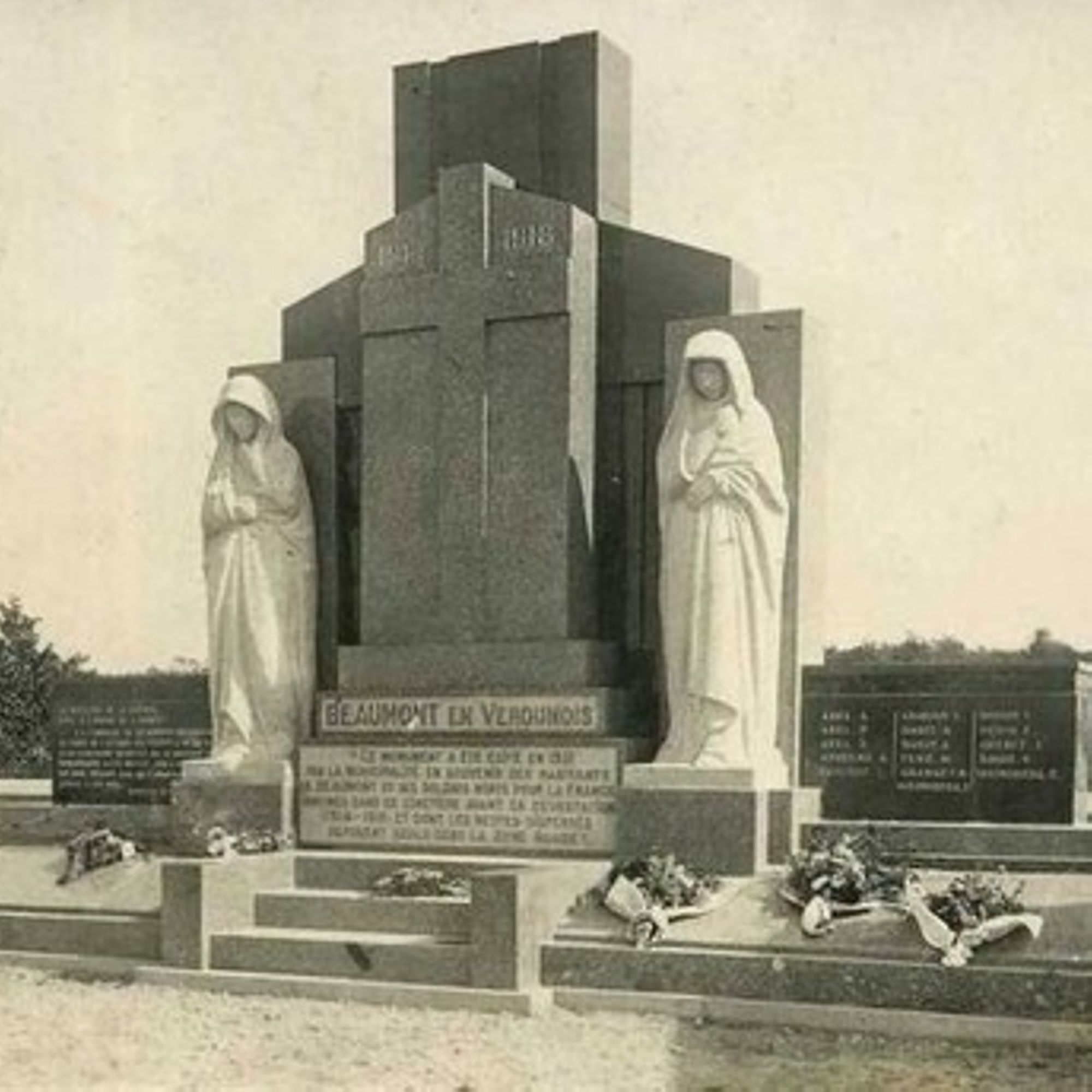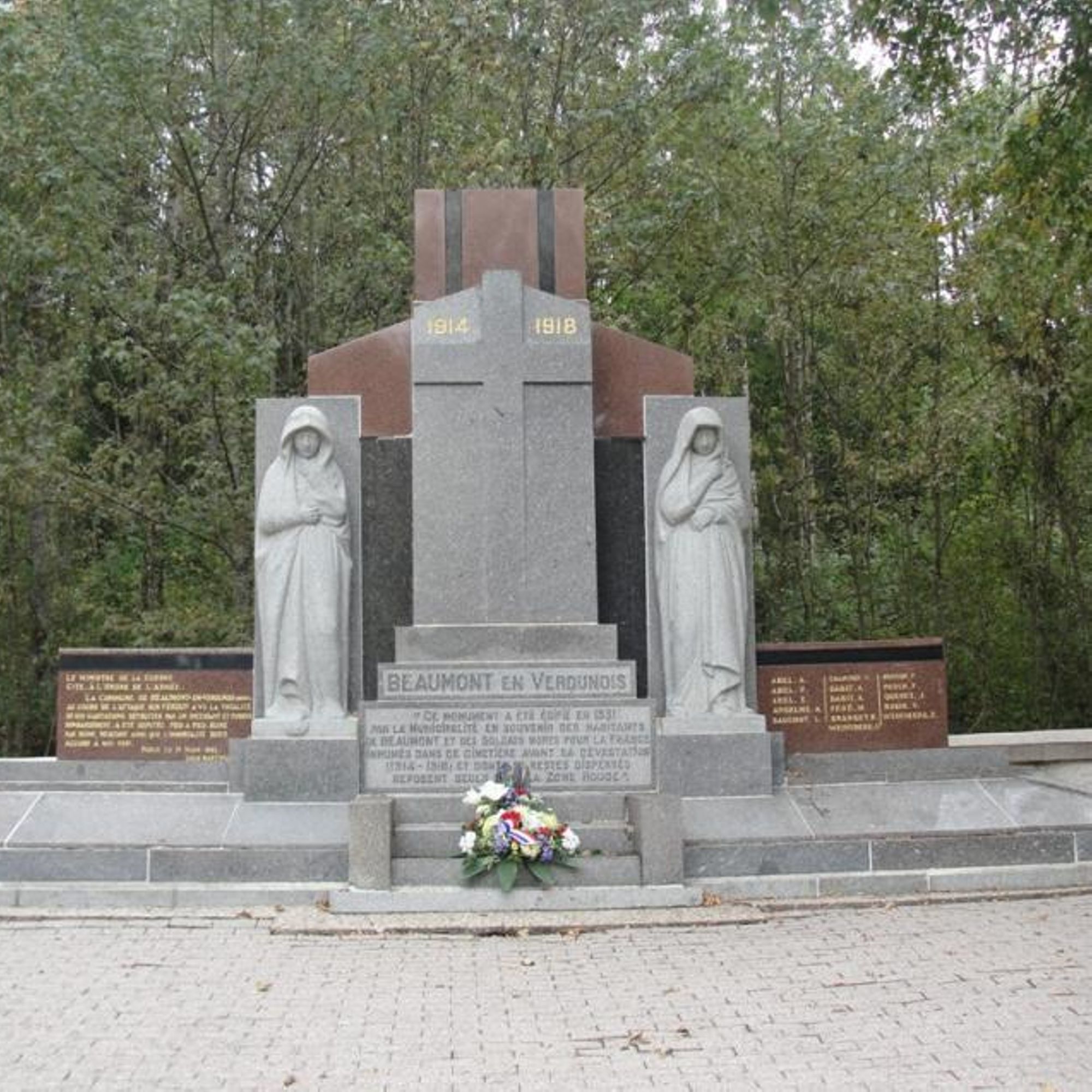 - Ce monument a été édifié en 1931 par la municipalité, en souvenir des habitants de Beaumont et des soldats Morts pour la France, inhumés dans ce cimetière avant sa dévastation (1914-1918), et dont les restes dispersés reposent seuls dans la zone rouge.