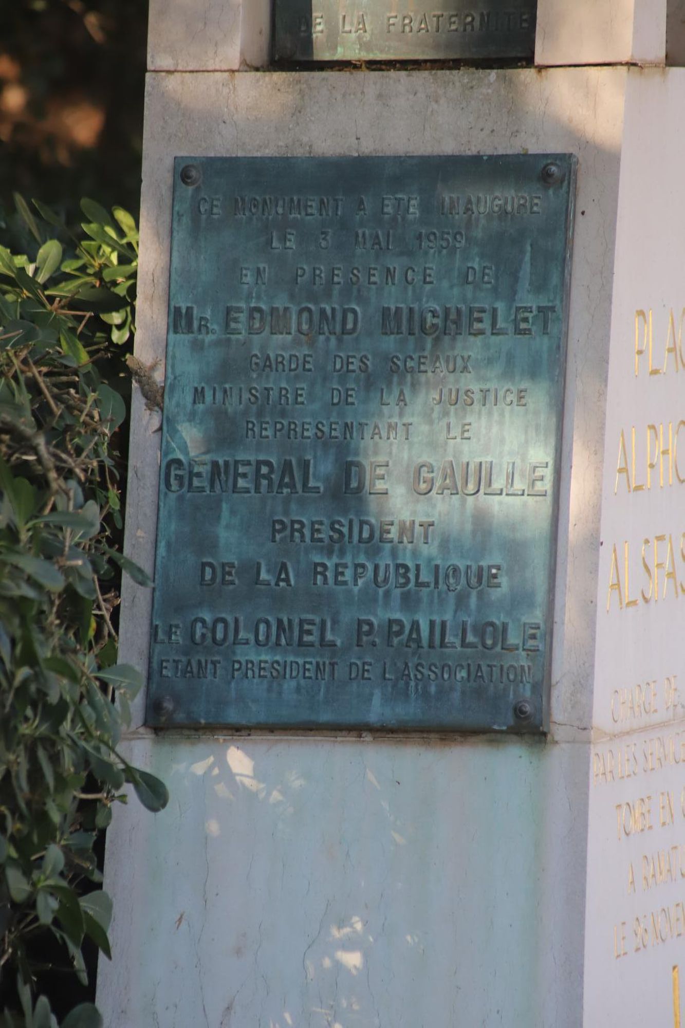 Il est dédié aux membres des services spéciaux morts pour la France lors de la seconde guerre mondiale. Il porte gravé dans la pierre les noms des membres des réseaux du service de renseignement et de contre espionnage qui œuvraient depuis l’automne 1940 dans la clandestinité en France occupée pour préparer les opérations qui ont amené la libération du Pays.