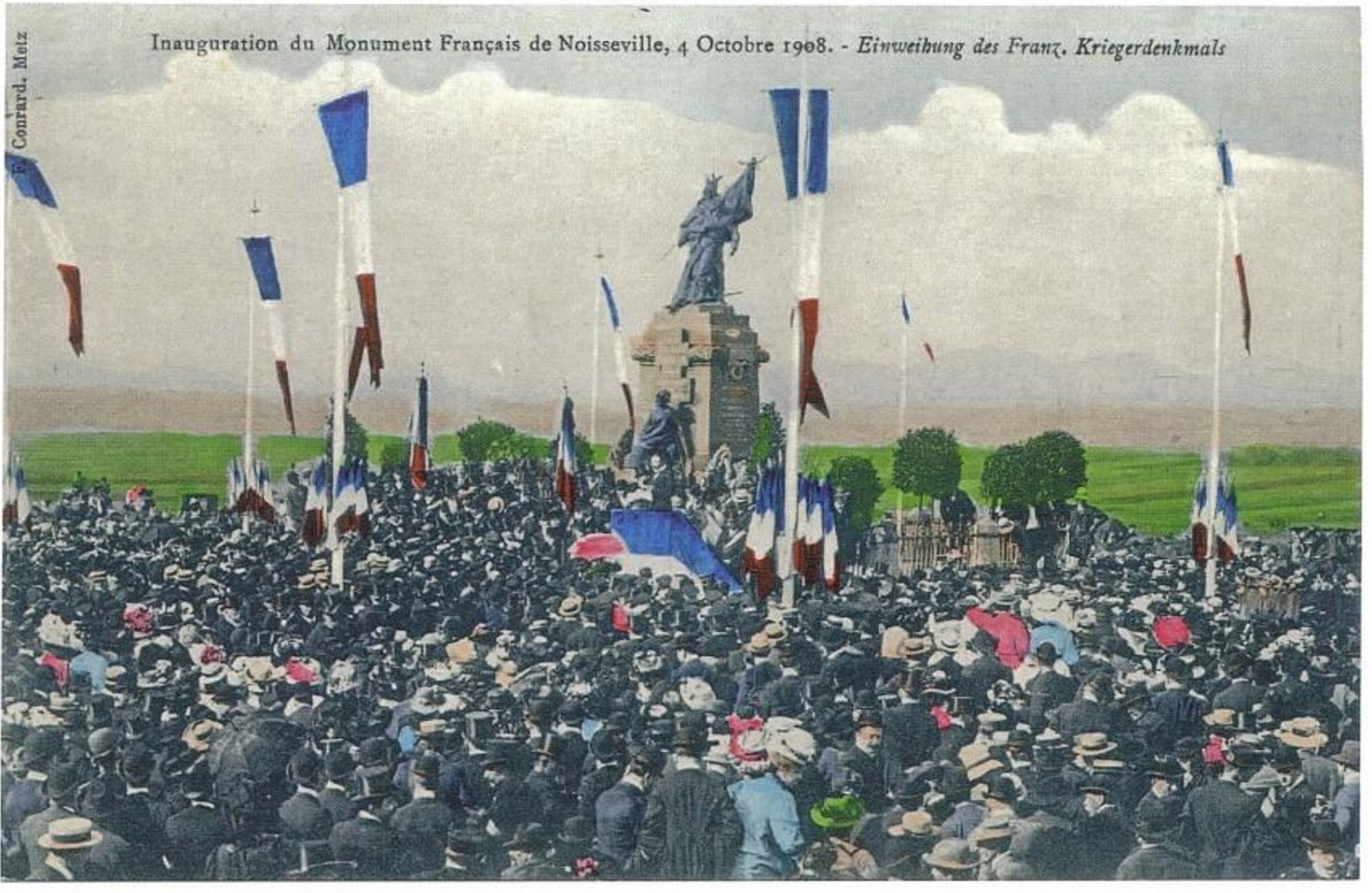 L’inauguration du monument a lieu le lendemain. La presse rapporte l’événement comme étant grandiose ; les trains bondés transportent à Nouilly (gare la plus proche de Noisseville) une foule immense de voyageurs. Les rues jusqu’à Noisseville sont obstruées et engorgées. Toute la Lorraine est venue rendre hommage « à ses héros français ». « Notre souvenir sera leur meilleure récompense » prononce Jean-Pierre JEAN lors de son discours.