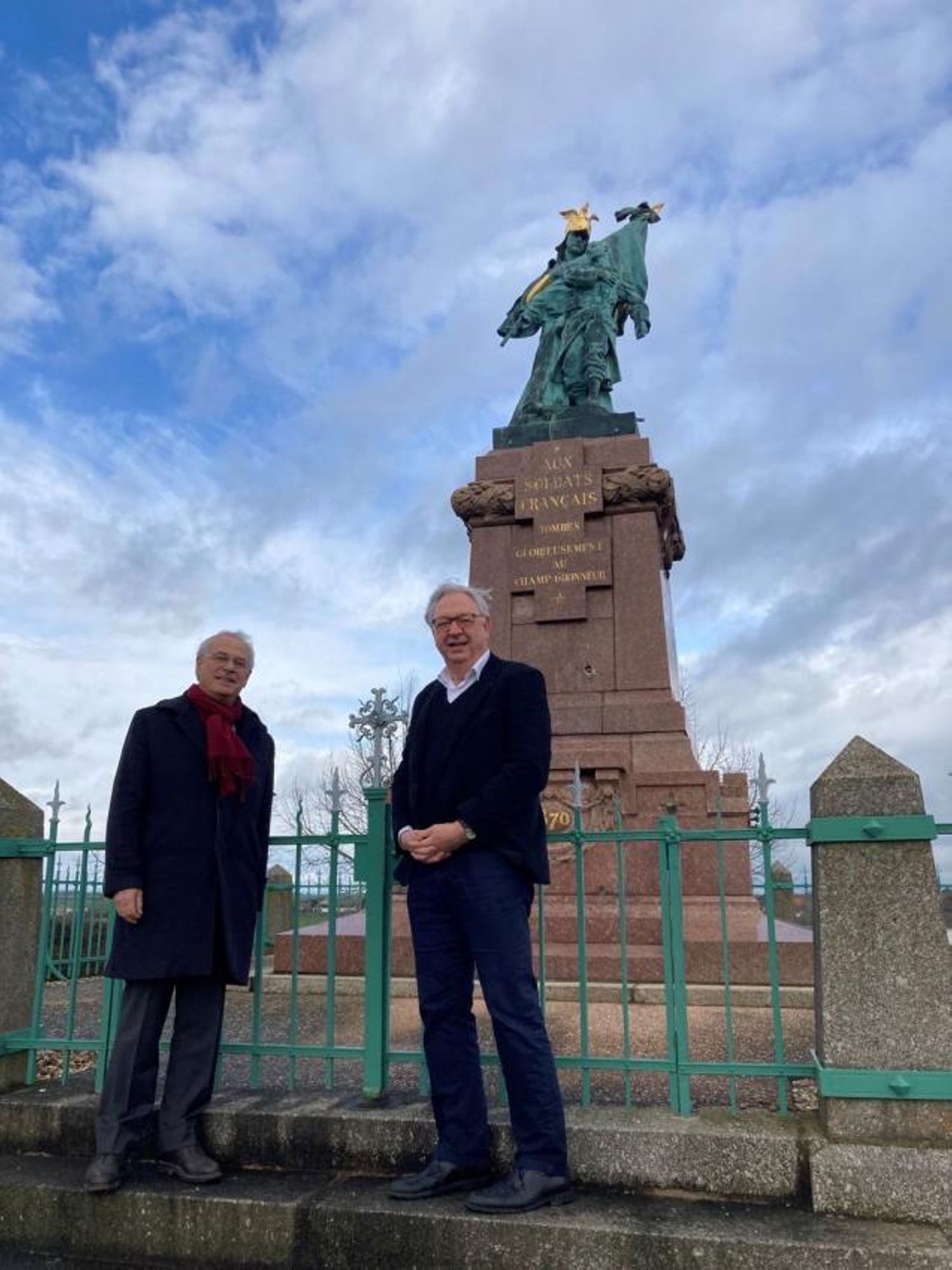Au pied de la statue en bronze représentant la Lorraine :