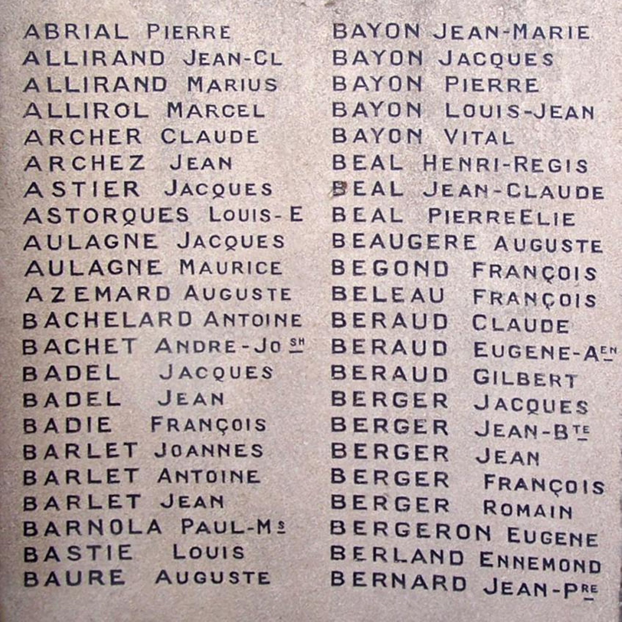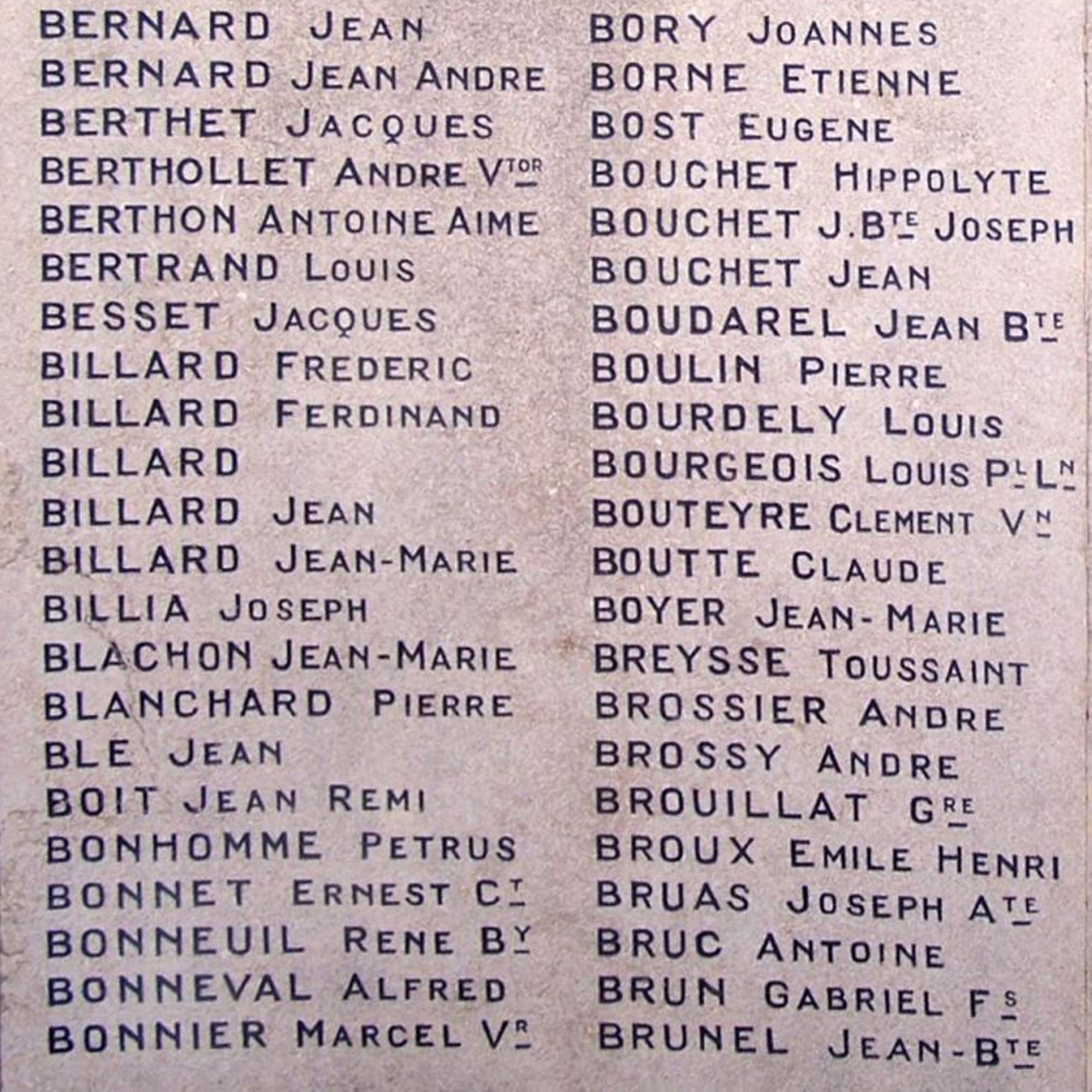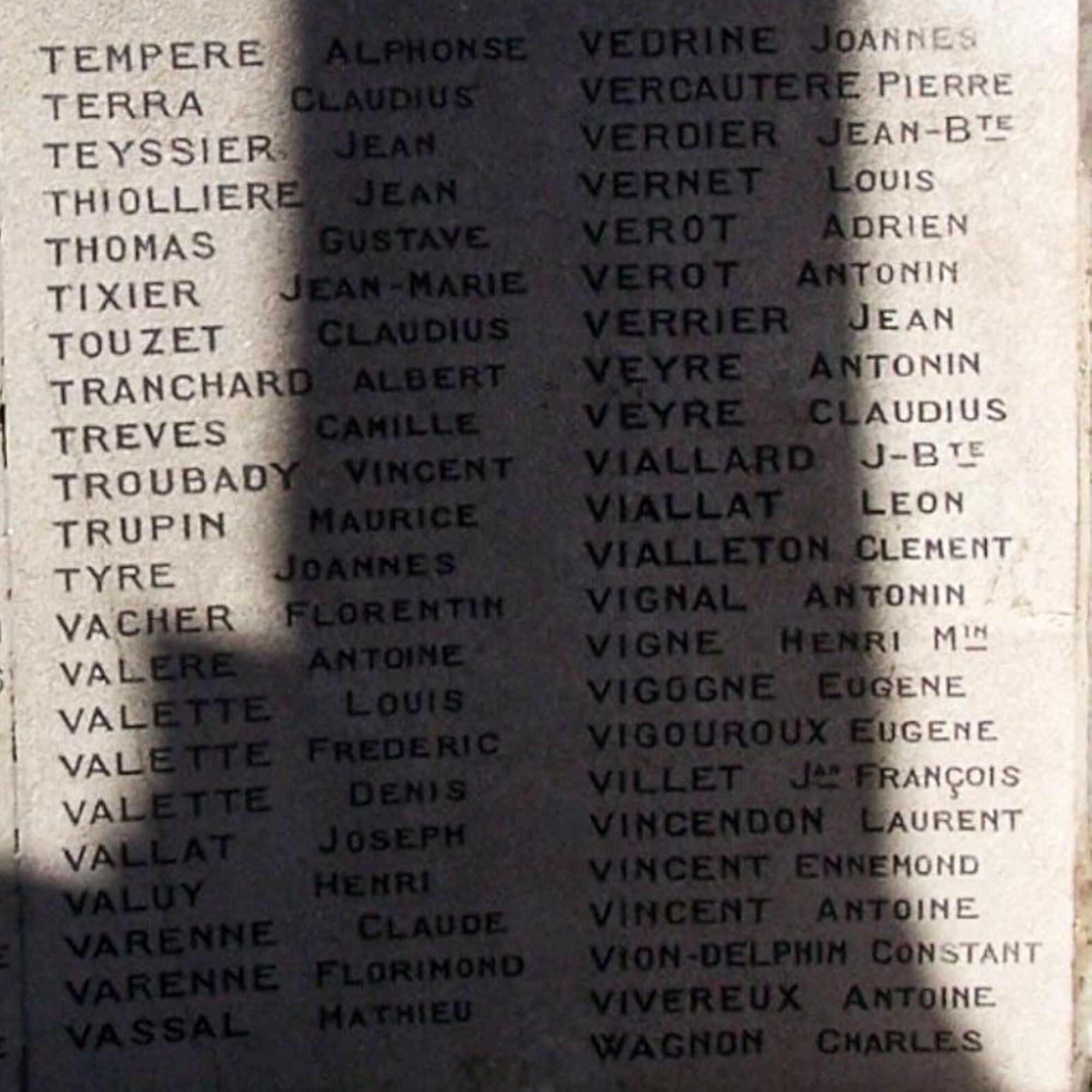 M. Monteiller, au nom du comité d’érection ; adresse aux 606 enfants de Firminy morts à la guerre, un souvenir ému (…). Après avoir exprimé l’espoir que le sacrifice des enfants de Firminy sera pour la jeunesse un enseignement, il place le monument symbolique sous la sauvegarde de la population.