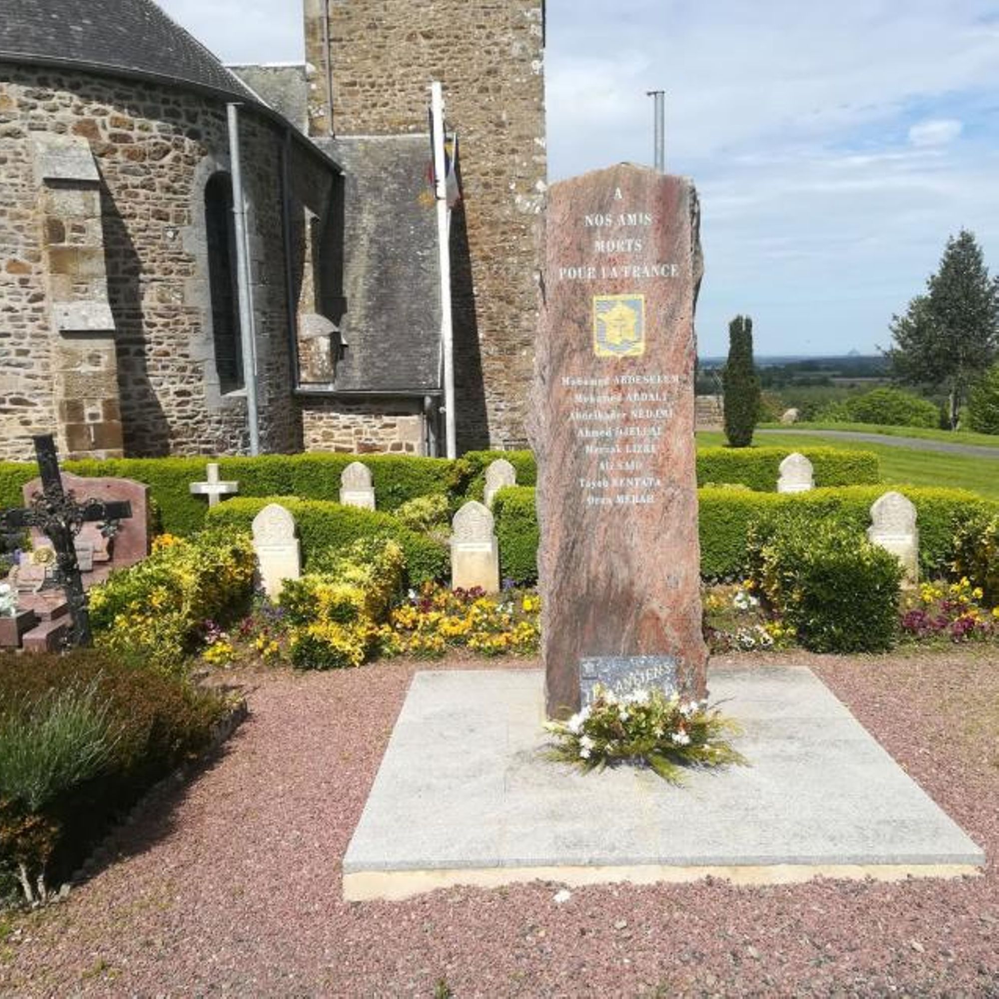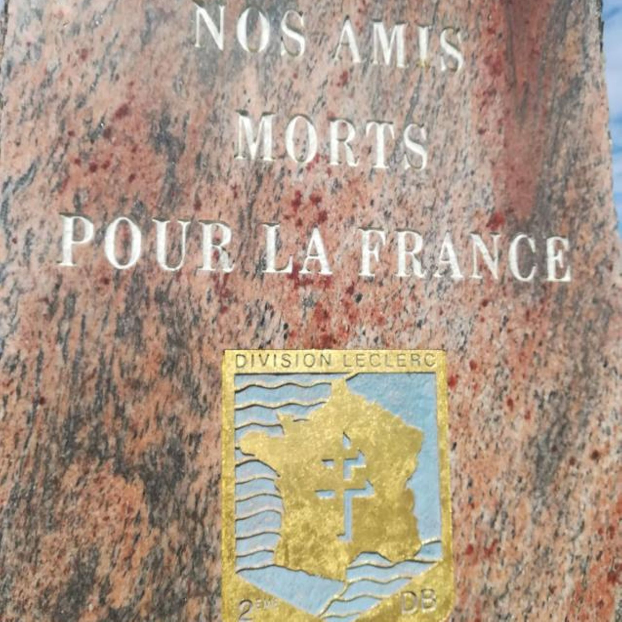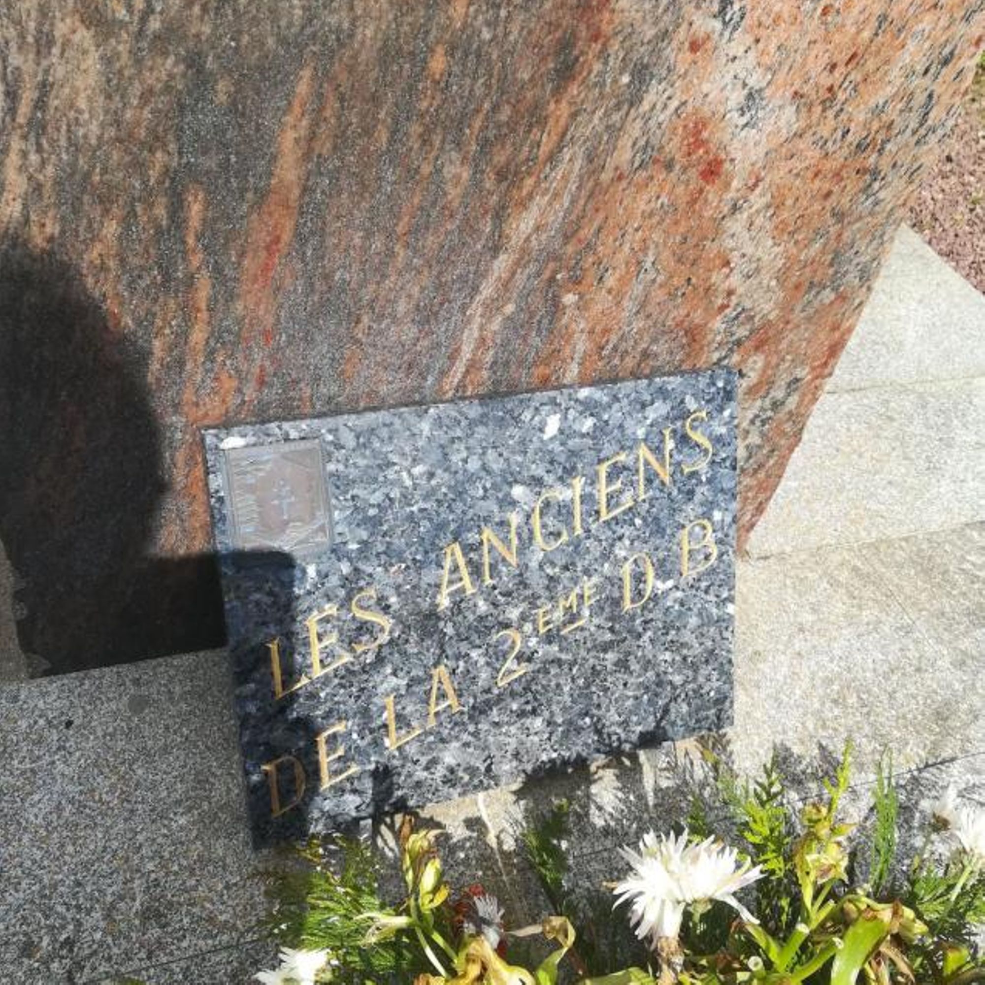 Stèle commémorative de la 2ème D.B. avec les noms des victimes du carré militaire situé derrière.