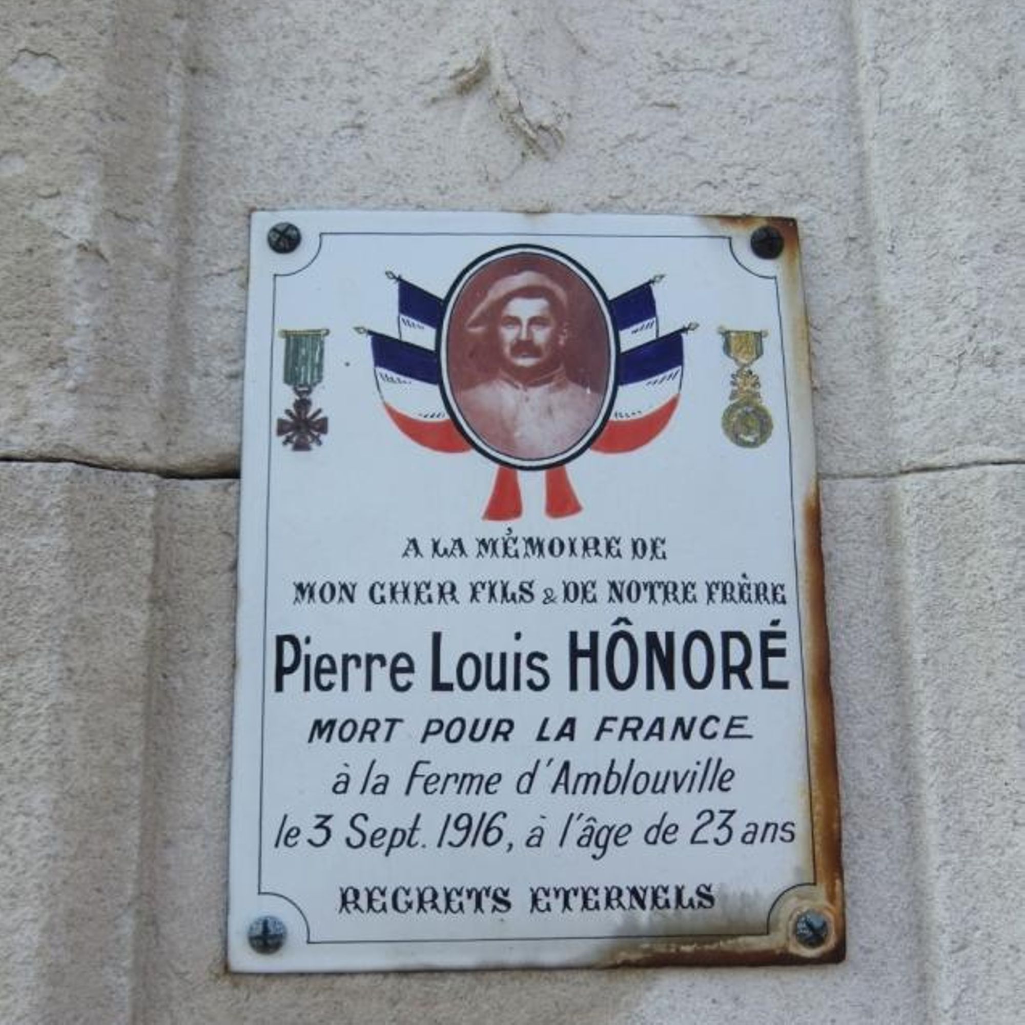HONORÉ Fernand [Plaque Pierre Louis Mort pour la France à la Ferme d'Amblouville le 3 sept. 1916 à l'âge de 23 ans]