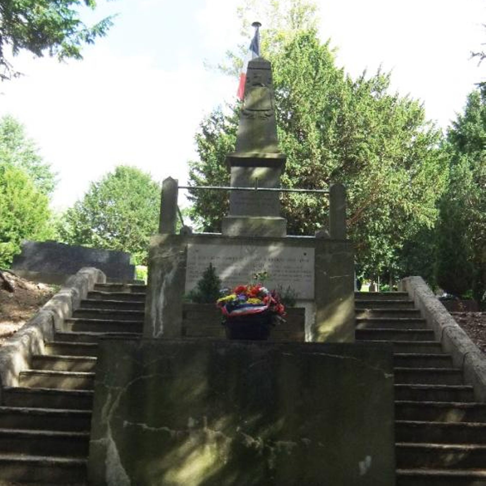 - Au pied d'un Monument Commémoratif érigé en 1912 par le Souvenir Français en hommage à un ancien Grognard de Napoléon décédé en 1864.