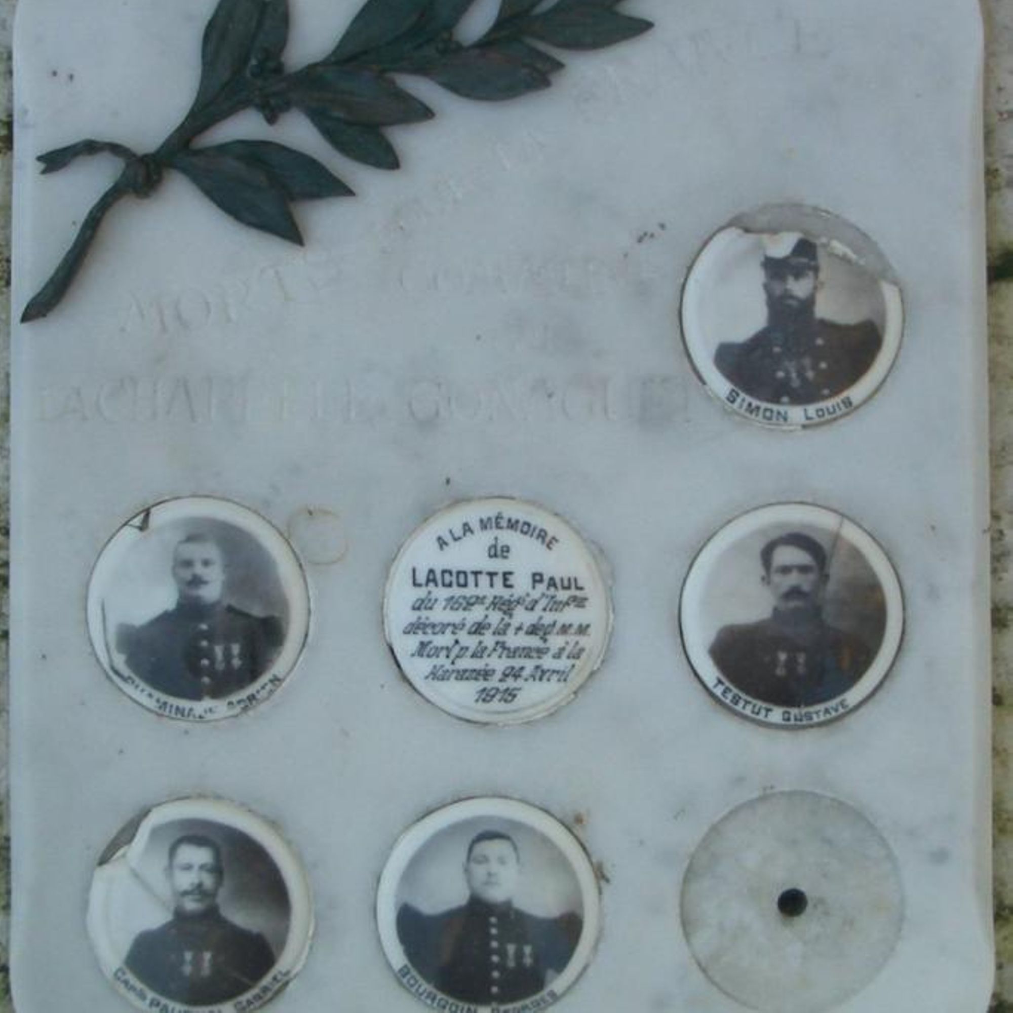 Paul LACOTE [Plaque émaillée LACOTTE du 162e RI décoré de la Croix de Guerre M.M., Mort pour la France à la Harazée 24 avril 1915]