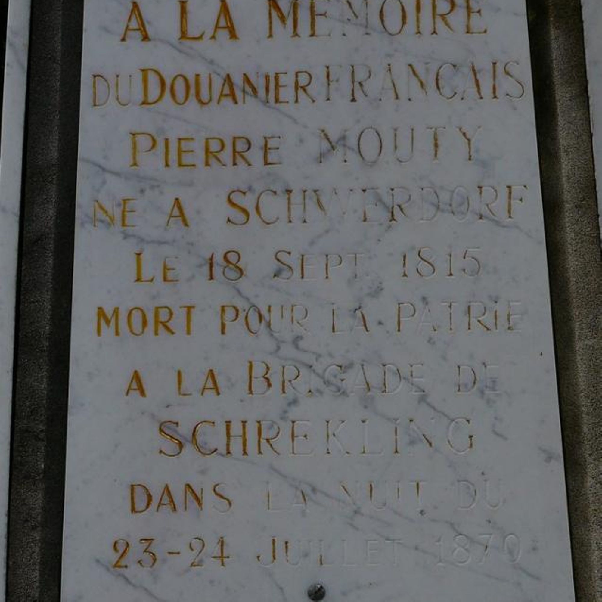 Douanier français Pierre MOUTY né à Schwerdorf le 18 sept. 1815 mort pour la Patrie à la brigade de Schrekling dans la nuit du 23-24 juillet 1870