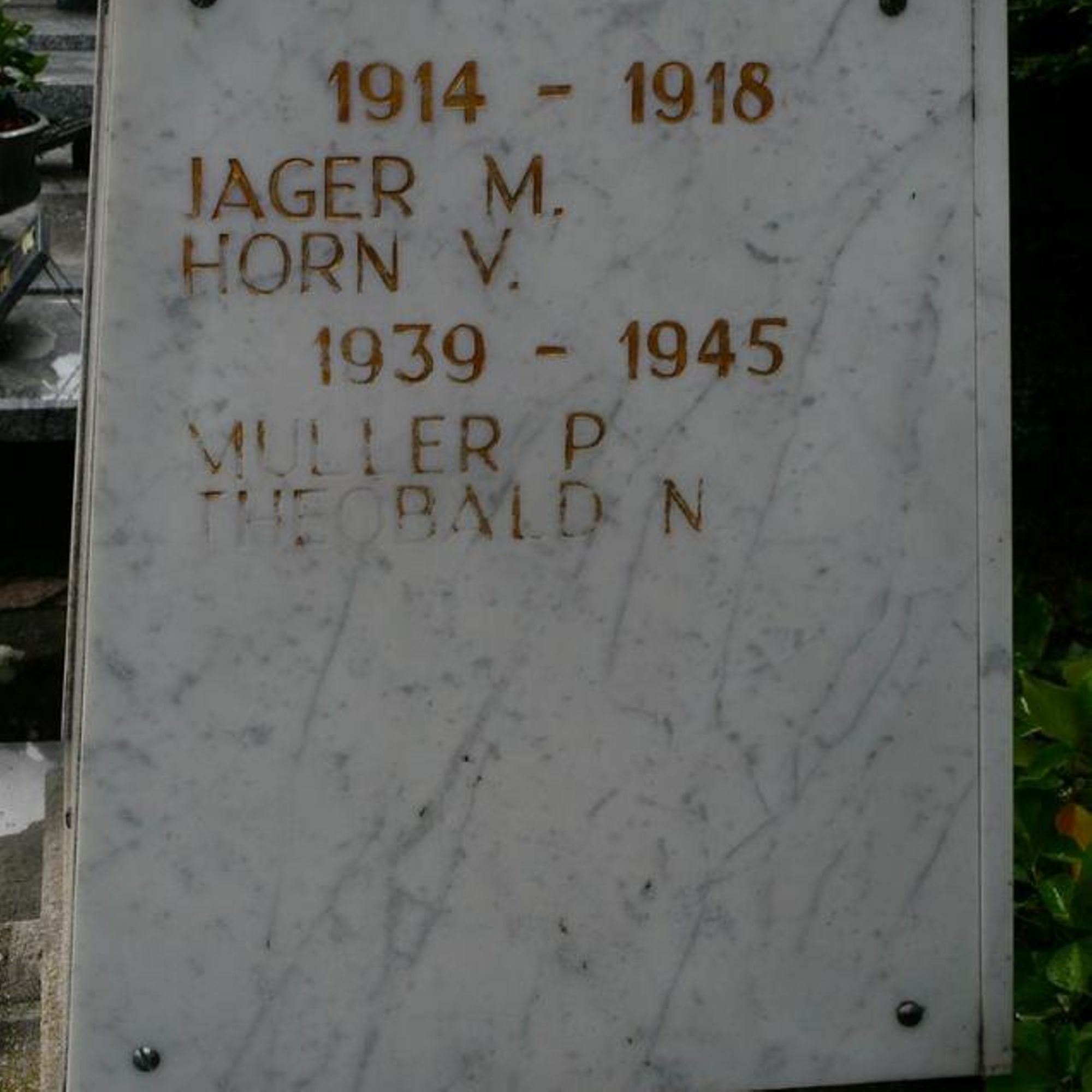 Par la suite sur cette tombe furent apposées deux plaques pour les morts de 1914/1918 et 1939/1945.
