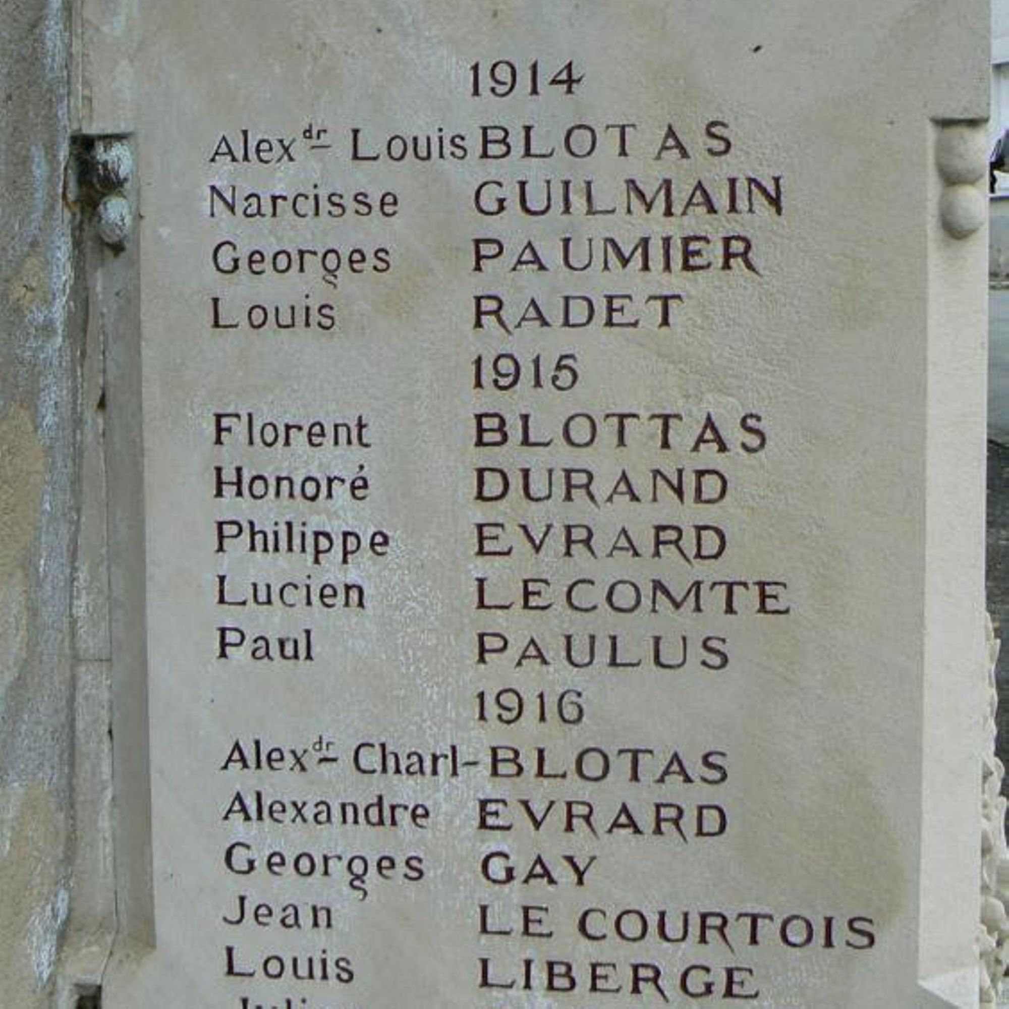 GASNIER Louis mort le 15 sept. 1918 ne figure pas sur le monument