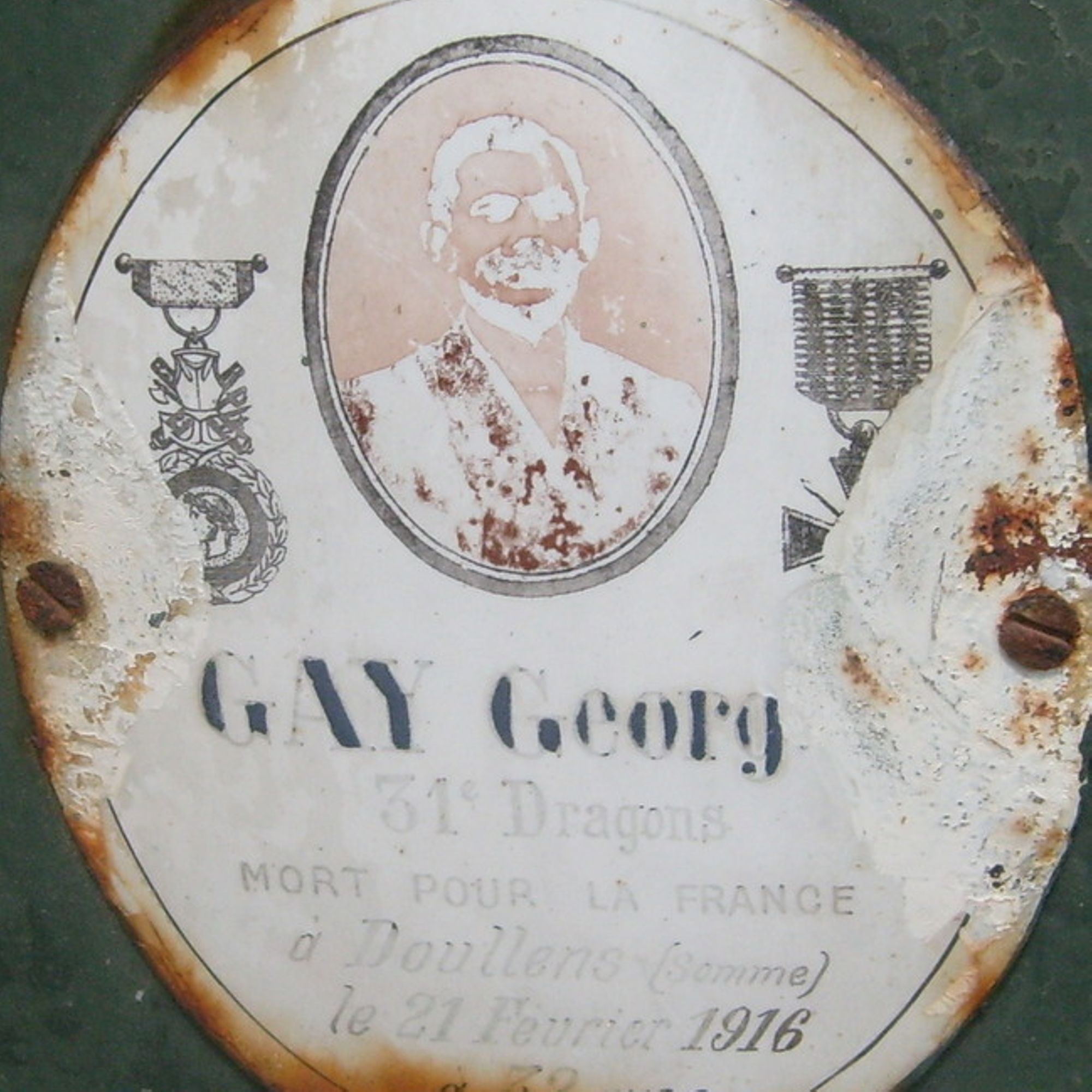 Georges GAY [Plaque émaillée 31e Dragons Mort pour la France à Doullens (Somme) le 21 février 1916 à 32 ans]