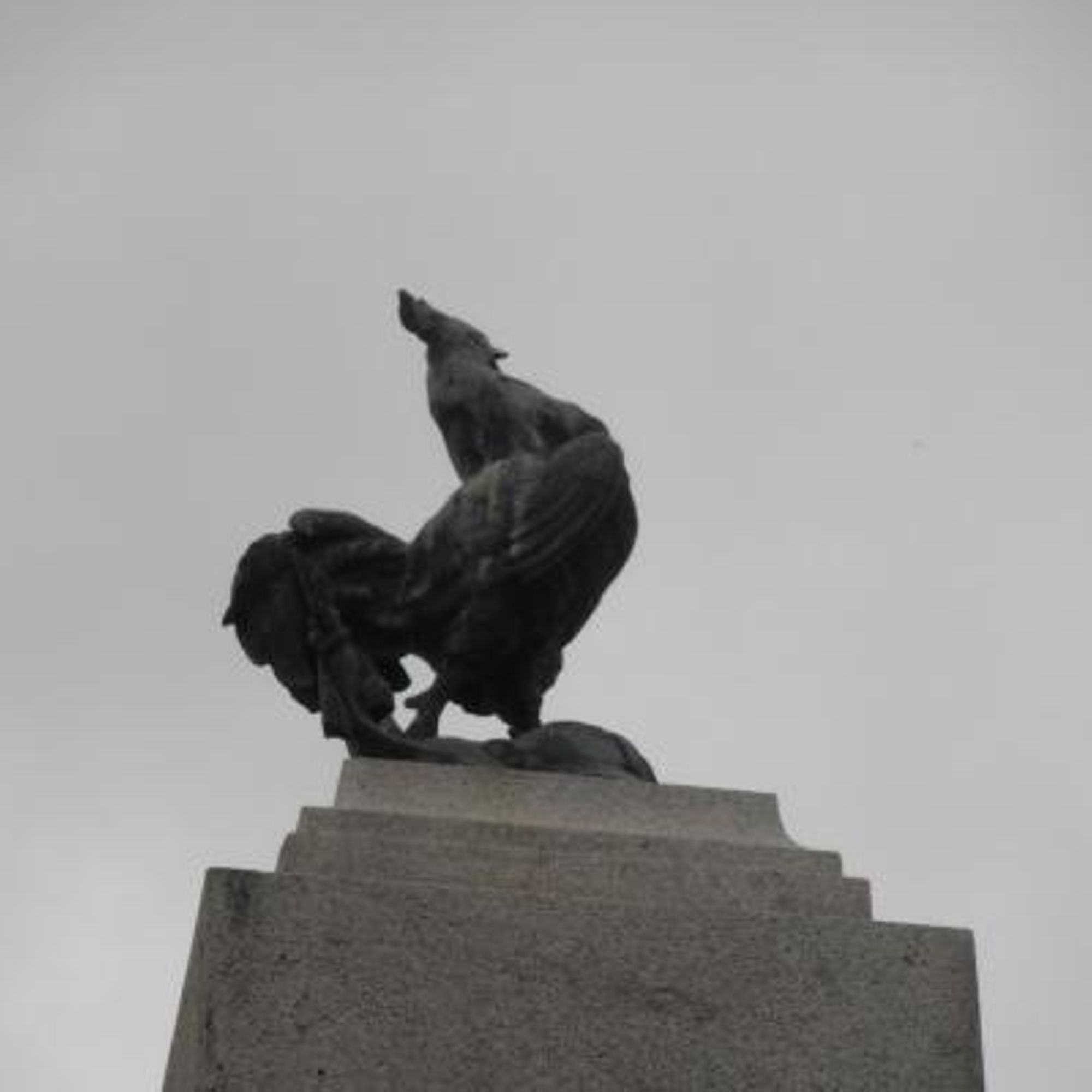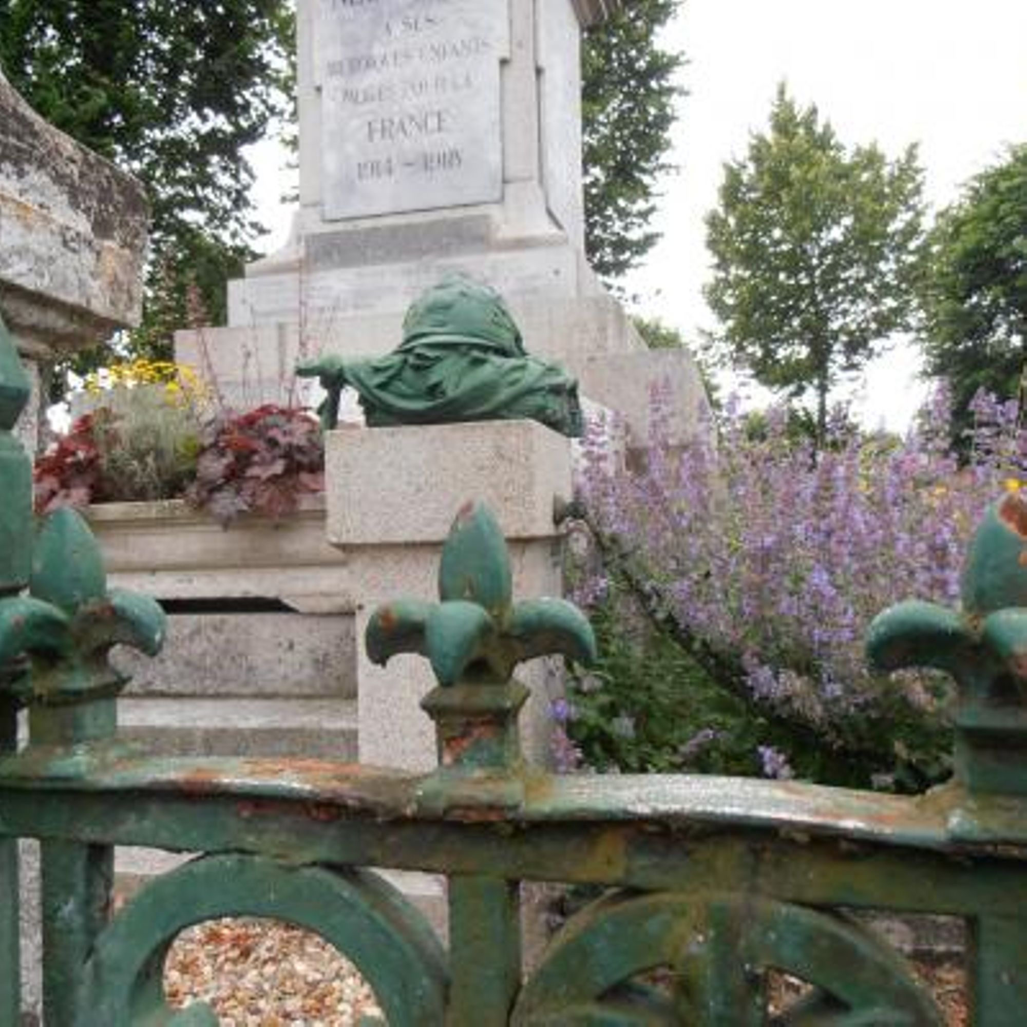 - Les deux sculptures présentes sur ce monument - le Médaillon et le Coq - sont des oeuvres de série ; chacune d'entre elles connut une diffusion en nombre important, et leur couplage n'est pas rare. A l'instar des autres oeuvres au catalogue des Marbreries, elles existaient en divers matériaux, du bronze à la pierre artificielle, en passant par le marbre. L'auteur ou les auteurs des modèles restent inconnus.