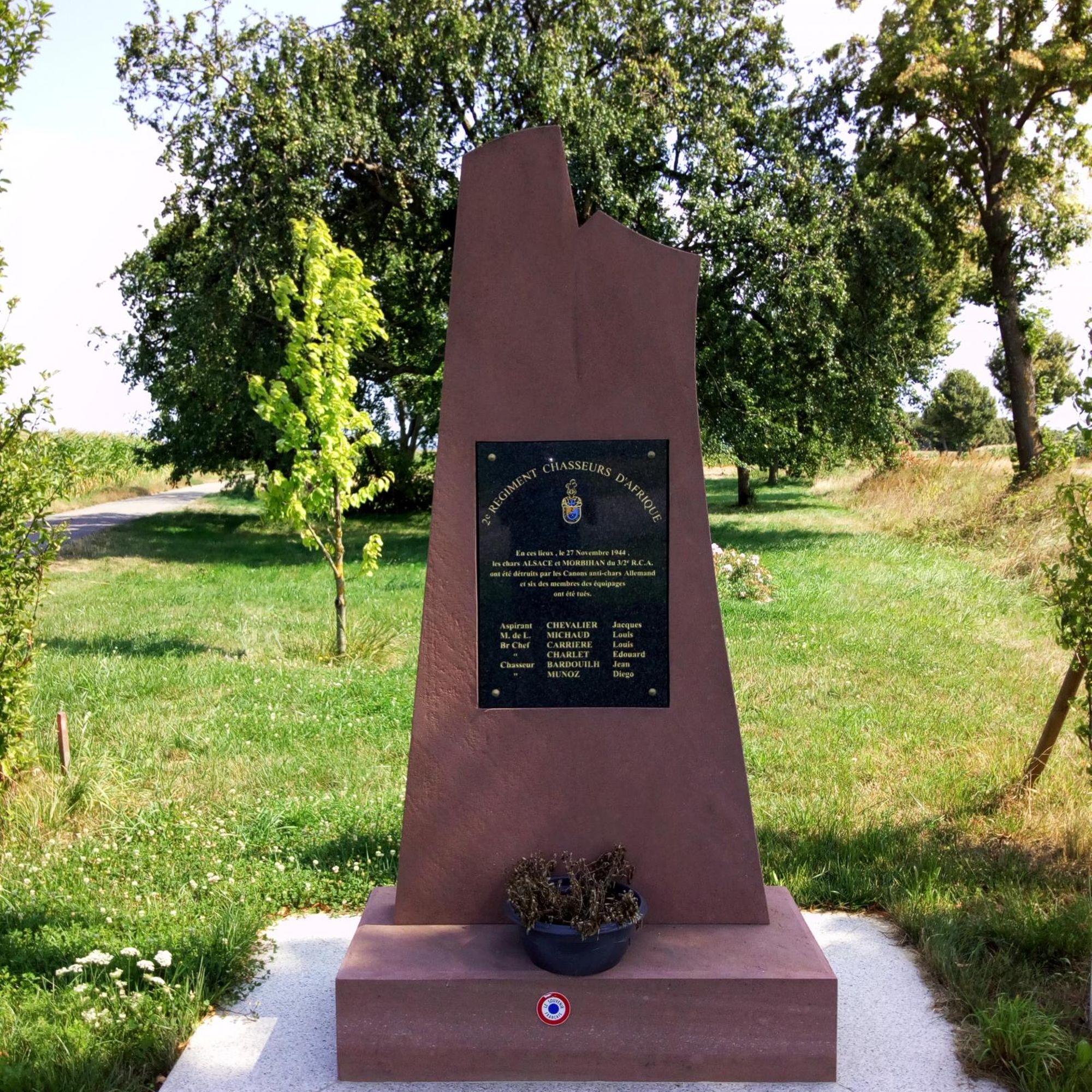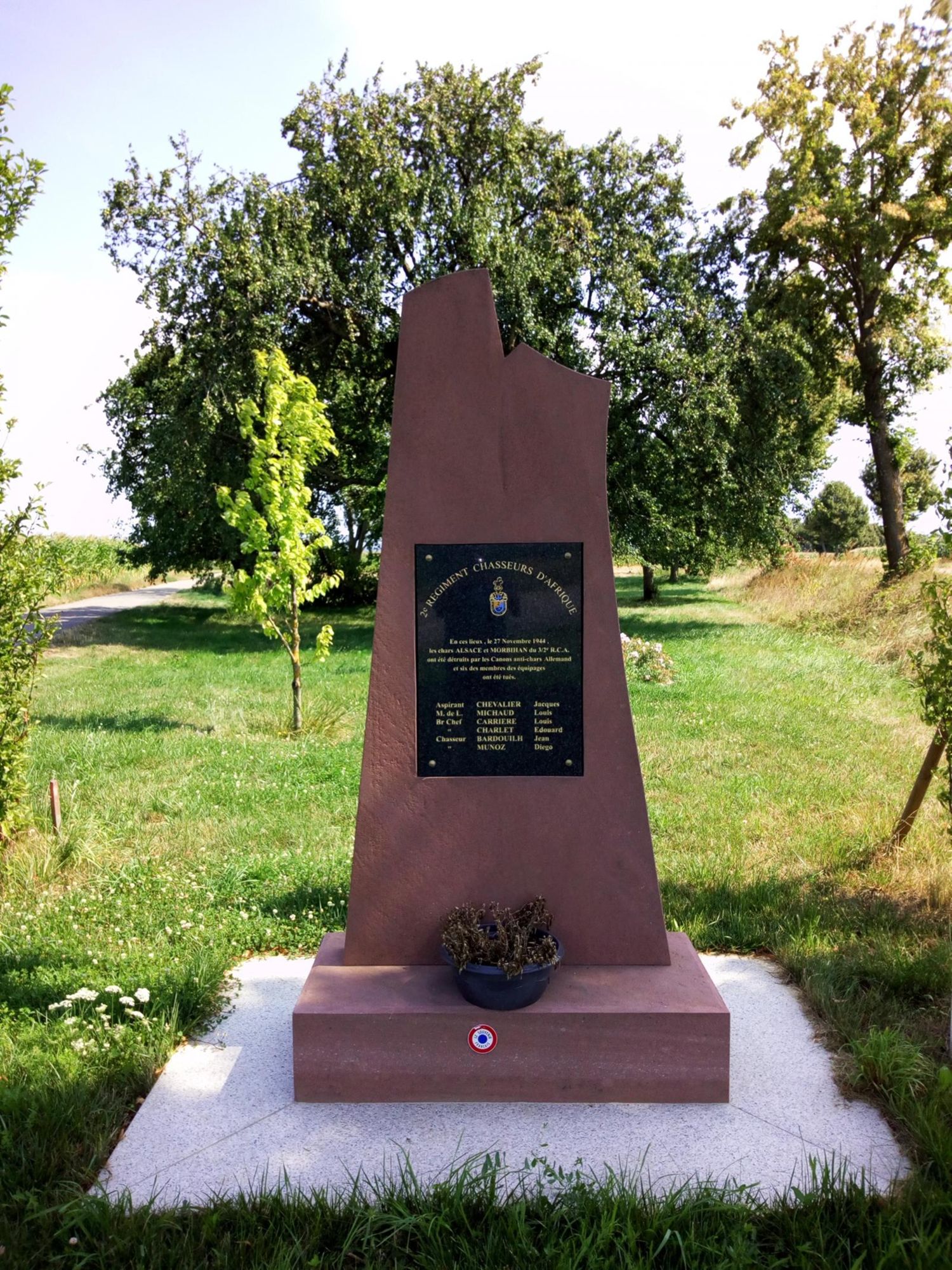 - Situation - informations : Route de Burnaupth. Equipages des chars Alsace et Morbihan du 3/2è RCA détruits par les canons anti-chars allemands