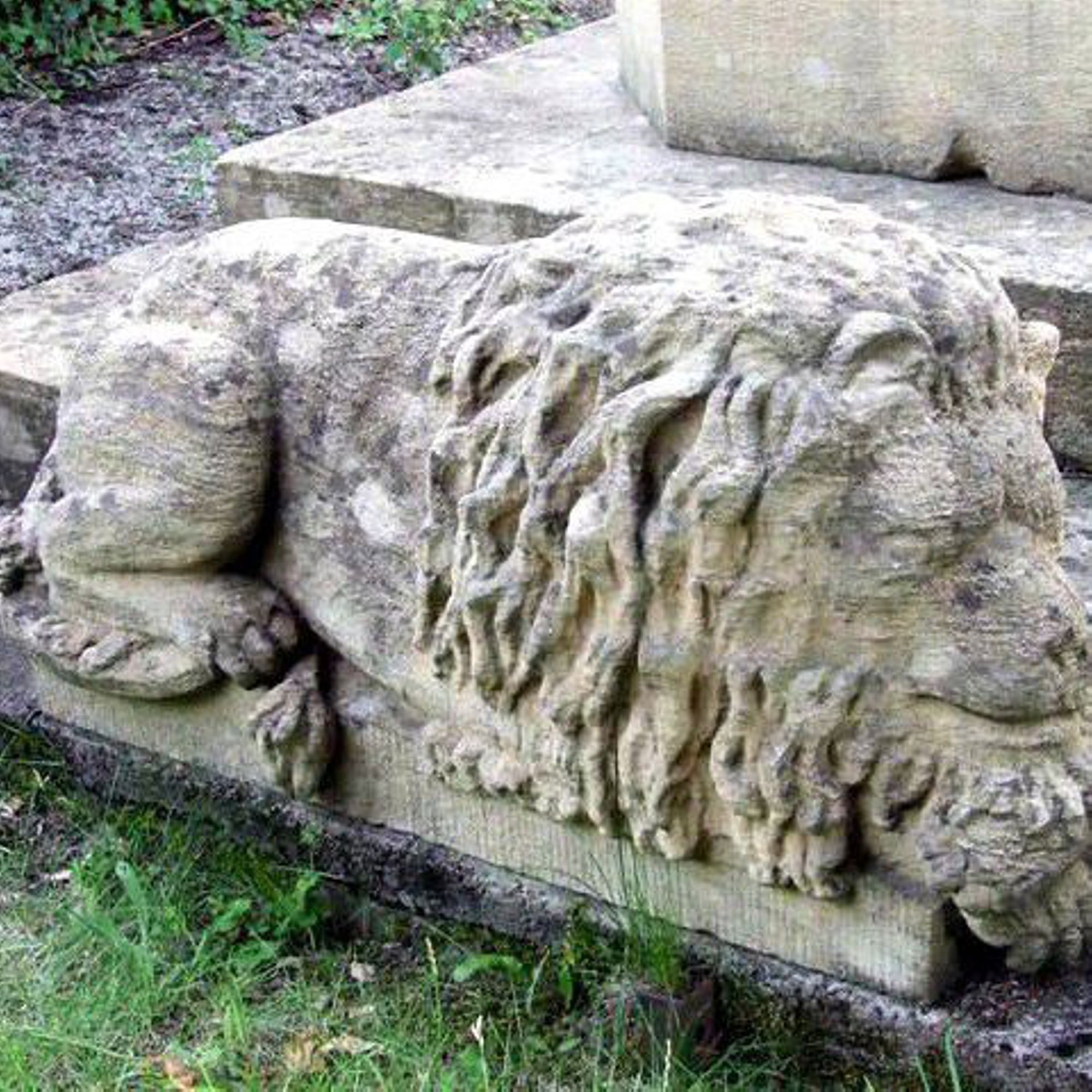 Taillée dans le calcaire local, une jeune Lorraine figée est en train de penser. Le flambeau retourné à côté d’elle et les urnes aux quatre coins du monument expriment le deuil qu’elle doit supporter avec vaillance. Les lions placés sur le devant gardent les tombeaux et rappellent aussi que les hommes se sont battus comme des lions avant de mourir. Cinq tonnes de grenaille avaient été déversées autour de la composition : elles provenaient de l’usine voisine, celle-là même où avaient pu travailler les victimes et qui faisait vivre leurs familles