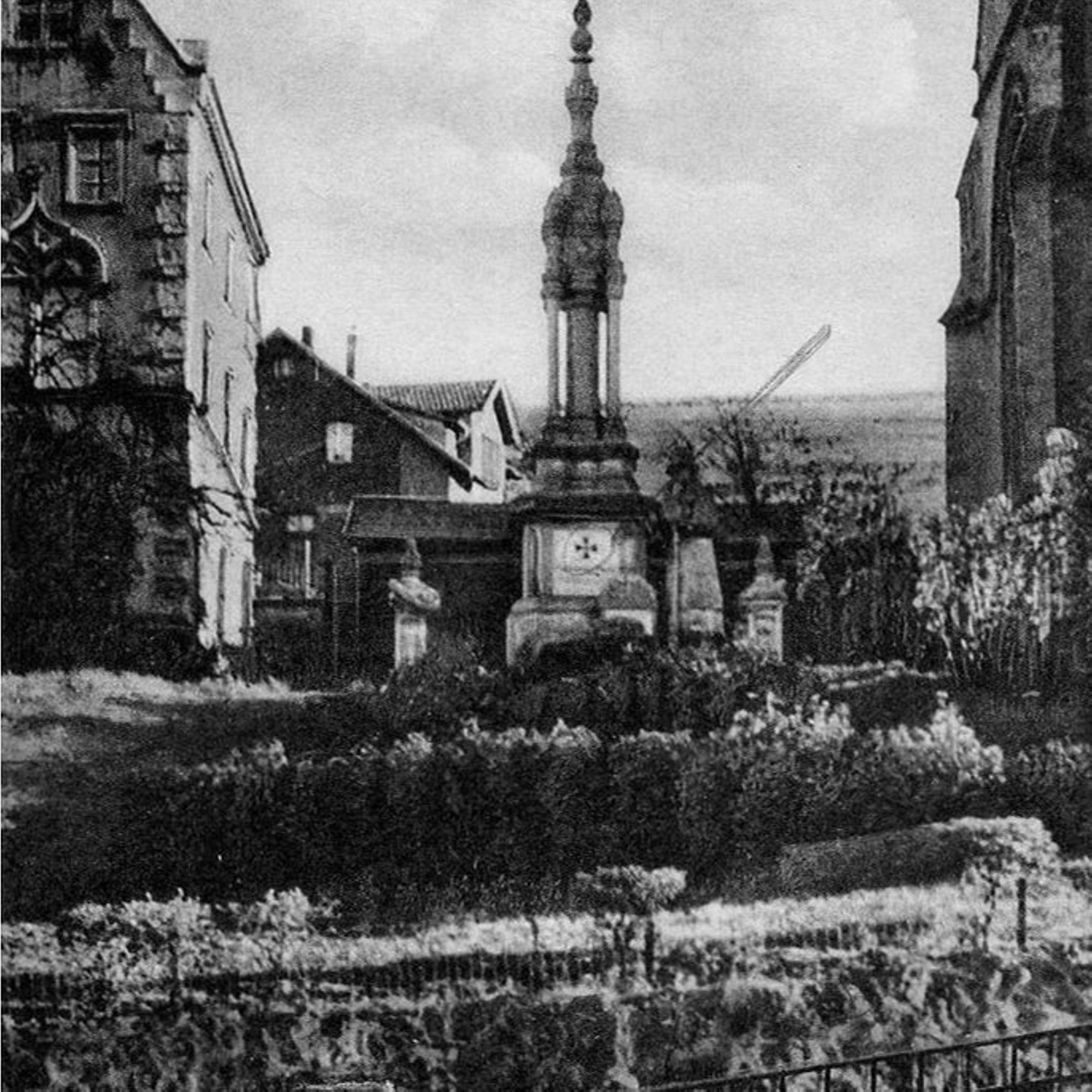 Dans la séance du 2 mai 1922, le Président soumet au Conseil Municipal une lettre de Monsieur LESCURE, président du Souvenir Français, d'après laquelle la Société du Souvenir Français a décidé d'ériger un monument devant l'école des garçons (actuelle place des marroniers pour info) pour les soldats tombés en guerre et, sollicite la mise à disposition de cet emplacement à ces fins. Le Conseil Municipal est d'avis que le jardin du presbytère catholique conviendrait mieux pour ériger le monument et décide à la majorité que le terrain nécessaire soit mis à la disposition du Souvenir Français.