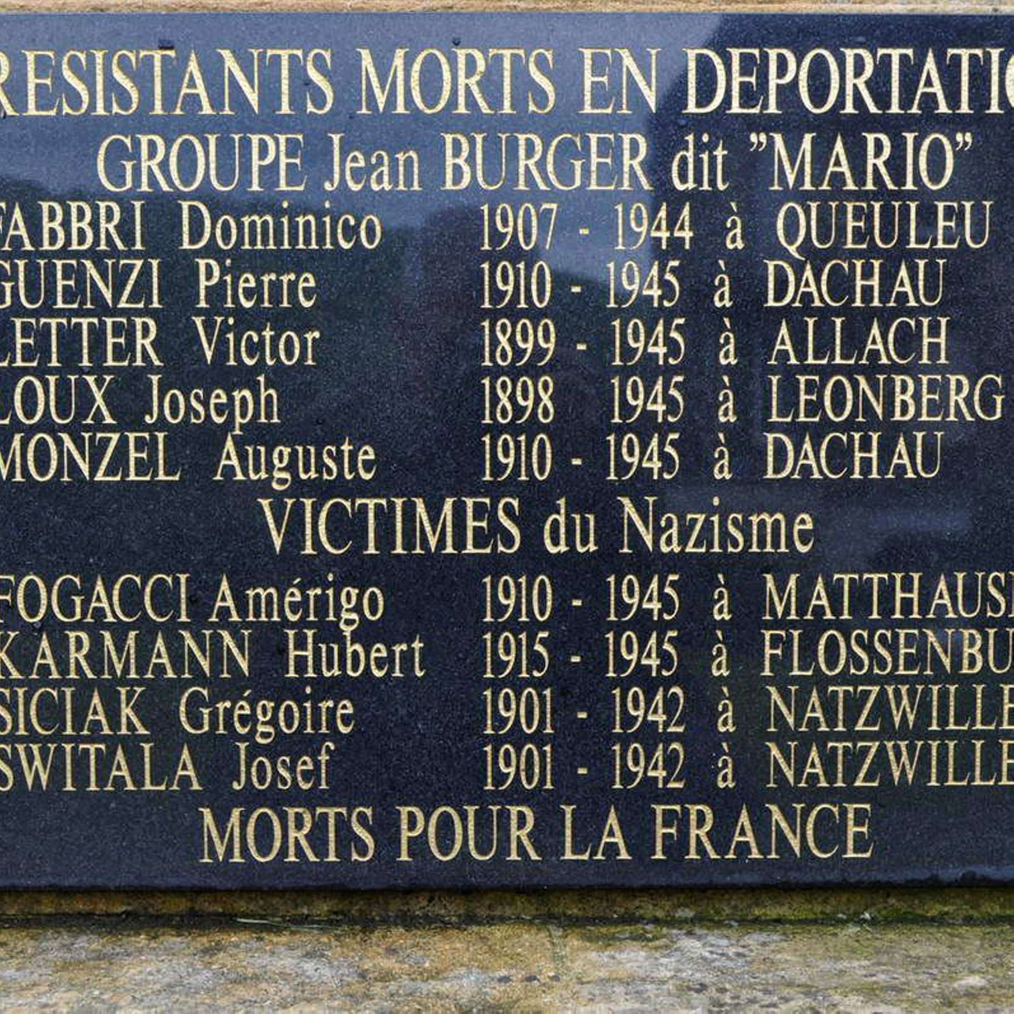 Résistants déportés - Groupe Jean Burger "dit Mario"