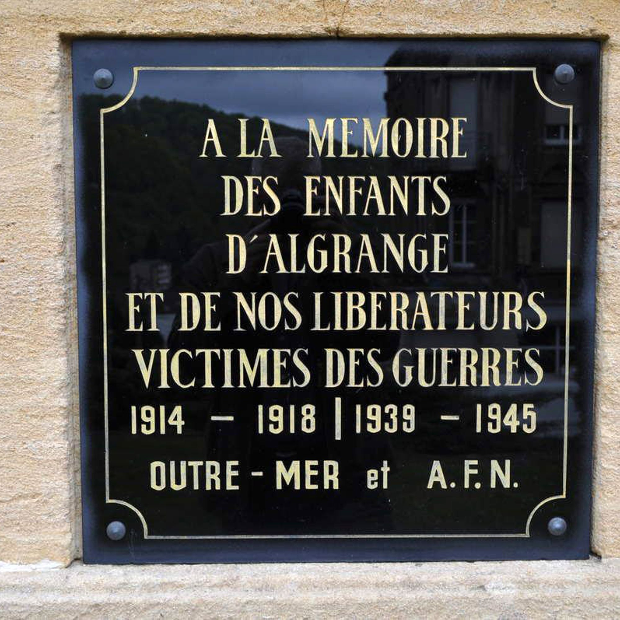 A l'origine sur la face avant du monument était inscrit: À la mémoire des enfants d'Algrange et de nos libérateurs victimes de la Grande Guerre