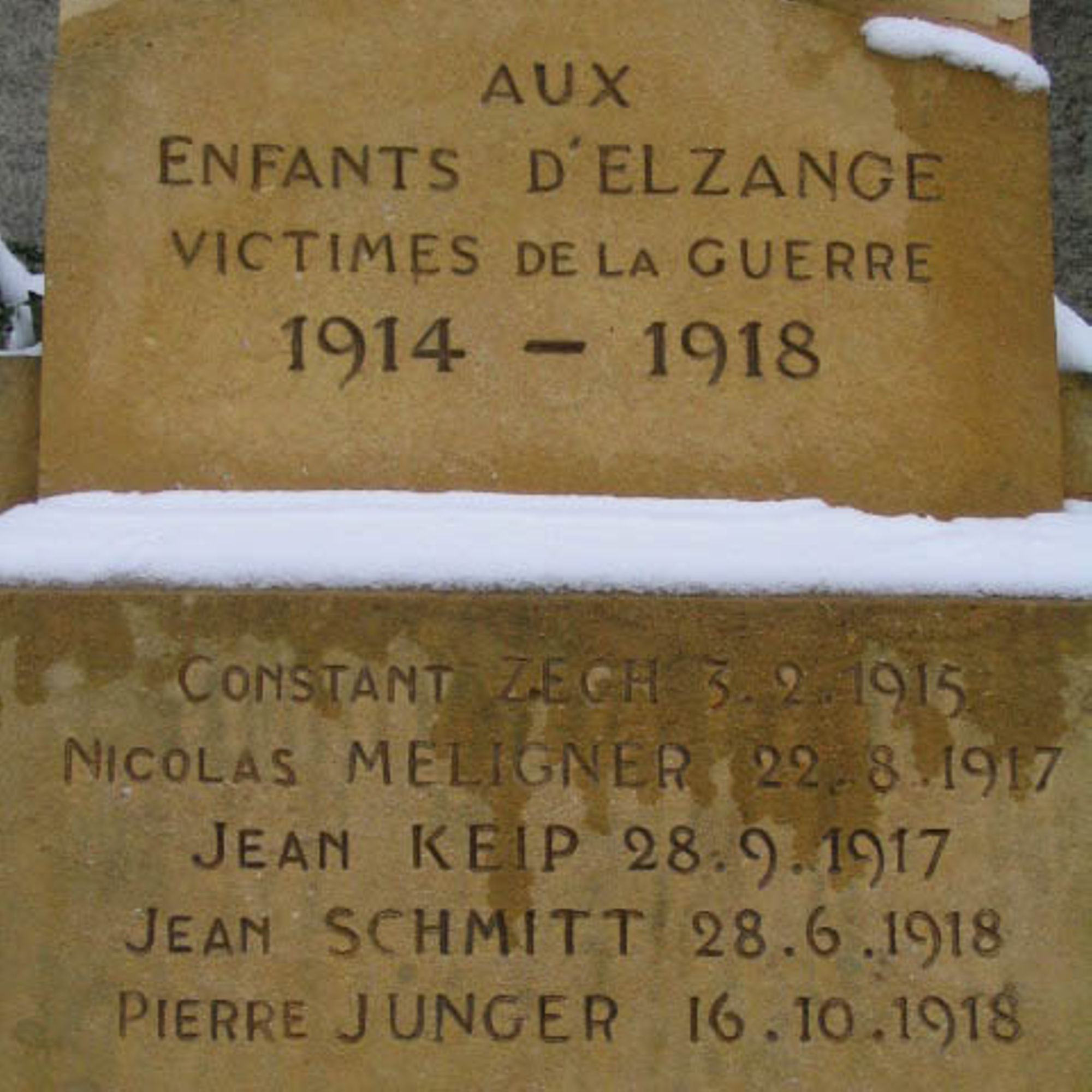 Inauguré en grandes pompes en 1939 par le conseil municipal et des éléments du 168ème RIF, stationné au camp d’Elzange, il comportait inscrit dans la pierre de Jaumont les noms de cinq soldats morts durant la grande Guerre.