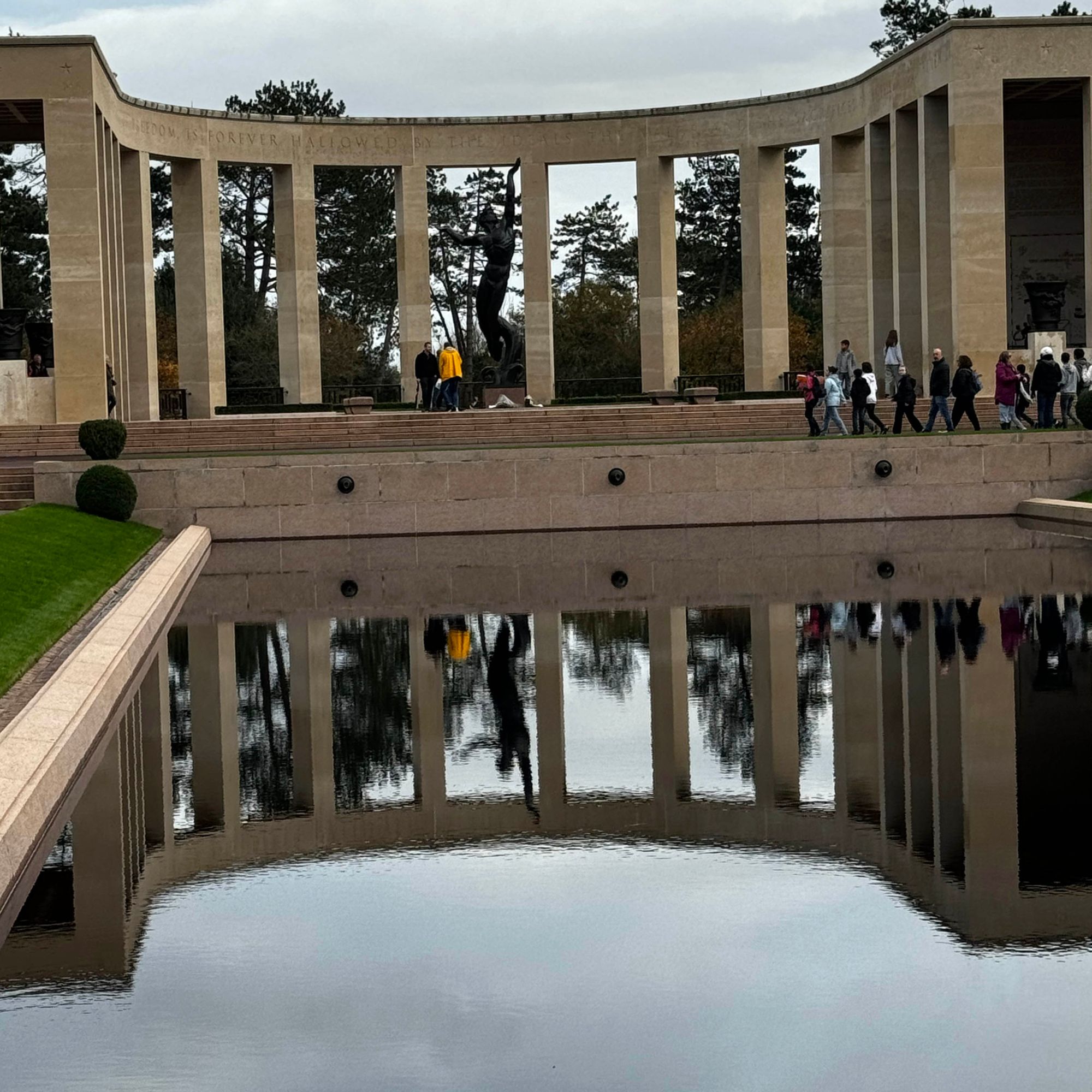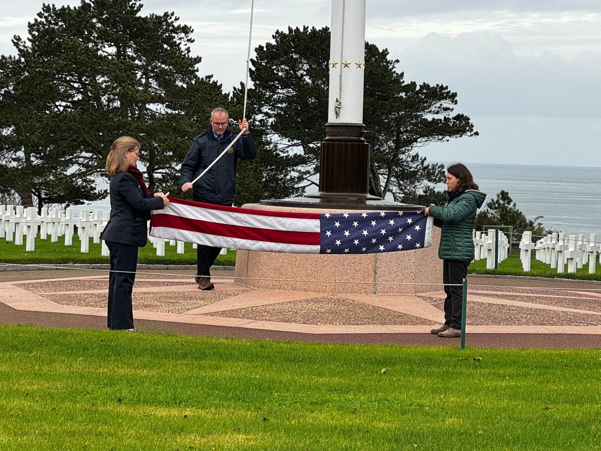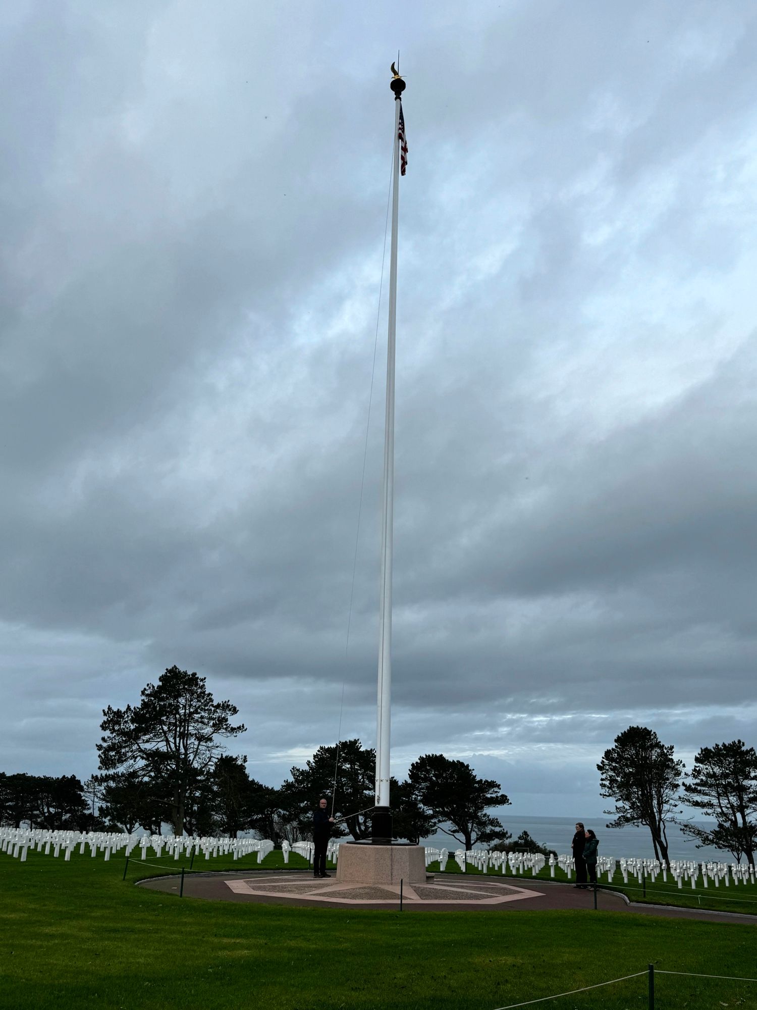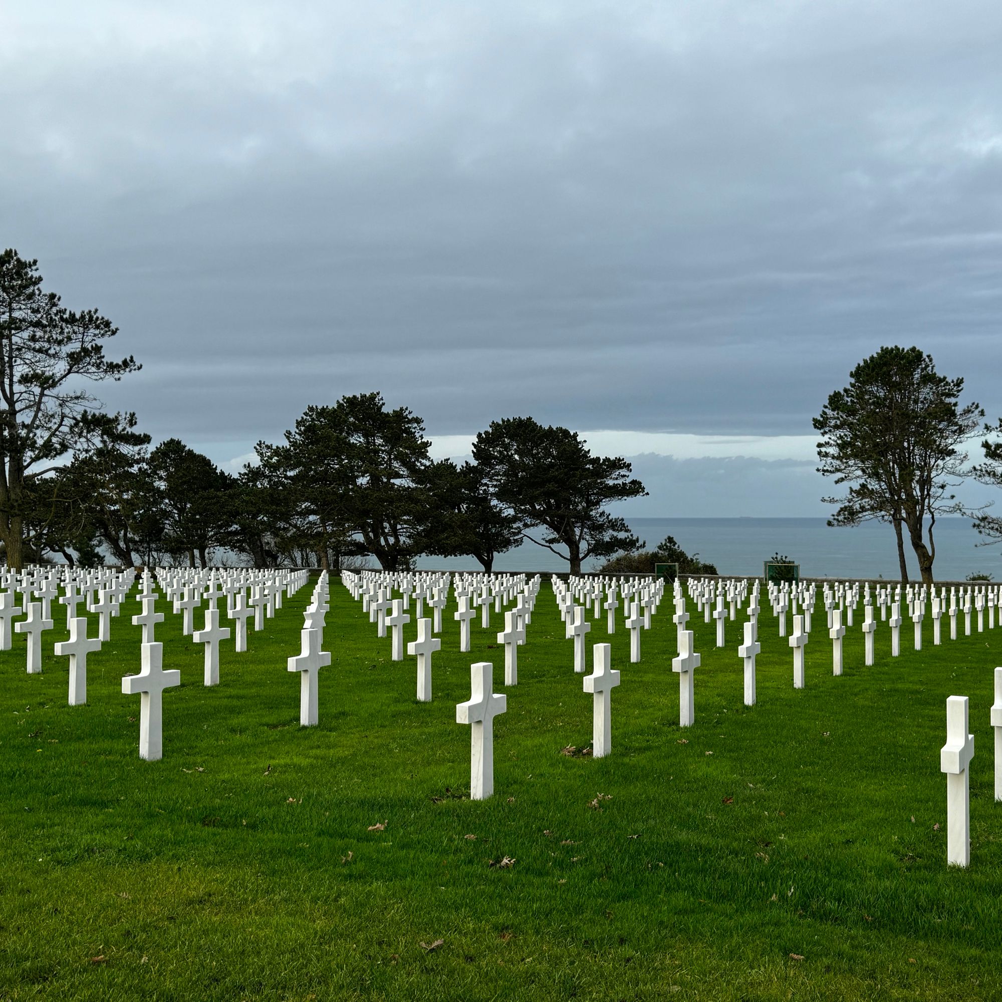 Ici, dans un espace de verdure perché sur une falaise surplombant la plage d’Omaha Beach, près de 10 000 croix blanches, parfaitement alignées, pointent vers l’Amérique.