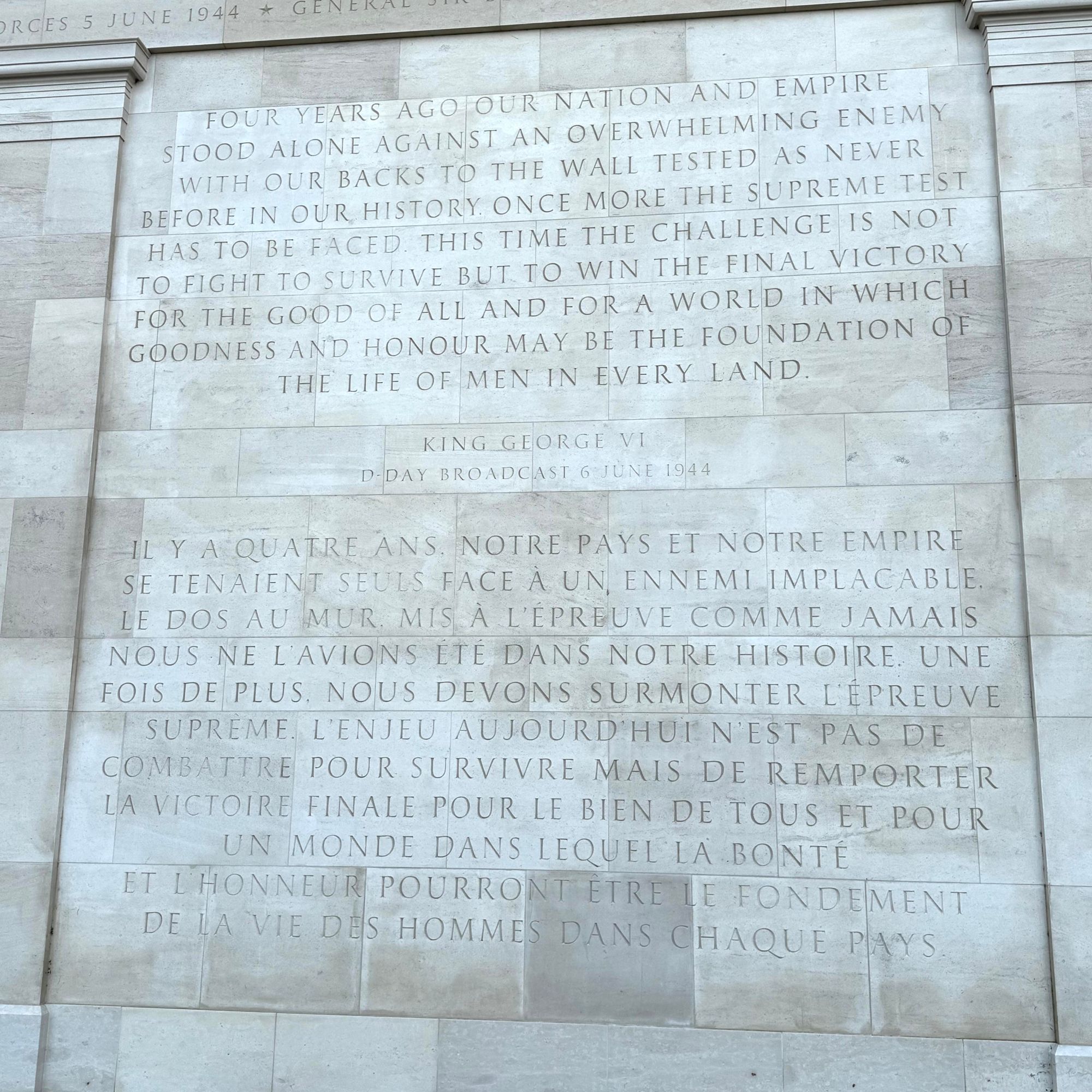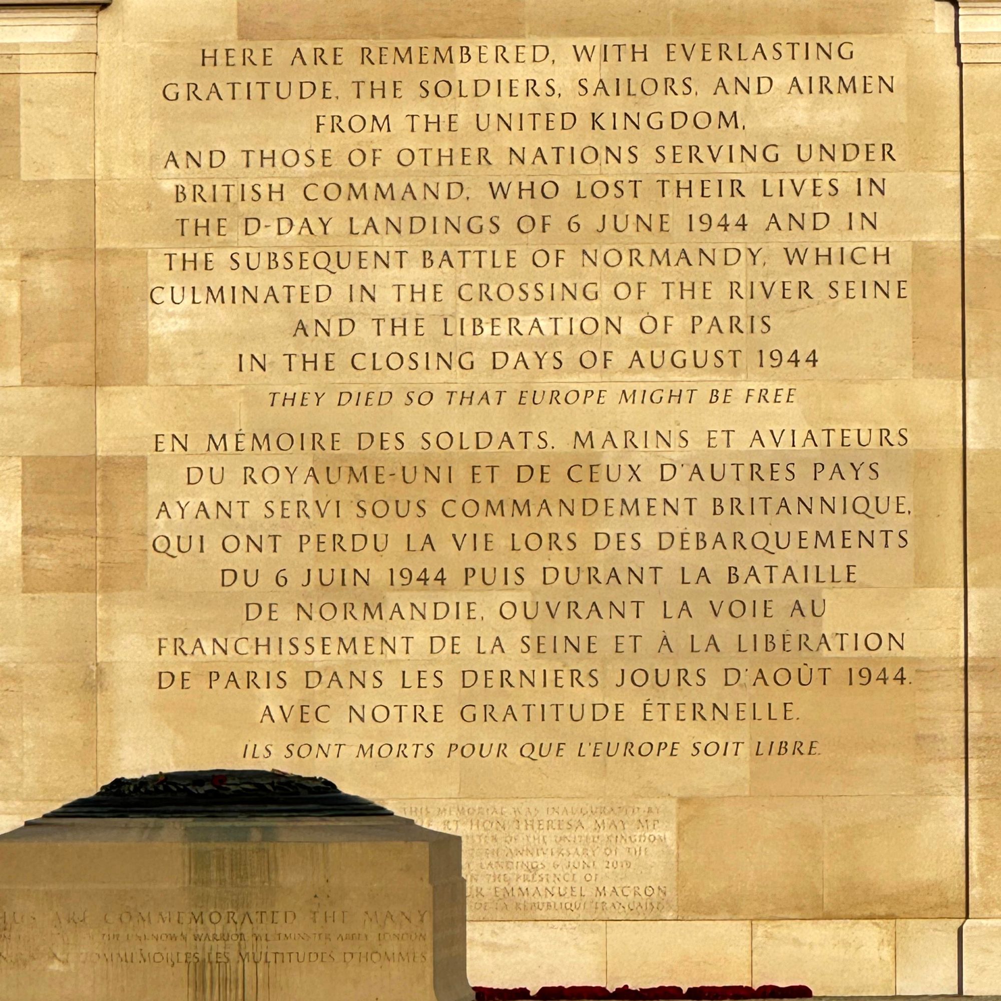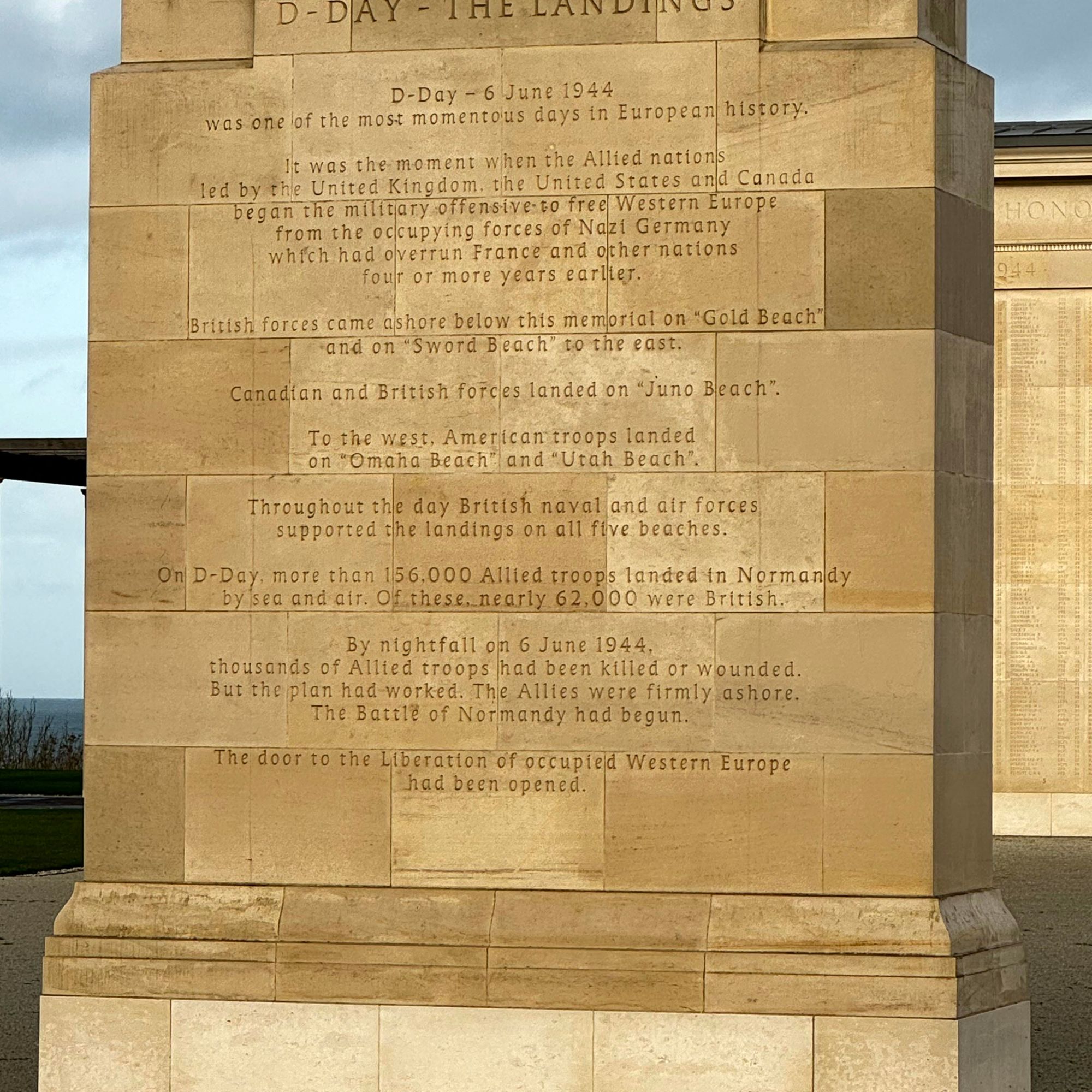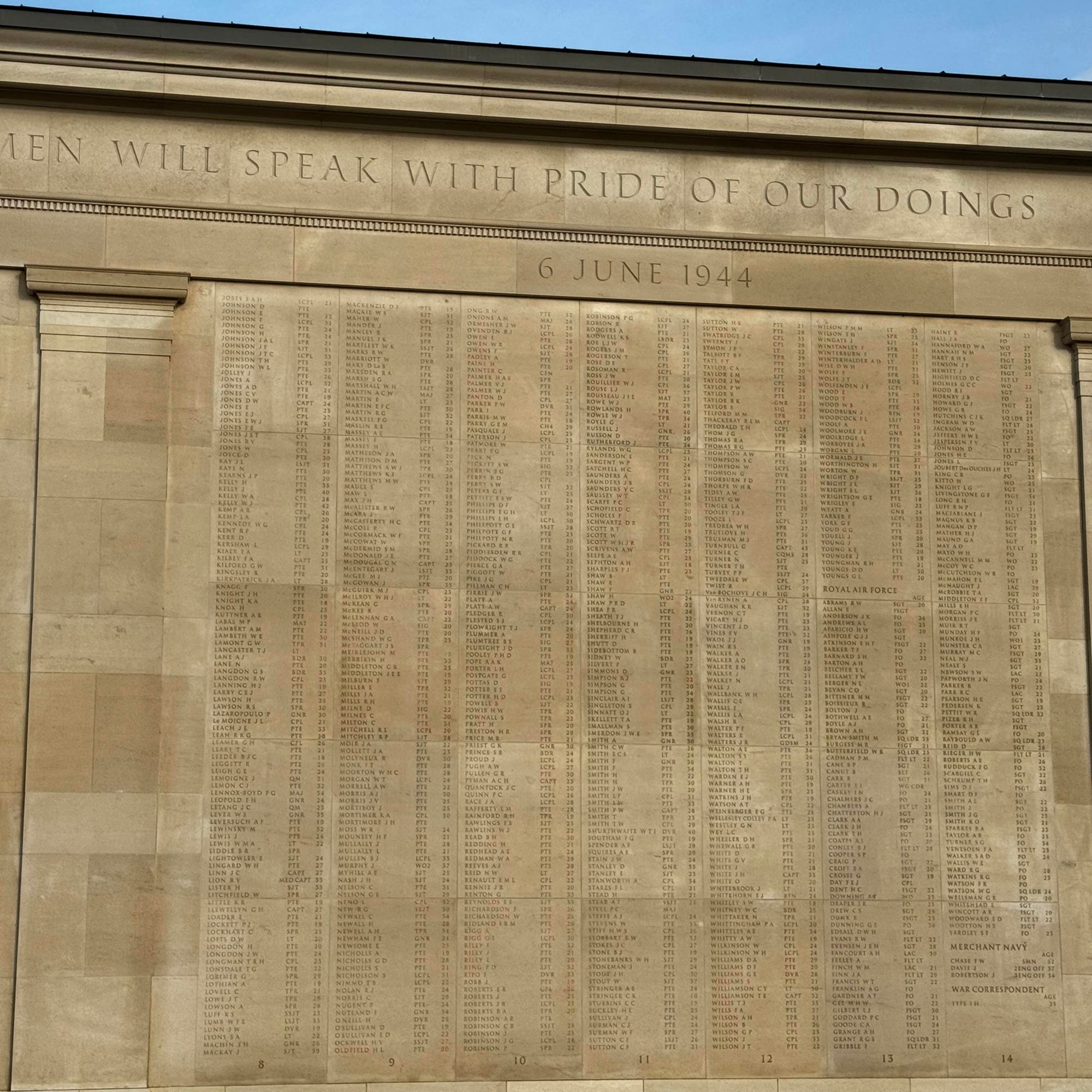 Au total, tous les noms des 22 443 hommes et femmes sous commandement britannique qui ont perdu la vie pendant la bataille de Normandie sont inscrits sur le Mémorial.