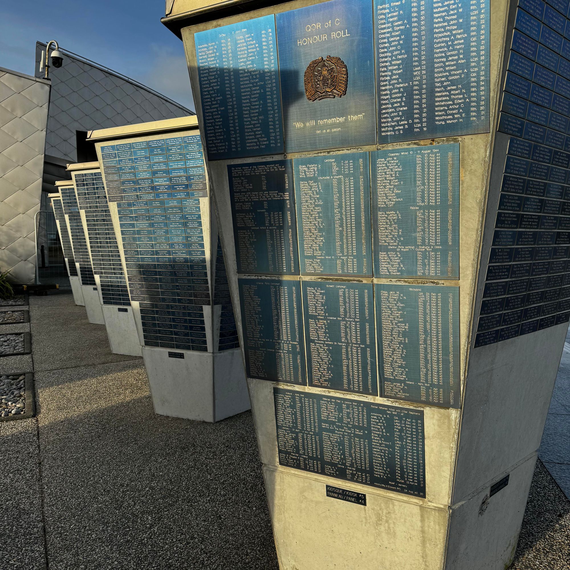 Cette sculpture est saisissante car le rendu abstrait des soldats diffère du style habituel pour ce genre d’œuvre commémorative. Elle a été créée pour inspirer à la fois la contemplation et le souvenir et pour fournir au visiteur un endroit où se recueillir sur l’esplanade du Centre. Cette sculpture honore les sacrifices de tous ceux qui ont participé aux efforts de guerre sur le terrain et dans toutes les activités au pays et à l’étranger pour conduire à la victoire finale.