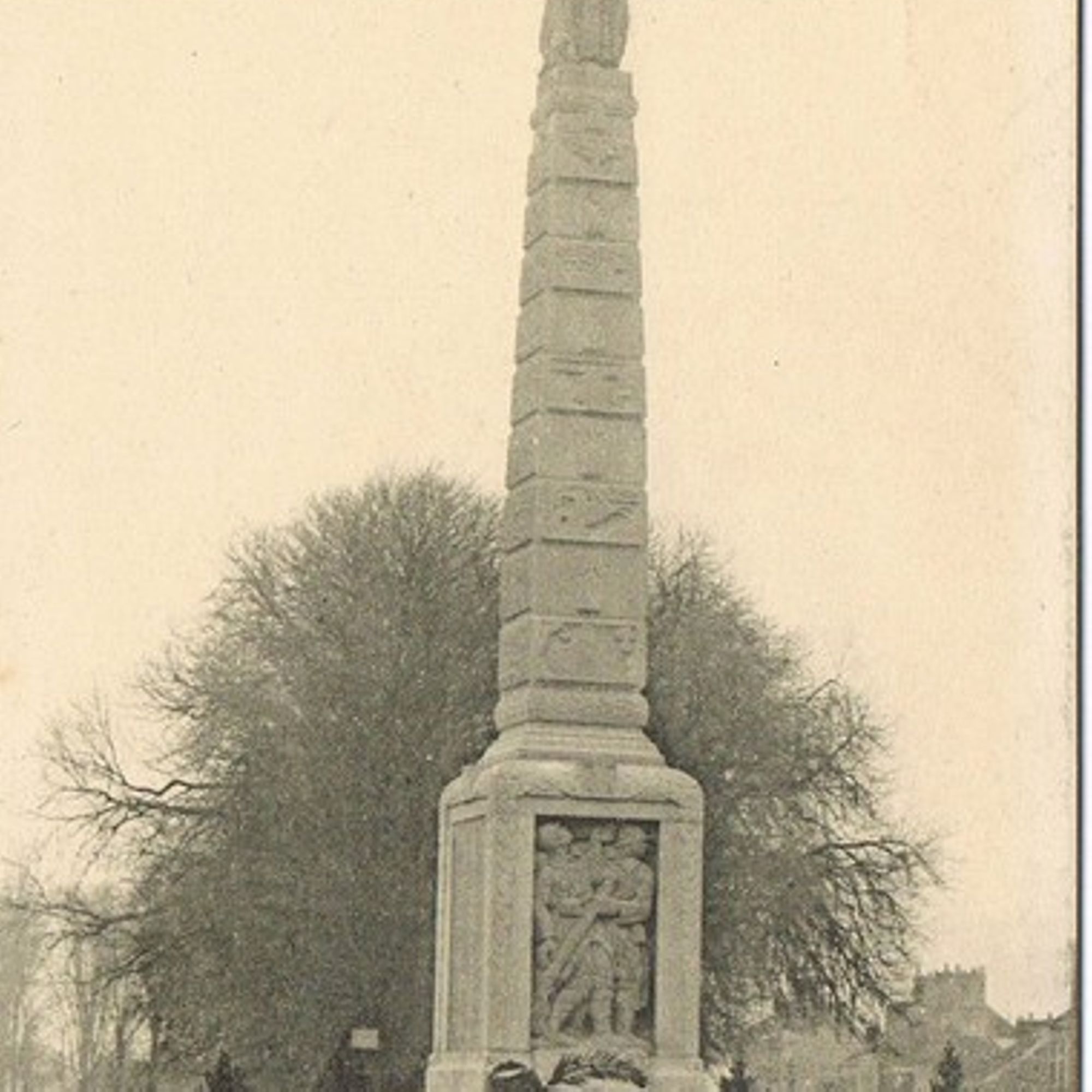 La statue de Minerve (déesse de la guerre dans la mythologie romaine) casquée, en son sommet a été irrémédiablement endommagée. La colonne, partie restante, a été déplacée en 1959 à Courteille, au désormais square du Poilu.
