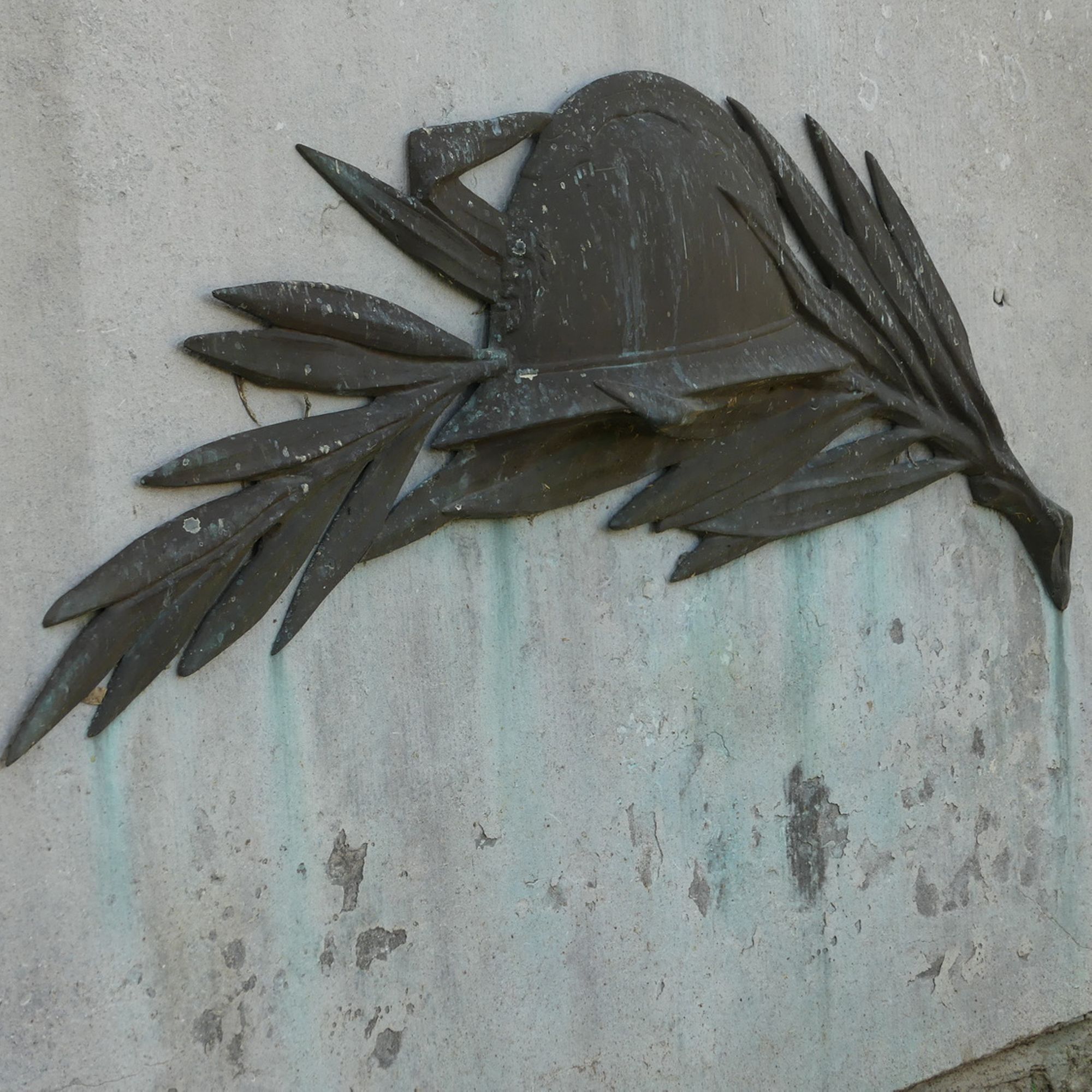 Il est décoré d'une croix, d'une couronne avec ruban et d'un casque garni d'une palme