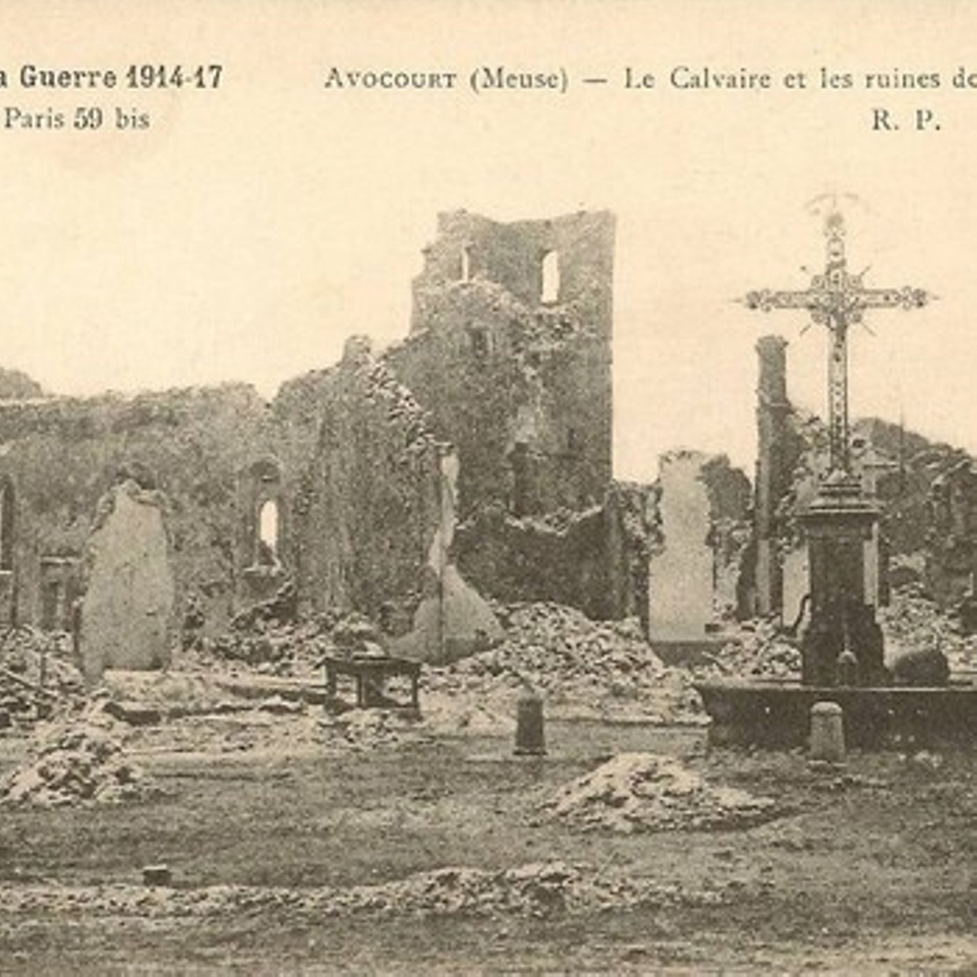 A leur retour en novembre 1918, les habitants trouvèrent leur village entièrement détruit avec au milieu des ruines encore fumantes la fontaine ancestrale qu’ils avaient rénové en 1848. La population souhaita alors, en honorant par un Monument les enfants de la commune Morts pour la France, réutiliser la fontaine pour base et la croix de fer forgé qui la surmontait depuis les origines. Mais la légalité républicaine interdisant sur les Monuments commémoratifs la présence d’un signe religieux, le Maire d’Avocourt et son Conseil municipal durent effectuer maintes démarches et interventions auprès des plus hautes autorités pour obtenir gain de cause.