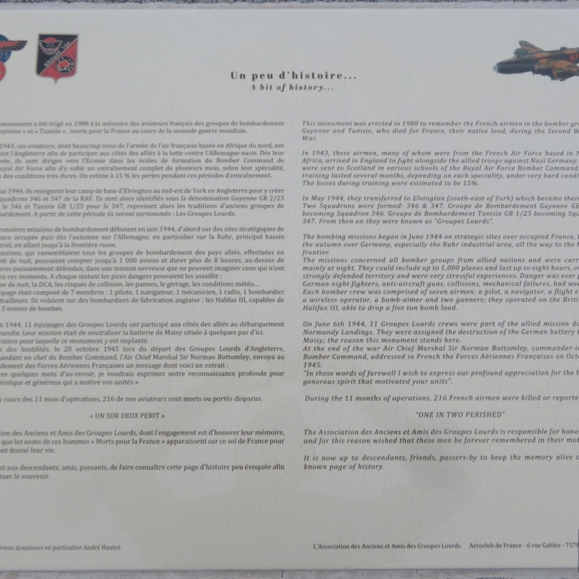 Grandcamp-Maisy : les noms des 216 aviateurs des groupes lourds inscrits au mémorial